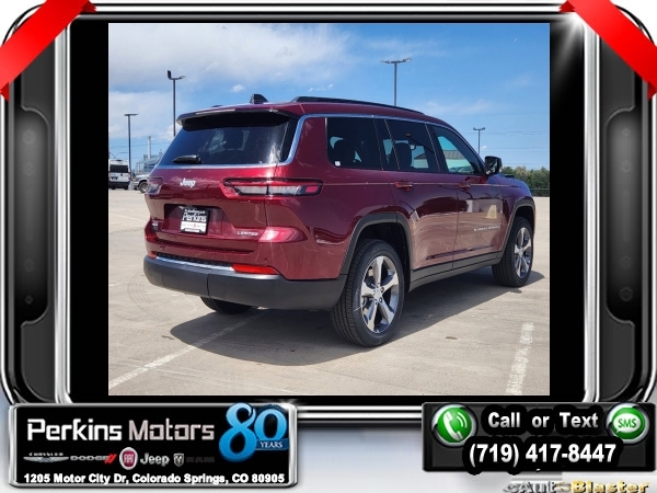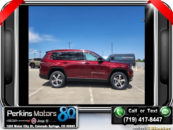 Factory MSRP: $55,915 $13,000 off MSRP! Priced below KBB Fair Purchase Price! Velvet Red Pearlcoat 2024 Jeep Grand Cherokee L Limited 4WD 8-Speed Automatic 3.6L V6 24V VVT<br><br>Check us out at www.perkinsmotors.com to see our specials! Since opening our doors in 1944, we’ve been proud to serve Colorado Springs, CO, and the surrounding areas of Pueblo, Castle Rock and Denver, CO. Throughout this time of being family owned for 80 years, we’ve maintained a firm commitment to our customers: to offer a wide selection of New Chrysler, Dodge, Fiat, Jeep, and Ram vehicles and quality pre-owned vehicles, and provide a quick, no-hassle car-buying process that ensures everyone drives off the lot satisfied with their purchase.<br><br>Quick Order Package 23E, Trailer Tow Package (220 Amp Alternator, 7 & 4 Pin Wiring Harness, Automatic Headlamp Leveling System, Class IV Receiver Hitch, Dual Exhaust Tips, Heavy-Duty Engine Cooling, Rear Load Leveling Suspension, and Trailer Hitch Zoom), 3.45 Rear Axle Ratio, 3rd row seats: split-bench, 4-Wheel Disc Brakes, 6 Speakers, ABS brakes, Active Noise Control System, Air Conditioning, Alloy wheels, AM/FM radio: SiriusXM with 360L, Anti-whiplash front head restraints, Audio memory, Auto High-beam Headlights, Automatic temperature control, Brake assist, Bumpers: body-color, Capri Leatherette Seats, Compass, Cruise Control, Delay-off headlights, Driver door bin, Driver vanity mirror, Dual front impact airbags, Dual front side impact airbags, Electronic Stability Control, Emergency communication system, Four wheel independent suspension, Front anti-roll bar, Front Bucket Seats, Front Center Armrest w/Storage, Front dual zone A/C, Front fog lights, Front License Plate Bracket, Front reading lights, Fully automatic headlights, Garage door transmitter, Heated door mirrors, Heated front seats, Heated rear seats, Heated steering wheel, Illuminated entry, Knee airbag, Low tire pressure warning, Manual Fold Seatbacks, Memory seat, Navigation System, Normal Duty Suspension, Occupant sensing airbag, Outside temperature display, Overhead airbag, Overhead console, Panic alarm, ParkView Rear Back-Up Camera, Passenger door bin, Passenger vanity mirror, Power door mirrors, Power driver seat, Power Liftgate, Power passenger seat, Power steering, Power windows, Radio data system, Radio: Uconnect 5 Nav w/10.1 Display, Rear air conditioning, Rear anti-roll bar, Rear reading lights, Rear window defroster, Rear window wiper, Reclining 3rd row seat, Remote keyless entry, Roof rack: rails only, Security system, Speed-Sensitive Wipers, Split folding rear seat, Spoiler, Steering wheel mounted audio controls, Tachometer, Telescoping steering wheel, Tilt steering wheel, Traction control, Trip computer, Turn signal indicator mirrors, Variably intermittent wipers, Voltmeter, Wheels: 18 x 8.0 Polished/Painted Aluminum, and Wheels: 20 x 8.5 Machined/Painted Alum (DISC) Sale price includes all manufacture's incentives and dealer discounts. Sale price not available on lease or compatible with special APR. $1000 - 2024 Denver BC Bonus Cash . Exp. 10/31/2024 $1500 - 2024 Denver BC Retail Consumer Cash. Exp. 10/31/2024 $4500 - 2024 Retail Bonus Cash. Exp. 10/31/2024