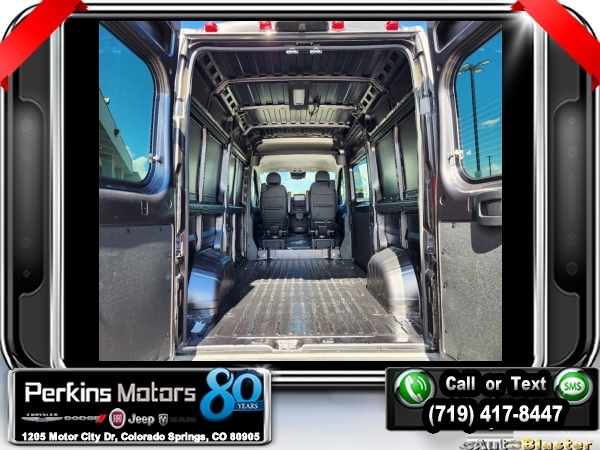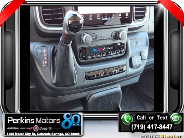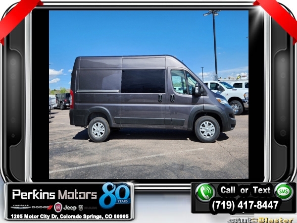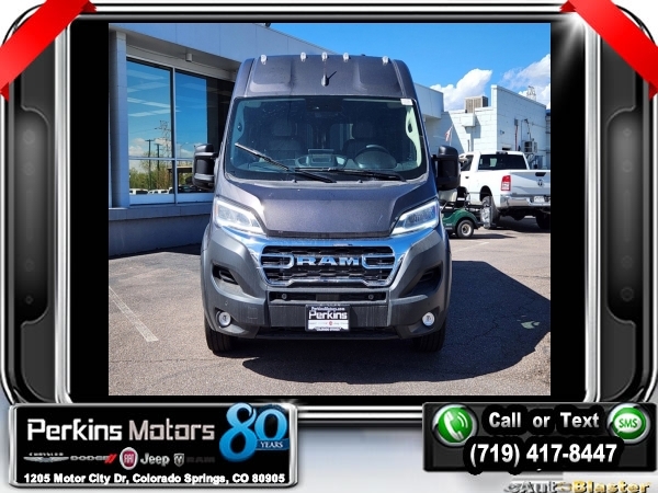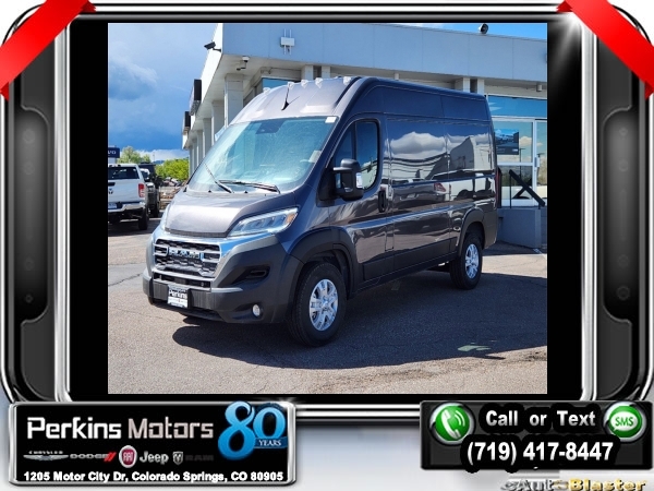 Factory MSRP: $61,120 $10,000 off MSRP! Priced below KBB Fair Purchase Price! Granite Crystal Metallic Clearcoat 2024 Ram ProMaster 1500 FWD 9-Speed 948TE Automatic 3.6L V6 24V VVT<br><br>Check us out at www.perkinsmotors.com to see our specials! Since opening our doors in 1944, we’ve been proud to serve Colorado Springs, CO, and the surrounding areas of Pueblo, Castle Rock and Denver, CO. Throughout this time of being family owned for 80 years, we’ve maintained a firm commitment to our customers: to offer a wide selection of New Chrysler, Dodge, Fiat, Jeep, and Ram vehicles and quality pre-owned vehicles, and provide a quick, no-hassle car-buying process that ensures everyone drives off the lot satisfied with their purchase.<br><br>Leather Interior Group (6-Way Manual Adjust Driver Seat, Black/Gray Seats, Driver Seat Armrest, Driver Swivel Seat, Leather Trimmed Bucket Seats, Leather Wrapped Steering Wheel, Manual 2-Way Driver Lumbar Adjust, Manual 2-Way Passenger Lumbar Adjust, Passenger Bucket Seat, Passenger Seat Armrest, and Passenger Swivel Seat), Quick Order Package 22H SLT+ (100 Amp Battery, 115V Auxiliary Power Outlet, 12V Rear Auxiliary Power Outlet, 220 Amp Alternator, 6-Way Manual Adjust Front Passenger Seat, Auto High Beam Headlamp Control, Automatic Headlamps, Blind Spot & Cross Path Detection, Connected Travel & Traffic Services, Cowl Aesthetic Cover, Digital Rearview Mirror w/Autodim, Exterior Mirrors w/Heating Element, Front LED Fog Lamps, GPS Navigation, HD Radio, Instrument Panel Bright Bezels, Intelligent Speed Assist (ISA), Lane Departure Warning Plus, LED Daytime Running Headlamps, LED Reflector Headlamps, ParkSense Front/Rear Park Assist System, Passive Entry, Power Adjust Mirrors, Power Folding/Heated Mirrors, Power-Adjustable Convex Aux Mirrors, Radio: Uconnect 5 Nav w/10.1 Display, Rain Sensitive Windshield Wipers, Remote Start System, Security Alarm, SiriusXM w/360L, Traffic Sign Information, Wheels: 16 x 6.0 Aluminum Painted Silver, and Wireless Charging Pad), Rear Heater - A/C Prep Package, 4 Speakers, 4-Wheel Disc Brakes, 4.08 Axle Ratio, ABS brakes, Air Conditioning, AM/FM radio: SiriusXM, Apple CarPlay/Android Auto, Bodyside moldings, Brake assist, Class IV Receiver Hitch, Cloth Bucket Seats, Deep Tint Sunscreen Glass, Driver door bin, Driver's Seat Mounted Armrest, Electronic Stability Control, Exterior Mirrors w/Supplemental Signals, Front anti-roll bar, Front Bucket Seats, Front License Plate Bracket, Front reading lights, Front wheel independent suspension, Illuminated entry, Low tire pressure warning, Manufacturer's Statement of Origin, Medium Duty Suspension, Outside temperature display, Overhead airbag, Overhead console, ParkView Rear Back-Up Camera, Passenger door bin, Passenger Sliding Door w/Window (Polycarb), Polycarbonate Window Material, Power steering, Power windows, Radio: Uconnect 5 w/7 Display, Rear Hinged Doors w/Fixed Glass, Rear View Day/Night Mirror, Rear Window Defroster, Remote keyless entry, Steering wheel mounted audio controls, Tachometer, Telescoping steering wheel, Traction control, Trip computer, Turn signal indicator mirrors, Variably intermittent wipers, Wheel Center Cap, and Wheels: 16 x 6.0 Steel. Sale price includes all manufacture's incentives and dealer discounts. Sale price not available on lease or compatible with special APR. $5000 - 2024 Bonus Cash . Exp. 10/31/2024