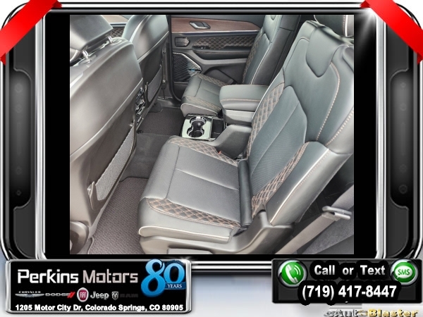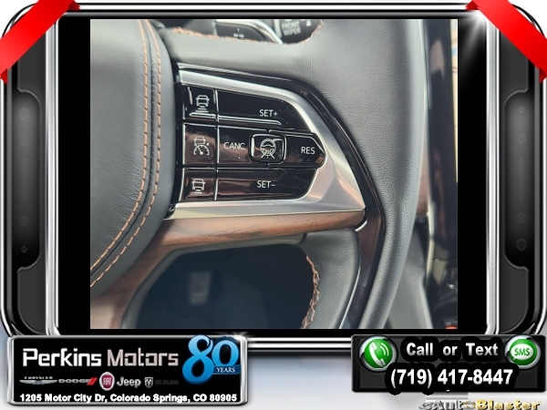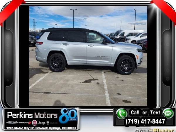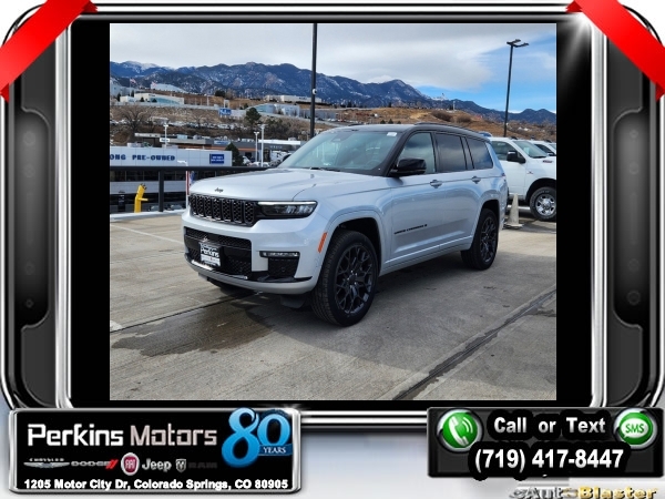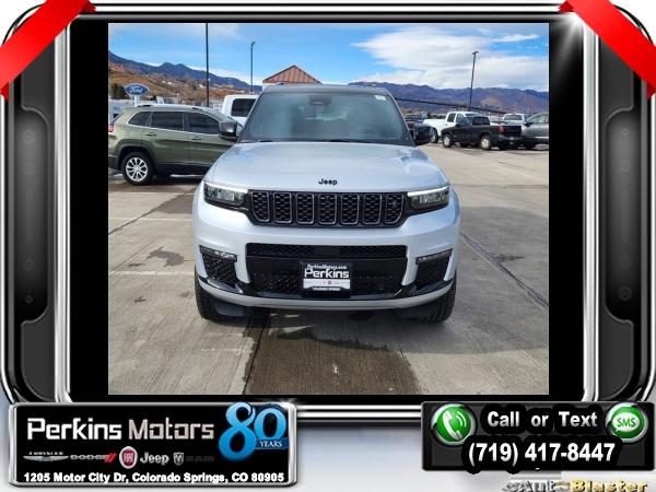 Factory MSRP: $80,840 $7,991 off MSRP! Silver Zynith 2024 Jeep Grand Cherokee L Summit 4WD 8-Speed Automatic HEMI 5.7L V8 Multi Displacement VVT<br><br>Check us out at www.perkinsmotors.com to see our specials! Since opening our doors in 1944, we’ve been proud to serve Colorado Springs, CO, and the surrounding areas of Pueblo, Castle Rock and Denver, CO. Throughout this time of being family owned for 80 years, we’ve maintained a firm commitment to our customers: to offer a wide selection of New Chrysler, Dodge, Fiat, Jeep, and Ram vehicles and quality pre-owned vehicles, and provide a quick, no-hassle car-buying process that ensures everyone drives off the lot satisfied with their purchase.<br><br>Advanced Protech Group IV (Heads-Up Display, Interior Rear Facing Camera, Night Vision/Pedestrian-Animal Detection, and Rearview Autodim Digital Display Mirror), High Altitude Package (Gloss Black Exterior Accents, Neutral Gray Exterior Accents, Painted Door Cladding, and Wheels: 21 x 9 Black Painted Aluminum), Luxury Tech Group V (2nd Row Manual Window Shades and Wireless Charging Pad), Quick Order Package 25S, Two Tone Paint Group, 10 Speakers, 19 Speakers High Performance Audio, 3.45 Rear Axle Ratio, 3rd row seats: split-bench, 4-Wheel Disc Brakes, 950 Watt Amplifier, ABS brakes, Active Noise Control System, Adaptive suspension, Air Conditioning, Alloy wheels, AM/FM radio: SiriusXM with 360L, Anti-whiplash front head restraints, Audio memory, Auto High-beam Headlights, Auto-dimming door mirrors, Auto-dimming Rear-View mirror, Auto-leveling suspension, Automatic temperature control, Brake assist, Bumpers: body-color, Compass, Cruise Control, Delay-off headlights, Driver door bin, Driver vanity mirror, Dual front impact airbags, Dual front side impact airbags, Electronic Stability Control, Emergency communication system, Four wheel independent suspension, Front anti-roll bar, Front Bucket Seats, Front Center Armrest w/Storage, Front dual zone A/C, Front fog lights, Front License Plate Bracket, Front Passenger Interactive Display, Front reading lights, Fully automatic headlights, Garage door transmitter, Genuine wood dashboard insert, Genuine wood door panel insert, Heated door mirrors, Heated front seats, Heated rear seats, Heated steering wheel, Illuminated entry, Knee airbag, Leather steering wheel, Low tire pressure warning, Memory seat, Nappa Leather Seats, Navigation System, Normal Duty Suspension, Occupant sensing airbag, Outside temperature display, Overhead airbag, Overhead console, Panic alarm, Passenger door bin, Passenger vanity mirror, Power door mirrors, Power driver seat, Power Fold Seatbacks, Power Liftgate, Power moonroof, Power passenger seat, Power steering, Power windows, Radio data system, Radio: Uconnect 5 Nav w/10.1 Display, Rain sensing wipers, Rear air conditioning, Rear anti-roll bar, Rear dual zone A/C, Rear reading lights, Rear seat center armrest, Rear window defroster, Rear window wiper, Reclining 3rd row seat, Remote keyless entry, Roof rack: rails only, Security system, Speed-Sensitive Wipers, Split folding rear seat, Spoiler, Steering wheel memory, Steering wheel mounted audio controls, Tachometer, Telescoping steering wheel, Tilt steering wheel, Traction control, Trip computer, Turn signal indicator mirrors, Variably intermittent wipers, Ventilated front seats, Voltmeter, and Wheels: 20 x 8.5 Fully Painted Aluminum Silver. Sale price includes all manufacture's incentives and dealer discounts. Sale price not available on lease or compatible with special APR. $1500 - 2024 Denver BC Retail Consumer Cash. Exp. 07/01/2024 $2000 - 2024 Retail Bonus Cash. Exp. 07/01/2024