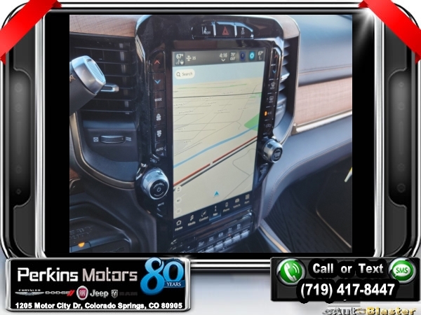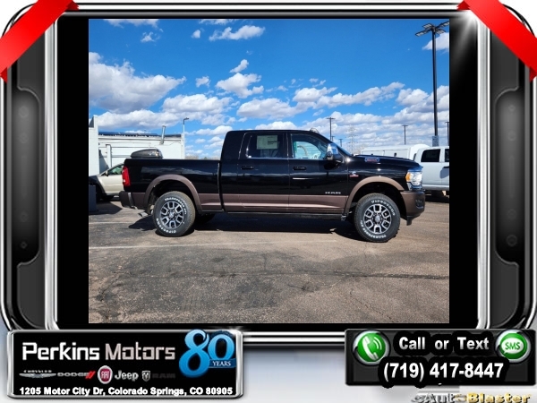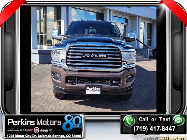 Factory MSRP: $99,925 $8,102 off MSRP! Diamond Black Crystal Pearlcoat 2024 Ram 3500 Laramie Longhorn 4WD Aisin 6-Speed Automatic I6<br><br>Check us out at www.perkinsmotors.com to see our specials! Since opening our doors in 1944, we’ve been proud to serve Colorado Springs, CO, and the surrounding areas of Pueblo, Castle Rock and Denver, CO. Throughout this time of being family owned for 80 years, we’ve maintained a firm commitment to our customers: to offer a wide selection of New Chrysler, Dodge, Fiat, Jeep, and Ram vehicles and quality pre-owned vehicles, and provide a quick, no-hassle car-buying process that ensures everyone drives off the lot satisfied with their purchase.<br><br>Longhorn Level 1 Equipment Group (12 Touchscreen Display, 4G LTE Wi-Fi Hot Spot, Alexa Built-In, Apple CarPlay, Blind Spot & Cross Path Detection, Connected Travel & Traffic Services, Connectivity - US/Canada, Disassociated Touchscreen Display, For Details Visit DriveUconnect.com, For More Info, Call 800-643-2112, Global Telematics Box Module (TBM), Google Android Auto, GPS Antenna Input, GPS Navigation, HD Radio, Integrated Voice Command w/Bluetooth, LED Bed Lighting, MOPAR Spray In Bedliner, Off-Road Information Pages, Power Deployable Running Boards, Ramcharger Wireless Charging Pad, Selectable Tire Fill Alert, SiriusXM Radio Service, SiriusXM w/360L, and Trailer Tow Pages), Protection Group, Quick Order Package 21K Longhorn, Safety Group (Adaptive Cruise Control w/Stop, Adaptive Steering System, Full Speed Forward Collision Warning Plus, and Lane Keep Assist), Snow Chief Group (Auxiliary Switches Prep, Clearance Lamps, Dash Pass Thru Wire Circuits, and I/P Mounted Auxiliary Switches), Towing Technology Group (Center Stop Lamp w/Cargo View Camera, Surround View Camera System, and Trailer Reverse Guidance), 10 Speakers, 115V Auxiliary Rear Power Outlet, 2 Way Rear Headrest Seat, 220 Amp Alternator, 3.73 Axle Ratio, 4 Way Front Headrests, 4-Wheel Disc Brakes, 5th Wheel/Gooseneck Towing Prep Group, ABS brakes, Active Noise Control System, Adjustable pedals, Air Conditioning, Alloy wheels, AM/FM radio: SiriusXM with 360L, Apple CarPlay/Android Auto, Audio memory, Auto High-beam Headlights, Auto Level Rear Air Suspension, Auto-dimming door mirrors, Auto-dimming Rear-View mirror, Automatic temperature control, Brake assist, Bucket Seats, Bumpers: body-color, Center Hub, Compass, Cruise Control, Delay-off headlights, Driver door bin, Driver vanity mirror, Dual Alternators Rated At 440 Amps, Dual front impact airbags, Dual front side impact airbags, Electronic Stability Control, Electronically Controlled Throttle, Front anti-roll bar, Front Bucket Seats, Front Center Armrest w/Storage, Front dual zone A/C, Front fog lights, Front License Plate Bracket, Front reading lights, Front Seat Back Map Pockets, Full Length Premium Upgraded Floor Console, Fully automatic headlights, Garage door transmitter, Genuine wood console insert, Genuine wood dashboard insert, Genuine wood door panel insert, Heated door mirrors, Heated Front Seats, Heated front seats, Heated rear seats, Heated Second Row Seats, Heated Steering Wheel, Heated steering wheel, High Back Seats, Illuminated entry, Leather steering wheel, Low tire pressure warning, Manufacturer's Statement of Origin, Memory seat, MOPAR Deployable Bed Step, MOPAR Front & Rear Rubber Floor Mats, Navigation System, Occupant sensing airbag, Outside temperature display, Overhead airbag, Overhead console, Panic alarm, ParkView Rear Back-Up Camera, Passenger door bin, Passenger vanity mirror, Pedal memory, Power 2-Way Driver Lumbar Adjust, Power 2-Way Passenger Lumbar Adjust, Power 8-Way Adjustable Passenger Seat, Power Adjust 8-Way Driver Seat, Power door mirrors, Power driver seat, Power passenger seat, Power steering, Power Sunroof, Power windows, Premium Filigree Leather Seats, Radio data system, Radio/Driver Seat/Mirrors/Pedals Memory, Rain sensing wipers, Rear 60/40 Folding Seat, Rear reading lights, Rear s