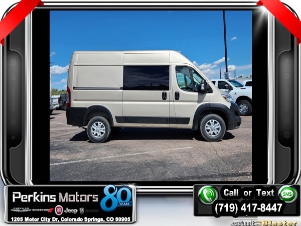 Factory MSRP: $61,070 $9,500 off MSRP! Priced below KBB Fair Purchase Price! Sandstone Pearlcoat 2024 Ram ProMaster 1500 FWD 9-Speed 948TE Automatic 3.6L V6 24V VVT<br><br>Check us out at www.perkinsmotors.com to see our specials! Since opening our doors in 1944, we’ve been proud to serve Colorado Springs, CO, and the surrounding areas of Pueblo, Castle Rock and Denver, CO. Throughout this time of being family owned for 80 years, we’ve maintained a firm commitment to our customers: to offer a wide selection of New Chrysler, Dodge, Fiat, Jeep, and Ram vehicles and quality pre-owned vehicles, and provide a quick, no-hassle car-buying process that ensures everyone drives off the lot satisfied with their purchase.<br><br>Leather Interior Group (6-Way Manual Adjust Driver Seat, Black/Gray Seats, Driver Seat Armrest, Driver Swivel Seat, Leather Trimmed Bucket Seats, Leather Wrapped Steering Wheel, Manual 2-Way Driver Lumbar Adjust, Manual 2-Way Passenger Lumbar Adjust, Passenger Bucket Seat, Passenger Seat Armrest, and Passenger Swivel Seat), Quick Order Package 22H SLT+ (100 Amp Battery, 115V Auxiliary Power Outlet, 12V Rear Auxiliary Power Outlet, 220 Amp Alternator, 6-Way Manual Adjust Front Passenger Seat, Auto High Beam Headlamp Control, Automatic Headlamps, Blind Spot & Cross Path Detection, Connected Travel & Traffic Services, Cowl Aesthetic Cover, Digital Rearview Mirror w/Autodim, Exterior Mirrors w/Heating Element, Front LED Fog Lamps, GPS Navigation, HD Radio, Instrument Panel Bright Bezels, Intelligent Speed Assist (ISA), Lane Departure Warning Plus, LED Daytime Running Headlamps, LED Reflector Headlamps, ParkSense Front/Rear Park Assist System, Passive Entry, Power Adjust Mirrors, Power Folding/Heated Mirrors, Power-Adjustable Convex Aux Mirrors, Radio: Uconnect 5 Nav w/10.1 Display, Rain Sensitive Windshield Wipers, Remote Start System, Security Alarm, SiriusXM w/360L, Traffic Sign Information, Wheels: 16 x 6.0 Aluminum Painted Silver, and Wireless Charging Pad), Rear Heater - A/C Prep Package, 4 Speakers, 4-Wheel Disc Brakes, 4.08 Axle Ratio, ABS brakes, Air Conditioning, AM/FM radio: SiriusXM, Apple CarPlay/Android Auto, Black Seats, Bodyside moldings, Brake assist, Class IV Receiver Hitch, Cloth Bucket Seats, Deep Tint Sunscreen Glass, Driver door bin, Driver's Seat Mounted Armrest, Electronic Stability Control, Exterior Mirrors w/Supplemental Signals, Front anti-roll bar, Front Bucket Seats, Front License Plate Bracket, Front reading lights, Front wheel independent suspension, Illuminated entry, Low tire pressure warning, Manufacturer's Statement of Origin, Medium Duty Suspension, Outside temperature display, Overhead airbag, Overhead console, ParkView Rear Back-Up Camera, Passenger door bin, Passenger Sliding Door w/Window (Polycarb), Polycarbonate Window Material, Power steering, Power windows, Radio: Uconnect 5 w/7 Display, Rear Hinged Doors w/Fixed Glass, Rear View Day/Night Mirror, Rear Window Defroster, Remote keyless entry, Steering wheel mounted audio controls, Tachometer, Telescoping steering wheel, Traction control, Trip computer, Turn signal indicator mirrors, Variably intermittent wipers, Wheel Center Cap, and Wheels: 16 x 6.0 Steel. Sale price includes all manufacture's incentives and dealer discounts. Sale price not available on lease or compatible with special APR. $2000 - 2024 National Summer Select Inventory Bonus Cash . Exp. 07/31/2024