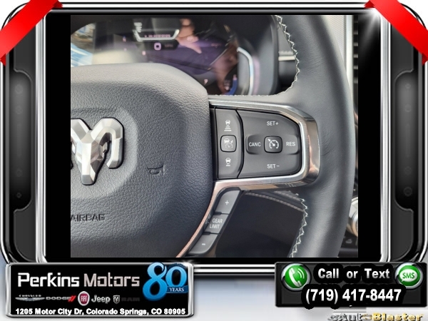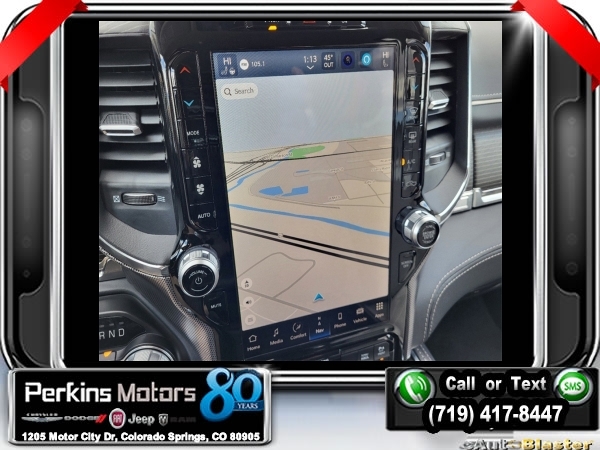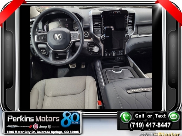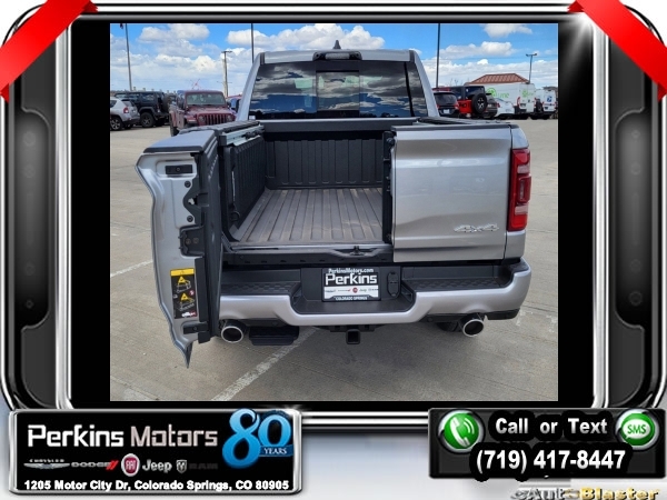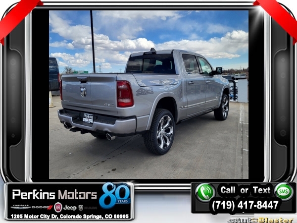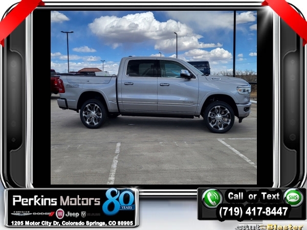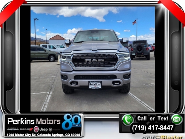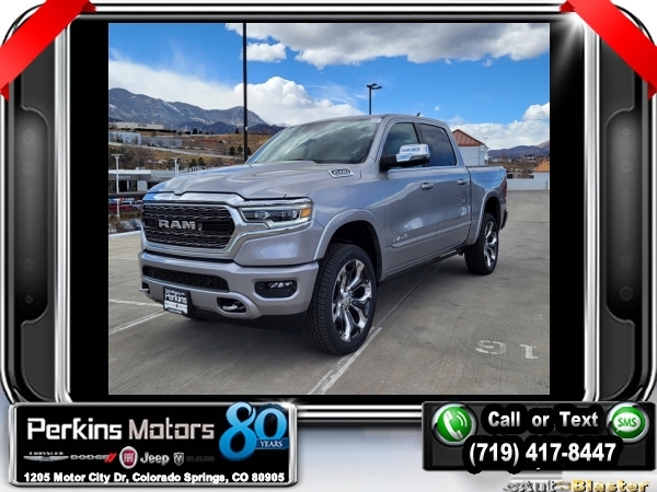 Factory MSRP: $85,555 $12,000 off MSRP! Billet Silver Metallic Clearcoat 2024 Ram 1500 Limited 4WD 8-Speed Automatic HEMI 5.7L V8 Multi Displacement VVT eTorque<br><br>Check us out at www.perkinsmotors.com to see our specials! Since opening our doors in 1944, we’ve been proud to serve Colorado Springs, CO, and the surrounding areas of Pueblo, Castle Rock and Denver, CO. Throughout this time of being family owned for 80 years, we’ve maintained a firm commitment to our customers: to offer a wide selection of New Chrysler, Dodge, Fiat, Jeep, and Ram vehicles and quality pre-owned vehicles, and provide a quick, no-hassle car-buying process that ensures everyone drives off the lot satisfied with their purchase.<br><br>Body Color Bumper Group (Body Color Front Bumper and Body Color Rear Bumper w/Step Pads), Elite Package (4 Way Front Headrests, Bucket Seats, Driver Seat Memory, Front Seat Back Map Pockets, Full Length Premium Floor Console, Heated Front Seats, Heated Second Row Seats, Heated Steering Wheel, MOPAR 4 Adjustable Cargo Tie-Down Hooks, MOPAR Bright Pedal Kit, MOPAR Deployable Bed Step Center Mount, Multi-Function Tailgate, Power 4-Way Driver Lumbar Adjust, Power 4-Way Passenger Lumbar Adjust, Power 8-Way Driver & Passenger Seats, Premium Quilted Leather Bucket Seats, Rear 60/40 Folding Split Recline Seat, Rotary Shifter-Jeweled, Suede Headliner, Ventilated Front Seats, and Ventilated Rear Seats), Limited Level 1 Equipment Group (Adaptive Cruise Control w/Stop & Go, Digital Rearview Mirror, harman/kardon 19 Speaker Premium Sound, Heads-Up Display, Lane Keep Assist, LED CHMSL Lamp, MOPAR Spray In Bedliner, Parallel & Perp Park Assist w/Stop, ParkSense Front/Rear Park Assist w/Stop, Pedestrian Emergency Braking, Pick-Up Box Lighting, Power Running Boards, Surround View Camera System, and Wireless Charging Pad), Off Road Group (E-Locker Rear Axle, Front Extra HD Shock Absorbers, Off Road Decals, Off-Road Information Pages, Raised Ride Height, Rear Extra HD Shock Absorbers, and Selec-Speed (TM) Control), Quick Order Package 27M Limited, Trailer Tow Group (Trailer Brake Control, Trailer Light Check, Trailer Reverse Steering Control, and Trailer Tire Pressure Monitoring System), 10 Speakers, 3.21 Rear Axle Ratio, 3.92 Rear Axle Ratio, 33 Gallon Fuel Tank, 4-Wheel Disc Brakes, 48V Belt Starter Generator, ABS brakes, Active Noise Control System, Adjustable pedals, Air Conditioning, Alloy wheels, AM/FM radio: SiriusXM with 360L, Apple CarPlay/Android Auto, Audio memory, Auto High-beam Headlights, Auto-dimming door mirrors, Auto-Dimming Exterior Driver Mirror, Auto-dimming Rear-View mirror, Auto-leveling suspension, Automatic temperature control, Bodyside moldings, Brake assist, Bumpers: chrome, Chrome Exterior Mirrors, Compass, Convex Wide-Angle Exterior Mirror Insert, Cruise Control, Delay-off headlights, Driver door bin, Driver vanity mirror, Dual front impact airbags, Dual front side impact airbags, Dual Rear Exhaust w/Bright Tips, Electronic Stability Control, Exterior 115V AC Outlet, Exterior Mirrors Courtesy Lamps, Exterior Mirrors w/Heating Element, Exterior Mirrors w/Memory, Exterior Mirrors w/Supplemental Signals, Front anti-roll bar, Front Bucket Seats, Front Center Armrest w/Storage, Front dual zone A/C, Front fog lights, Front License Plate Bracket, Front reading lights, Front wheel independent suspension, Fully automatic headlights, Garage door transmitter, Genuine wood console insert, Genuine wood dashboard insert, Genuine wood door panel insert, Heated door mirrors, Heated front seats, Heated rear seats, Heated steering wheel, Heavy-Duty Engine Cooling, HEMI Badge, Illuminated entry, Leather steering wheel, Low tire pressure warning, Manufacturer's Statement of Origin, Memory seat, Navigation System, Occupant sensing airba Sale price includes all manufacture's incentives and dealer discounts. Sale price not available on lease or compatible with special APR. $2500 - 2024 National Retail Consumer Cash . Exp. 0