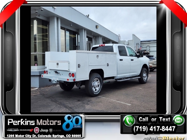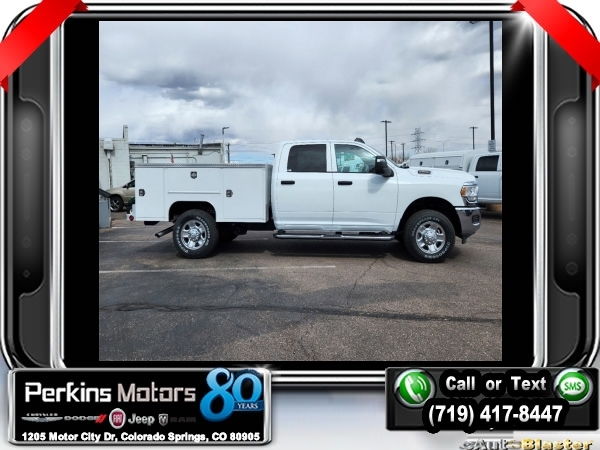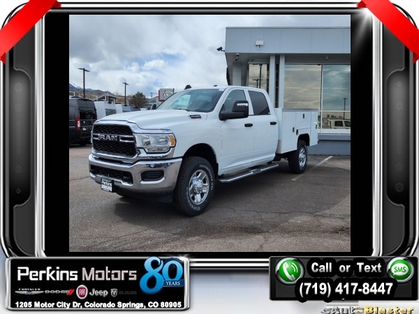 Factory MSRP: $58,785 Bright White Clearcoat 2024 Ram 2500 Tradesman 4WD 8-Speed Automatic 6.4L V8<br>SCELZI SERVICE BODY.<br>Check us out at www.perkinsmotors.com to see our specials! Since opening our doors in 1944, we’ve been proud to serve Colorado Springs, CO, and the surrounding areas of Pueblo, Castle Rock and Denver, CO. Throughout this time of being family owned for 80 years, we’ve maintained a firm commitment to our customers: to offer a wide selection of New Chrysler, Dodge, Fiat, Jeep, and Ram vehicles and quality pre-owned vehicles, and provide a quick, no-hassle car-buying process that ensures everyone drives off the lot satisfied with their purchase.<br><br>Chrome Appearance Group (Bright Front Bumper, Bright Rear Bumper, Center Hub, Chrome Grille Surround, Chrome Headlamp Bezels, Matte Black Mesh Grille w/Chrome, and Wheels: 18 x 8.0 Steel Chrome Clad), Heavy Duty Snow Plow Prep Group (220 Amp Alternator), Quick Order Package 2GA Tradesman, Tradesman Level 1 Equipment Group (Manual Folding Exterior Mirrors and Manual Telescoping Mirrors), 115V Auxiliary Front Power Outlet, 17 x 7.5 Steel Styled Wheels, 2 Way Rear Headrest Seat, 3.73 Axle Ratio, 4 Way Front Headrests, 4-Wheel Disc Brakes, 40/20/40 Split Bench Seat, 400W Inverter, 6 Speakers, ABS brakes, Active Noise Control System, Air Conditioning, AM/FM radio, Auto Power-Folding Mirrors, Black Exterior Mirrors, Brake assist, Chrome Flat Cab-Length Side Steps, Compass, Cruise Control, Dash Pass Thru Wire Circuits, Delay-off headlights, Driver door bin, Dual front impact airbags, Dual front side impact airbags, Electric Shift-On-The-Fly Transfer Case, Electronic Stability Control, Electronically Controlled Throttle, Emergency communication system: SiriusXM Guardian, Engine Block Heater, Exterior 115V AC Outlet, Exterior Mirrors Courtesy Lamps, Exterior Mirrors w/Heating Element, Exterior Mirrors w/Supplemental Signals, Forward & Reverse Utility Lights, Front anti-roll bar, Front Center Armrest w/Storage, Front License Plate Bracket, Front reading lights, Fully automatic headlights, Global Telematics Box Module (TBM), GPS Antenna Input, Heavy Duty Vinyl 40/20/40 Split Bench Seat, I/P Mounted Auxiliary Switches, Illuminated entry, Integrated Voice Command w/Bluetooth, Low tire pressure warning, Manual Adjust 4-Way Driver Seat, Mirror Running Lights, Occupant sensing airbag, Outside temperature display, Overhead airbag, Overhead console, ParkView Rear Back-Up Camera, Passenger door bin, Passenger vanity mirror, Power Adjust Mirrors, Power Adjustable Convex Aux Mirrors, Power Heated Fold Telescope Mirrors, Power steering, Power Telescoping Mirrors, Power windows, Radio data system, Radio: Uconnect 3 w/5 Display, Rear anti-roll bar, Rear Folding Seat, Rear step bumper, SiriusXM Radio Service, Storage Tray, Tachometer, Tilt steering wheel, Tip Start, Tow Hooks, Traction control, Trailer Brake Control, Trailer Light Check, Upfitter Electronic Module (VSIM), Variably intermittent wipers, and Voltmeter. Sale price includes all manufacture's incentives and dealer discounts. Sale price not available on lease or compatible with special APR. $2000 - 2024 Denver BC Bonus Cash . Exp. 07/31/2024 Price includes $12,995 in dealer added accessories.