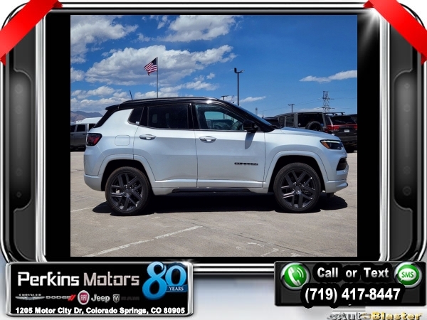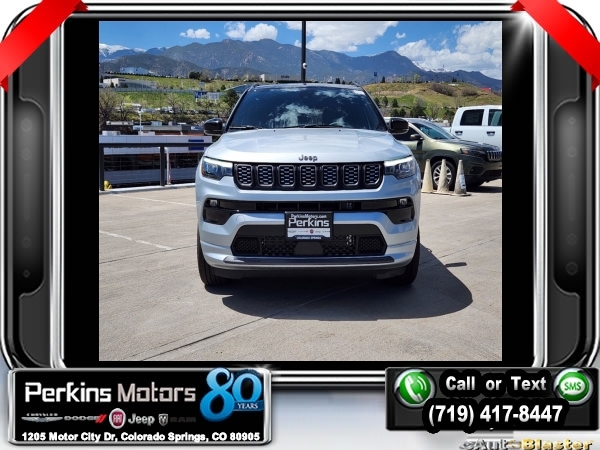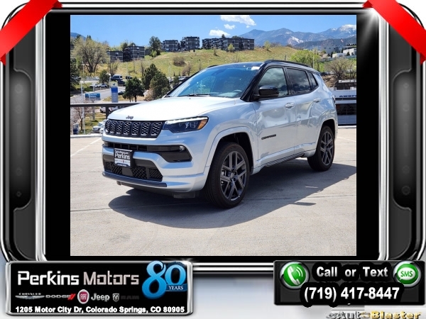 Factory MSRP: $38,930 $5,750 off MSRP! Priced below KBB Fair Purchase Price! Silver Zynith Metallic Clearcoat 2024 Jeep Compass Limited 4WD 8-Speed Automatic 2.0L I4 DOHC<br>4WD.<br>Check us out at www.perkinsmotors.com to see our specials! Since opening our doors in 1944, we’ve been proud to serve Colorado Springs, CO, and the surrounding areas of Pueblo, Castle Rock and Denver, CO. Throughout this time of being family owned for 80 years, we’ve maintained a firm commitment to our customers: to offer a wide selection of New Chrysler, Dodge, Fiat, Jeep, and Ram vehicles and quality pre-owned vehicles, and provide a quick, no-hassle car-buying process that ensures everyone drives off the lot satisfied with their purchase.<br><br>High Altitude Package (10.1 Touchscreen Display, 4G LTE Wi-Fi Hot Spot, Alexa Built-In, Black Day Light Opening Moldings, Body Color Door Claddings, Body Color Exterior Sill Moldings, Body Color Fascias, Body Color Roof, Body Color Wheel Flares, Cluster 10.25 TFT Color Display, Connected Travel & Traffic Services, Disassociated Touchscreen Display, For Details, Visit DriveUconnect.com, For More Info, Call 800-643-2112, Global Telematics Box Module (TBM), Gloss Black Surround/Neutral Gray Rings, GPS Navigation, HD Radio, Integrated Voice Command w/Bluetooth, LED Low/Highbeam Projector Headlamps, Liquid Chrome/Chainmail Hydro Accent, Neutral Gray Exterior Accents, Neutral Gray Exterior Badging, Power Front/Fixed Rear Full Sunroof, Premium Alpine Speaker System, Premium LED Fog Lamps, Premium Taillamps, Radio: Uconnect 5 Nav w/10.1 Display, SiriusXM Guardian - Included Trial (B), SiriusXM Radio Service, SiriusXM w/360L, Tungsten Accent Stitching, and Wheels: 19 x 7.5 Aluminum Painted), Quick Order Package 29G Limited, 4WD, 3.73 Final Drive Ratio, 4-Wheel Disc Brakes, 6 Speakers, ABS brakes, Air Conditioning, Alloy wheels, AM/FM radio: SiriusXM, Auto High-beam Headlights, Auto-dimming Rear-View mirror, Automatic temperature control, Brake assist, Bumpers: body-color, Compass, Cruise Control, Delay-off headlights, Driver door bin, Driver vanity mirror, Dual front impact airbags, Dual front side impact airbags, Electronic Stability Control, Emergency communication system: Jeep Connect, Four wheel independent suspension, Front anti-roll bar, Front Bucket Seats, Front Center Armrest w/Storage, Front dual zone A/C, Front fog lights, Front License Plate Bracket, Front reading lights, Fully automatic headlights, Heated door mirrors, Heated front seats, Heated steering wheel, Illuminated entry, Knee airbag, Leather Shift Knob, Leather steering wheel, Leatherette Seats, Low tire pressure warning, Occupant sensing airbag, Outside temperature display, Overhead airbag, Overhead console, Panic alarm, ParkView Rear Back-Up Camera, Passenger door bin, Passenger vanity mirror, Power door mirrors, Power driver seat, Power steering, Power windows, Radio: Uconnect 5 w/10.1 Display, Rain sensing wipers, Rear anti-roll bar, Rear seat center armrest, Rear window defroster, Rear window wiper, Remote keyless entry, Roof rack: rails only, Security system, Split folding rear seat, Spoiler, Steering wheel mounted audio controls, Tachometer, Telescoping steering wheel, Tilt steering wheel, Traction control, Trip computer, Turn signal indicator mirrors, Variably intermittent wipers, and Wheels: 18 x 7 Painted Diamond Cut AluminuM.<br><br>24/32 City/Highway MPG Sale price includes all manufacture's incentives and dealer discounts. Sale price not available on lease or compatible with special APR. $1500 - 2024 National Start Something New Retail Bonus Cash . Exp. 02/03/2025 $2000 - 2024 Retail Bonus Cash. Exp. 02/03/2025 $500 - 2024 National Retail Consumer Cash . Exp. 02/03/2025