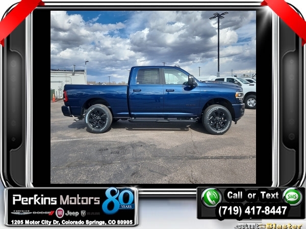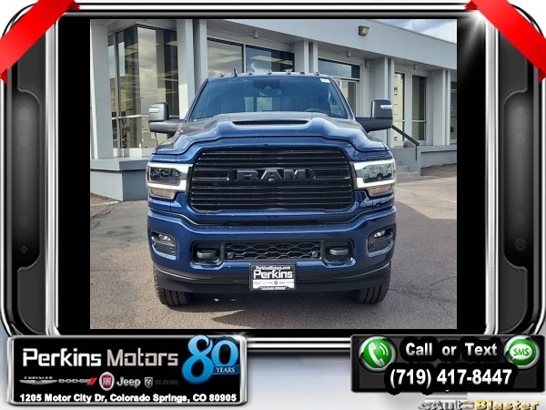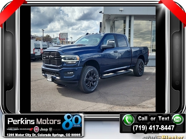Factory MSRP: $81,620 $6,500 off MSRP! Patriot Blue Pearlcoat 2024 Ram 2500 Laramie 4WD 8-Speed Automatic 6.4L V8<br><br>Check us out at www.perkinsmotors.com to see our specials! Since opening our doors in 1944, we’ve been proud to serve Colorado Springs, CO, and the surrounding areas of Pueblo, Castle Rock and Denver, CO. Throughout this time of being family owned for 80 years, we’ve maintained a firm commitment to our customers: to offer a wide selection of New Chrysler, Dodge, Fiat, Jeep, and Ram vehicles and quality pre-owned vehicles, and provide a quick, no-hassle car-buying process that ensures everyone drives off the lot satisfied with their purchase.<br><br>Bed Utility Group (LED Bed Lighting, MOPAR Deployable Bed Step, and MOPAR Spray In Bedliner), Heavy Duty Snow Plow Prep Group (220 Amp Alternator), Laramie Level 1 Equipment Group (12 Touchscreen Display, 2nd Row In Floor Storage Bins, 4G LTE Wi-Fi Hot Spot, Alexa Built-In, Apple CarPlay, Auto Adjust In Reverse Exterior Mirrors, Auto Dim Exterior Mirror, Auto High Beam Headlamp Control, Auto Power-Folding Mirrors, Auto-Dimming Exterior Passenger Mirror, Blind Spot & Cross Path Detection, Center Hub, Chrome Exterior Mirrors, Connected Travel & Traffic Services, Connectivity - US/Canada, Disassociated Touchscreen Display, Exterior Mirrors Courtesy Lamps, Exterior Mirrors w/Heating Element, Exterior Mirrors w/Memory, Exterior Mirrors w/Supplemental Signals, Foam Bottle Insert (Door Trim Panel), For Details, Visit DriveUconnect.com, For More Info, Call 800-643-2112, Forward & Reverse Utility Lights, Front LED Fog Lamps, Global Telematics Box Module (TBM), Google Android Auto, GPS Antenna Input, GPS Navigation, HD Radio, Integrated Voice Command w/Bluetooth, LED Reflector Headlamps, LED Tail Lamps, Mirror Running Lights, Off-Road Information Pages, ParkSense Front/Rear Park Assist System, Power Adjust Mirrors, Power Adjustable Convex Aux Mirrors, Power Adjustable Pedals w/Memory, Power Heated Fold Telescopic Mirrors w/Memory, Power Telescoping Mirrors, Radio: Uconnect 5 Nav w/12.0 Display, Rain Sensitive Windshield Wipers, Rear Power Sliding Window, Rear Window Defroster, Remote Tailgate Release, Selectable Tire Fill Alert, SiriusXM Radio Service, SiriusXM w/360L, Trailer Tow Pages, and Wheels: 18 x 8.0 Polished Aluminum), Night Edition (Black Exterior Truck Badging, Black Headlamp Bezels, Black Interior Accents, Black Ram Head Tailgate Badge, Black Tail Lamp Bezels, Black Wheel Center Hub, Body Color Grille Surround, Gloss Black Grille Billets/Accents, Sport Performance Hood, and Wheels: 20 x 8.0 Black Painted Aluminum), Protection Group (Tow Hooks), Quick Order Package 2GH Laramie, Safety Group (Adaptive Cruise Control w/Stop, Adaptive Steering System, Full Speed Forward Collision Warning Plus, and Lane Keep Assist), Tow Technology Plus Group (Digital 3.0 Rear View Auto Dimming Mirror and Trailer Reverse Steering Control), Towing Technology Group (CTR Stop Lamp w/Cargo View Camera, Surround View Camera System, and Trailer Reverse Guidance), 10 Speakers, 115V Auxiliary Rear Power Outlet, 2 Way Rear Headrest Seat, 3.73 Axle Ratio, 4 Way Front Headrests, 4-Wheel Disc Brakes, 4.10 Axle Ratio, 5th Wheel/Gooseneck Towing Prep Group, ABS brakes, Active Noise Control System, Air Conditioning, Alloy wheels, AM/FM radio: SiriusXM with 360L, Anti-Spin Differential Rear Axle, Apple CarPlay/Android Auto, Auto Level Rear Air Suspension, Automatic temperature control, Brake assist, Bumpers: body-color, Clearance Lamps, Compass, Cruise Control, Delay-off headlights, Driver door bin, Driver vanity mirror, Dual front impact airbags, Dual front side impact airbags, Electronic Stability Control, Electronically Controlled Throttle, Front anti-roll bar, Front Center Armrest w/Storage, Front dual zone A/C, Front License Plate Bracket, Front reading lights, Front Seat Back Map Pockets, Fully automatic headlights, Garage door transmitter, Heated door mirrors, Heated Front Seats, He
