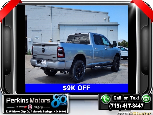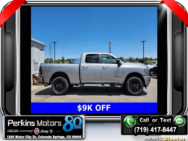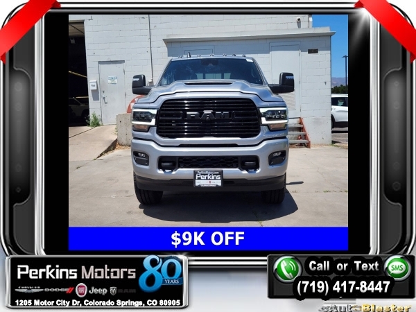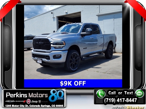 Factory MSRP: $81,670 $12,000 off MSRP! Billet Silver Metallic Clearcoat 2024 Ram 2500 Laramie 4WD 8-Speed Automatic 6.4L V8<br><br>Check us out at www.perkinsmotors.com to see our specials! Since opening our doors in 1944, we’ve been proud to serve Colorado Springs, CO, and the surrounding areas of Pueblo, Castle Rock and Denver, CO. Throughout this time of being family owned for 80 years, we’ve maintained a firm commitment to our customers: to offer a wide selection of New Chrysler, Dodge, Fiat, Jeep, and Ram vehicles and quality pre-owned vehicles, and provide a quick, no-hassle car-buying process that ensures everyone drives off the lot satisfied with their purchase.<br><br>Bed Utility Group (LED Bed Lighting, MOPAR Deployable Bed Step, and MOPAR Spray In Bedliner), Heavy Duty Snow Plow Prep Group (220 Amp Alternator), Laramie Level 1 Equipment Group (12 Touchscreen Display, 2nd Row In Floor Storage Bins, 4G LTE Wi-Fi Hot Spot, Alexa Built-In, Apple CarPlay, Auto Adjust In Reverse Exterior Mirrors, Auto Dim Exterior Mirror, Auto High Beam Headlamp Control, Auto Power-Folding Mirrors, Auto-Dimming Exterior Passenger Mirror, Blind Spot & Cross Path Detection, Center Hub, Chrome Exterior Mirrors, Connected Travel & Traffic Services, Connectivity - US/Canada, Disassociated Touchscreen Display, Exterior Mirrors Courtesy Lamps, Exterior Mirrors w/Heating Element, Exterior Mirrors w/Memory, Exterior Mirrors w/Supplemental Signals, Foam Bottle Insert (Door Trim Panel), For Details, Visit DriveUconnect.com, For More Info, Call 800-643-2112, Forward & Reverse Utility Lights, Front LED Fog Lamps, Global Telematics Box Module (TBM), Google Android Auto, GPS Antenna Input, GPS Navigation, HD Radio, Integrated Voice Command w/Bluetooth, LED Reflector Headlamps, LED Tail Lamps, Mirror Running Lights, Off-Road Information Pages, ParkSense Front/Rear Park Assist System, Power Adjust Mirrors, Power Adjustable Convex Aux Mirrors, Power Adjustable Pedals w/Memory, Power Heated Fold Telescopic Mirrors w/Memory, Power Telescoping Mirrors, Radio: Uconnect 5 Nav w/12.0 Display, Rain Sensitive Windshield Wipers, Rear Power Sliding Window, Rear Window Defroster, Remote Tailgate Release, Selectable Tire Fill Alert, SiriusXM Radio Service, SiriusXM w/360L, Trailer Tow Pages, and Wheels: 18 x 8.0 Polished Aluminum), Night Edition (Black Exterior Truck Badging, Black Headlamp Bezels, Black Interior Accents, Black Ram Head Tailgate Badge, Black Tail Lamp Bezels, Black Wheel Center Hub, Body Color Grille Surround, Gloss Black Grille Billets/Accents, Sport Performance Hood, and Wheels: 20 x 8.0 Black Painted Aluminum), Protection Group (Tow Hooks), Quick Order Package 2GH Laramie, Safety Group (Adaptive Cruise Control w/Stop, Adaptive Steering System, Full Speed Forward Collision Warning Plus, and Lane Keep Assist), Tow Technology Plus Group (Digital 3.0 Rear View Auto Dimming Mirror and Trailer Reverse Steering Control), Towing Technology Group (CTR Stop Lamp w/Cargo View Camera, Surround View Camera System, and Trailer Reverse Guidance), 10 Speakers, 115V Auxiliary Rear Power Outlet, 2 Way Rear Headrest Seat, 3.73 Axle Ratio, 4 Way Front Headrests, 4-Wheel Disc Brakes, 4.10 Axle Ratio, 5th Wheel/Gooseneck Towing Prep Group, ABS brakes, Active Noise Control System, Air Conditioning, Alloy wheels, AM/FM radio: SiriusXM with 360L, Anti-Spin Differential Rear Axle, Apple CarPlay/Android Auto, Auto Level Rear Air Suspension, Automatic temperature control, Brake assist, Bumpers: body-color, Clearance Lamps, Compass, Cruise Control, Delay-off headlights, Driver door bin, Driver vanity mirror, Dual front impact airbags, Dual front side impact airbags, Electronic Stability Control, Electronically Controlled Throttle, Front anti-roll bar, Front Center Armrest Sale price includes all manufacture's incentives and dealer discounts. Sale price not available on lease or compatible with special APR. $1000 - 2024 Bonus Cash . Exp. 09/03/2024 $5,000 - Exp.