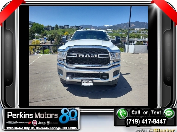 Factory MSRP: $72,200 $12,000 off MSRP! Priced below KBB Fair Purchase Price! Bright White Clearcoat 2024 Ram 2500 Tradesman 4WD 6-Speed Automatic Cummins 6.7L I6 Turbodiesel<br><br>Check us out at www.perkinsmotors.com to see our specials! Since opening our doors in 1944, we’ve been proud to serve Colorado Springs, CO, and the surrounding areas of Pueblo, Castle Rock and Denver, CO. Throughout this time of being family owned for 80 years, we’ve maintained a firm commitment to our customers: to offer a wide selection of New Chrysler, Dodge, Fiat, Jeep, and Ram vehicles and quality pre-owned vehicles, and provide a quick, no-hassle car-buying process that ensures everyone drives off the lot satisfied with their purchase.<br><br>Chrome Appearance Group (Bright Front Bumper, Bright Rear Bumper, Center Hub, Chrome Grille Surround, Chrome Headlamp Bezels, Matte Black Mesh Grille w/Chrome, and Wheels: 18 x 8.0 Steel Chrome Clad), Convenience Group (Air Conditioning ATC w/Dual Zone Control, Auto-Dimming Rear-View Mirror, and Tinted Acoustic Windshield Glass), Protection Group (Tow Hooks), Quick Order Package 2HA Tradesman, Snow Chief Group (Anti-Spin Differential Rear Axle, Auxiliary Switches Prep, Clearance Lamps, Dash Pass Thru Wire Circuits, and I/P Mounted Auxiliary Switches), Tradesman Level 1 Equipment Group (Manual Folding Exterior Mirrors and Manual Telescoping Mirrors), 115V Auxiliary Front Power Outlet, 17 x 7.5 Steel Styled Wheels, 2 Way Rear Headrest Seat, 220 Amp Alternator, 3.73 Axle Ratio, 4 Way Front Headrests, 4-Wheel Disc Brakes, 40/20/40 Split Bench Seat, 400W Inverter, 4G LTE Wi-Fi Hot Spot, 50 Gallon Fuel Tank, 6 Speakers, 8.4 Touchscreen Display, ABS brakes, Active Noise Control System, Air Conditioning, Alexa Built-In, All R1 High Radios, All Radio Equipped Vehicles, AM/FM radio, Apple CarPlay, Auto Level Rear Air Suspension, Auto Power-Folding Mirrors, Black Exterior Mirrors, Brake assist, Compass, Connected Travel & Traffic Services, Connectivity - US/Canada, Cruise Control, Delay-off headlights, Disassociated Touchscreen Display, Driver door bin, Dual Alternators Rated At 440 Amps, Dual front impact airbags, Dual front side impact airbags, Electric Shift-On-The-Fly Transfer Case, Electronic Stability Control, Electronically Controlled Throttle, Emergency communication system: SiriusXM Guardian, Exterior 115V AC Outlet, Exterior Mirrors Courtesy Lamps, Exterior Mirrors w/Heating Element, Exterior Mirrors w/Supplemental Signals, For Details, Visit DriveUconnect.com, For More Info, Call 800-643-2112, Forward & Reverse Utility Lights, Front anti-roll bar, Front Center Armrest w/Storage, Front License Plate Bracket, Front reading lights, Fully automatic headlights, Global Telematics Box Module (TBM), Google Android Auto, GPS Antenna Input, GPS Navigation, HD Radio, Heavy Duty Vinyl 40/20/40 Split Bench Seat, Illuminated entry, Integrated Center Stack Radio, Integrated Voice Command w/Bluetooth, Low tire pressure warning, Manual Adjust 4-Way Driver Seat, Manufacturer's Statement of Origin, Mirror Running Lights, MOPAR Front & Rear Rubber Floor Mats, Occupant sensing airbag, Off-Road Information Pages, Outside temperature display, Overhead airbag, Overhead console, ParkView Rear Back-Up Camera, Passenger door bin, Passenger vanity mirror, Power Adjust Mirrors, Power Adjustable Convex Aux Mirrors, Power Heated Fold Telescope Mirrors, Power steering, Power Telescoping Mirrors, Power windows, Radio data system, Radio: Uconnect 3 w/5 Display, Radio: Uconnect 5 Nav w/8.4 Display, Rear anti-roll bar, Rear Folding Seat, Rear step bumper, Selectable Tire Fill Alert, SiriusXM Radio Service, SiriusXM w/360L, Storage Tray, Tachometer, Tilt steering wheel, Tip Start, Traction control, Trailer Brake Control, Trailer Light Check, Trailer Sale price includes all manufacture's incentives and dealer discounts. Sale price not available on lease or compatible with special APR. $2000 - 2024 Denver BC Bonus Cash . Exp. 0