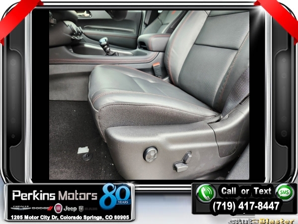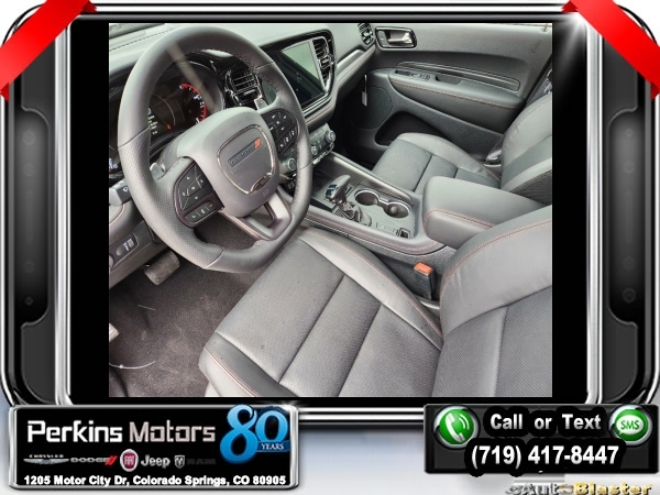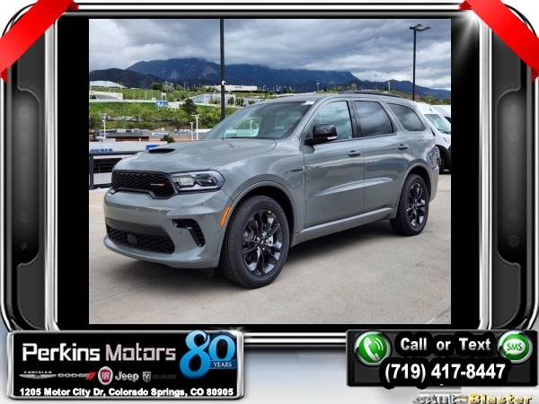Factory MSRP: $61,450 $7,091 off MSRP! Destroyer Gray Clearcoat 2024 Dodge Durango R/T AWD 8-Speed Automatic HEMI 5.7L V8 Multi Displacement VVT<br>AWD.<br>Check us out at www.perkinsmotors.com to see our specials! Since opening our doors in 1944, we’ve been proud to serve Colorado Springs, CO, and the surrounding areas of Pueblo, Castle Rock and Denver, CO. Throughout this time of being family owned for 80 years, we’ve maintained a firm commitment to our customers: to offer a wide selection of New Chrysler, Dodge, Fiat, Jeep, and Ram vehicles and quality pre-owned vehicles, and provide a quick, no-hassle car-buying process that ensures everyone drives off the lot satisfied with their purchase.<br><br>Blacktop Package (Black Roof Rails, Gloss Black Badges, Integrated Roof Rail Crossbars, and Satin Black Dodge Tail Lamp Badge), Quick Order Package 22T R/T Plus (115V Auxiliary Power Outlet, 7 & 4 Pin Wiring Harness, Adaptive Cruise Control w/Stop, Auto-Dimming Exterior Driver Mirror, Blind Spot w/Trailer Detection, Class IV Receiver Hitch, Dual Remote USB Port - Charge Only, Exterior Mirrors w/Heating Element, Exterior Mirrors w/Memory, Exterior Mirrors w/Supplemental Signals, Floor Console w/Leather Armrest, Full Speed Forward Collision Warning Plus, Gloss Black Exterior Mirrors, Heated Second Row Seats, Leather Trimmed Bucket Seats, Leather Wrapped Door Panels, LED Auxiliary Low Beam & Turn Signal, Power 6x9 Multi-Function Foldaway Mirrors, Power 8-Way Driver Memory 8-Way Passenger Seats, Power Driver/Passenger 4-Way Lumbar Adjust, Power Tilt & Telescopic Steering Column, Radio/Driver Seat/Mirrors Memory, Red Accent Stitching, Trailer Brake Control, and Ventilated Front Seats), AWD, 2nd Row Fold/Tumble Captain Chairs, 2nd Row Mini Console w/Cupholders, 2nd Row Seat Mounted Inboard Armrests, 3.09 Rear Axle Ratio, 3rd Row Floor Mat & Mini Console, 3rd row seats: split-bench, 4-Wheel Disc Brakes, 6-Passenger Seating, 9 Speakers, ABS brakes, Air Conditioning, Alloy wheels, AM/FM radio: SiriusXM w/360L, Anti-whiplash front head restraints, Apple CarPlay/Android Auto, Auto High-beam Headlights, Auto-dimming Rear-View mirror, Auto-leveling suspension, Automatic temperature control, Brake assist, Bumpers: body-color, Cloth Bucket Seats w/Shift Insert, Compass, Cruise Control, Delay-off headlights, Driver door bin, Driver vanity mirror, Dual front impact airbags, Dual front side impact airbags, Electronic Stability Control, Emergency communication system, Four wheel independent suspension, Front anti-roll bar, Front Bucket Seats, Front Center Armrest w/Storage, Front dual zone A/C, Front License Plate Bracket, Front reading lights, Fully automatic headlights, Garage door transmitter, Heated door mirrors, Heated front seats, Heated steering wheel, Illuminated entry, Knee airbag, Leather steering wheel, Low tire pressure warning, Navigation system: TomTom, Occupant sensing airbag, Outside temperature display, Overhead airbag, Overhead console, Panic alarm, ParkView Rear Back-Up Camera, Passenger door bin, Passenger vanity mirror, Power door mirrors, Power driver seat, Power Liftgate, Power steering, Power windows, Radio data system, Radio: Uconnect 5 Nav w/10.1 Display, Rain sensing wipers, Rear air conditioning, Rear anti-roll bar, Rear Load Leveling Suspension, Rear reading lights, Rear seat center armrest, Rear window defroster, Rear window wiper, Remote keyless entry, Security system, Speed-sensing steering, Speed-Sensitive Wipers, Split folding rear seat, Spoiler, Sport steering wheel, Steering wheel mounted audio controls, Tachometer, Telescoping steering wheel, Tilt steering wheel, Traction control, Trip computer, Variably intermittent wipers, Voltmeter, Wheels: 20 x 8.0 Black Noise Aluminum, and Wheels: 20 x 8.0 Fine Sale price includes all manufacture's incentives and dealer discounts. Sale price not available on lease or compatible with special APR. $3600 - 2024 DODGE National Power Dollars Bonus Cash 39CR1. Exp. 0
