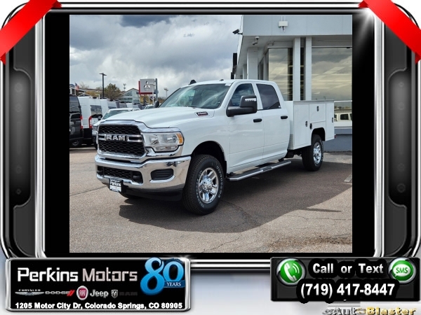 Factory MSRP: $58,785 $1,005 off MSRP! Bright White Clearcoat 2024 Ram 2500 Tradesman 4WD 8-Speed Automatic 6.4L V8<br>SCELZI SERVICE BODY.<br>Check us out at www.perkinsmotors.com to see our specials! Since opening our doors in 1944, we’ve been proud to serve Colorado Springs, CO, and the surrounding areas of Pueblo, Castle Rock and Denver, CO. Throughout this time of being family owned for 80 years, we’ve maintained a firm commitment to our customers: to offer a wide selection of New Chrysler, Dodge, Fiat, Jeep, and Ram vehicles and quality pre-owned vehicles, and provide a quick, no-hassle car-buying process that ensures everyone drives off the lot satisfied with their purchase.<br><br>Chrome Appearance Group (Bright Front Bumper, Bright Rear Bumper, Center Hub, Chrome Grille Surround, Chrome Headlamp Bezels, Matte Black Mesh Grille w/Chrome, and Wheels: 18 x 8.0 Steel Chrome Clad), Heavy Duty Snow Plow Prep Group (220 Amp Alternator), Quick Order Package 2GA Tradesman, Tradesman Level 1 Equipment Group (Manual Folding Exterior Mirrors and Manual Telescoping Mirrors), 115V Auxiliary Front Power Outlet, 17 x 7.5 Steel Styled Wheels, 2 Way Rear Headrest Seat, 3.73 Axle Ratio, 4 Way Front Headrests, 4-Wheel Disc Brakes, 40/20/40 Split Bench Seat, 400W Inverter, 6 Speakers, ABS brakes, Active Noise Control System, Air Conditioning, AM/FM radio, Auto Power-Folding Mirrors, Black Exterior Mirrors, Brake assist, Chrome Flat Cab-Length Side Steps, Compass, Cruise Control, Dash Pass Thru Wire Circuits, Delay-off headlights, Driver door bin, Dual front impact airbags, Dual front side impact airbags, Electric Shift-On-The-Fly Transfer Case, Electronic Stability Control, Electronically Controlled Throttle, Emergency communication system: SiriusXM Guardian, Engine Block Heater, Exterior 115V AC Outlet, Exterior Mirrors Courtesy Lamps, Exterior Mirrors w/Heating Element, Exterior Mirrors w/Supplemental Signals, Forward & Reverse Utility Lights, Front anti-roll bar, Front Center Armrest w/Storage, Front License Plate Bracket, Front reading lights, Fully automatic headlights, Global Telematics Box Module (TBM), GPS Antenna Input, Heavy Duty Vinyl 40/20/40 Split Bench Seat, I/P Mounted Auxiliary Switches, Illuminated entry, Integrated Voice Command w/Bluetooth, Low tire pressure warning, Manual Adjust 4-Way Driver Seat, Mirror Running Lights, Occupant sensing airbag, Outside temperature display, Overhead airbag, Overhead console, ParkView Rear Back-Up Camera, Passenger door bin, Passenger vanity mirror, Power Adjust Mirrors, Power Adjustable Convex Aux Mirrors, Power Heated Fold Telescope Mirrors, Power steering, Power Telescoping Mirrors, Power windows, Radio data system, Radio: Uconnect 3 w/5 Display, Rear anti-roll bar, Rear Folding Seat, Rear step bumper, SiriusXM Radio Service, Storage Tray, Tachometer, Tilt steering wheel, Tip Start, Tow Hooks, Traction control, Trailer Brake Control, Trailer Light Check, Upfitter Electronic Module (VSIM), Variably intermittent wipers, and Voltmeter. Sale price includes all manufacture's incentives and dealer discounts. Sale price not available on lease or compatible with special APR. $2000 - 2024 Denver BC Bonus Cash . Exp. 07/01/2024 $2000 - 2024 Denver BC Commercial Bonus Cash. Exp. 07/01/2024 Price includes $12,995 in dealer added accessories.