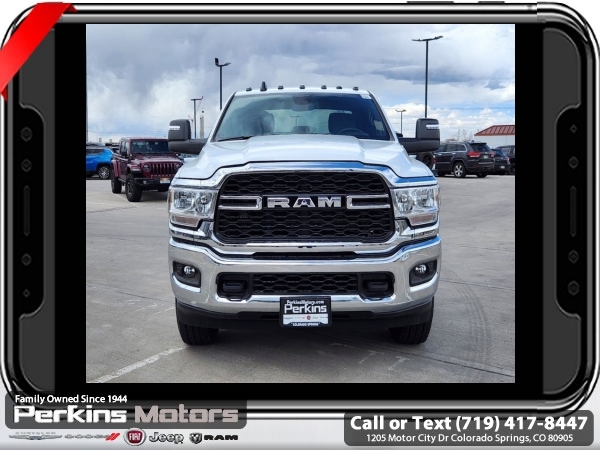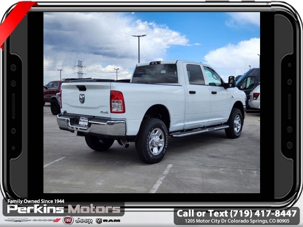 Factory MSRP: $72,965 $14,421 off MSRP! Bright White Clearcoat 2024 Ram 2500 Tradesman 4WD 6-Speed Automatic Cummins 6.7L I6 Turbodiesel<br><br>Check us out at www.perkinsmotors.com to see our specials! Since opening our doors in 1944, we’ve been proud to serve Colorado Springs, CO, and the surrounding areas of Pueblo, Castle Rock and Denver, CO. Throughout this time of being family owned for 80 years, we’ve maintained a firm commitment to our customers: to offer a wide selection of New Chrysler, Dodge, Fiat, Jeep, and Ram vehicles and quality pre-owned vehicles, and provide a quick, no-hassle car-buying process that ensures everyone drives off the lot satisfied with their purchase.<br><br>Chrome Appearance Group (Bright Front Bumper, Bright Rear Bumper, Center Hub, Chrome Grille Surround, Chrome Headlamp Bezels, Matte Black Mesh Grille w/Chrome, and Wheels: 18 x 8.0 Steel Chrome Clad), Convenience Group (Air Conditioning ATC w/Dual Zone Control, Auto-Dimming Rear-View Mirror, and Tinted Acoustic Windshield Glass), Protection Group (Tow Hooks), Quick Order Package 2HA Tradesman, Snow Chief Group (Anti-Spin Differential Rear Axle, Auxiliary Switches Prep, Clearance Lamps, Dash Pass Thru Wire Circuits, and I/P Mounted Auxiliary Switches), Tradesman Level 1 Equipment Group (Manual Folding Exterior Mirrors and Manual Telescoping Mirrors), 115V Auxiliary Front Power Outlet, 17 x 7.5 Steel Styled Wheels, 2 Way Rear Headrest Seat, 220 Amp Alternator, 3.73 Axle Ratio, 4 Way Front Headrests, 4-Wheel Disc Brakes, 40/20/40 Split Bench Seat, 400W Inverter, 4G LTE Wi-Fi Hot Spot, 5th Wheel/Gooseneck Towing Prep Group, 6 Speakers, 8.4 Touchscreen Display, ABS brakes, Active Noise Control System, Air Conditioning, Alexa Built-In, All R1 High Radios, All Radio Equipped Vehicles, AM/FM radio, Apple CarPlay, Auto Power-Folding Mirrors, Black Exterior Mirrors, Brake assist, Chrome Flat Wheel-to-Wheel Side Steps, Compass, Connected Travel & Traffic Services, Connectivity - US/Canada, Cruise Control, CTR Stop Lamp w/Cargo View Camera, Delay-off headlights, Disassociated Touchscreen Display, Driver door bin, Dual Alternators Rated At 440 Amps, Dual front impact airbags, Dual front side impact airbags, Electric Shift-On-The-Fly Transfer Case, Electronic Stability Control, Electronically Controlled Throttle, Emergency communication system: SiriusXM Guardian, Exterior 115V AC Outlet, Exterior Mirrors Courtesy Lamps, Exterior Mirrors w/Heating Element, Exterior Mirrors w/Supplemental Signals, For Details, Visit DriveUconnect.com, For More Info, Call 800-643-2112, Forward & Reverse Utility Lights, Front anti-roll bar, Front Center Armrest w/Storage, Front License Plate Bracket, Front reading lights, Fully automatic headlights, Global Telematics Box Module (TBM), Google Android Auto, GPS Antenna Input, GPS Navigation, HD Radio, Heavy Duty Vinyl 40/20/40 Split Bench Seat, Illuminated entry, Integrated Center Stack Radio, Integrated Voice Command w/Bluetooth, Low tire pressure warning, Manual Adjust 4-Way Driver Seat, Manufacturer's Statement of Origin, Mirror Running Lights, MOPAR Front & Rear Rubber Floor Mats, MOPAR Spray In Bedliner, Occupant sensing airbag, Off-Road Information Pages, Outside temperature display, Overhead airbag, Overhead console, ParkSense Rear Park Assist System, ParkView Rear Back-Up Camera, Passenger door bin, Passenger vanity mirror, Power Adjust Mirrors, Power Adjustable Convex Aux Mirrors, Power Heated Fold Telescope Mirrors, Power steering, Power Telescoping Mirrors, Power windows, Radio data system, Radio: Uconnect 3 w/5 Display, Radio: Uconnect 5 Nav w/8.4 Display, Rear anti-roll bar Sale price includes all manufacture's incentives and dealer discounts. Sale price not available on lease or compatible with special APR. $1000 - 2024West BC Trade Assist Bonus Cash. Exp. 06/30/2025 $1500 - 2024 National Stellantis Loyalty Bonus Cash . Exp. 06/30/2025 $6019 - 2024 National Minimum Employee Pricing Discount . Exp. 0