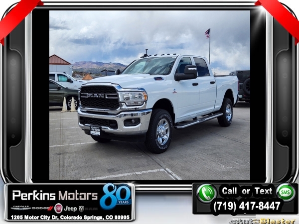 Factory MSRP: $72,965 $14,000 off MSRP! Bright White Clearcoat 2024 Ram 2500 Tradesman 4WD 6-Speed Automatic Cummins 6.7L I6 Turbodiesel<br><br>Check us out at www.perkinsmotors.com to see our specials! Since opening our doors in 1944, we’ve been proud to serve Colorado Springs, CO, and the surrounding areas of Pueblo, Castle Rock and Denver, CO. Throughout this time of being family owned for 80 years, we’ve maintained a firm commitment to our customers: to offer a wide selection of New Chrysler, Dodge, Fiat, Jeep, and Ram vehicles and quality pre-owned vehicles, and provide a quick, no-hassle car-buying process that ensures everyone drives off the lot satisfied with their purchase.<br><br>Chrome Appearance Group (Bright Front Bumper, Bright Rear Bumper, Center Hub, Chrome Grille Surround, Chrome Headlamp Bezels, Matte Black Mesh Grille w/Chrome, and Wheels: 18 x 8.0 Steel Chrome Clad), Convenience Group (Air Conditioning ATC w/Dual Zone Control, Auto-Dimming Rear-View Mirror, and Tinted Acoustic Windshield Glass), Protection Group (Tow Hooks), Quick Order Package 2HA Tradesman, Snow Chief Group (Anti-Spin Differential Rear Axle, Auxiliary Switches Prep, Clearance Lamps, Dash Pass Thru Wire Circuits, and I/P Mounted Auxiliary Switches), Tradesman Level 1 Equipment Group (Manual Folding Exterior Mirrors and Manual Telescoping Mirrors), 115V Auxiliary Front Power Outlet, 17 x 7.5 Steel Styled Wheels, 2 Way Rear Headrest Seat, 220 Amp Alternator, 3.73 Axle Ratio, 4 Way Front Headrests, 4-Wheel Disc Brakes, 40/20/40 Split Bench Seat, 400W Inverter, 4G LTE Wi-Fi Hot Spot, 5th Wheel/Gooseneck Towing Prep Group, 6 Speakers, 8.4 Touchscreen Display, ABS brakes, Active Noise Control System, Air Conditioning, Alexa Built-In, All R1 High Radios, All Radio Equipped Vehicles, AM/FM radio, Apple CarPlay, Auto Power-Folding Mirrors, Black Exterior Mirrors, Brake assist, Chrome Flat Wheel-to-Wheel Side Steps, Compass, Connected Travel & Traffic Services, Connectivity - US/Canada, Cruise Control, CTR Stop Lamp w/Cargo View Camera, Delay-off headlights, Disassociated Touchscreen Display, Driver door bin, Dual Alternators Rated At 440 Amps, Dual front impact airbags, Dual front side impact airbags, Electric Shift-On-The-Fly Transfer Case, Electronic Stability Control, Electronically Controlled Throttle, Emergency communication system: SiriusXM Guardian, Exterior 115V AC Outlet, Exterior Mirrors Courtesy Lamps, Exterior Mirrors w/Heating Element, Exterior Mirrors w/Supplemental Signals, For Details, Visit DriveUconnect.com, For More Info, Call 800-643-2112, Forward & Reverse Utility Lights, Front anti-roll bar, Front Center Armrest w/Storage, Front License Plate Bracket, Front reading lights, Fully automatic headlights, Global Telematics Box Module (TBM), Google Android Auto, GPS Antenna Input, GPS Navigation, HD Radio, Heavy Duty Vinyl 40/20/40 Split Bench Seat, Illuminated entry, Integrated Center Stack Radio, Integrated Voice Command w/Bluetooth, Low tire pressure warning, Manual Adjust 4-Way Driver Seat, Manufacturer's Statement of Origin, Mirror Running Lights, MOPAR Front & Rear Rubber Floor Mats, MOPAR Spray In Bedliner, Occupant sensing airbag, Off-Road Information Pages, Outside temperature display, Overhead airbag, Overhead console, ParkSense Rear Park Assist System, ParkView Rear Back-Up Camera, Passenger door bin, Passenger vanity mirror, Power Adjust Mirrors, Power Adjustable Convex Aux Mirrors, Power Heated Fold Telescope Mirrors, Power steering, Power Telescoping Mirrors, Power windows, Radio data system, Radio: Uconnect 3 w/5 Display, Radio: Uconnect 5 Nav w/8.4 Display, Rear anti-roll bar, Rear Folding Seat, Rear step bumper, Rear Wheelhouse Liners, Selectable Tire Fill Ale Sale price includes all manufacture's incentives and dealer discounts. Sale price not available on lease or compatible with special APR. $1000 - 2024 Bonus Cash . Exp. 09/03/2024 $2000 - 2024 Denver BC Bonus Cash . Exp. 09/03/2024 $5,000 - Exp.
