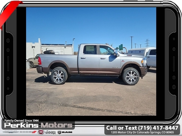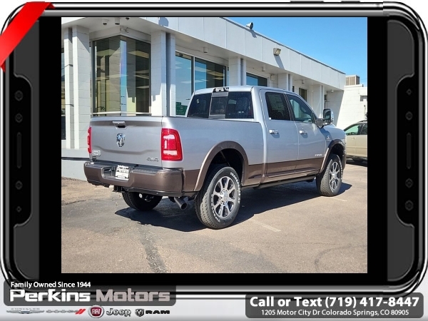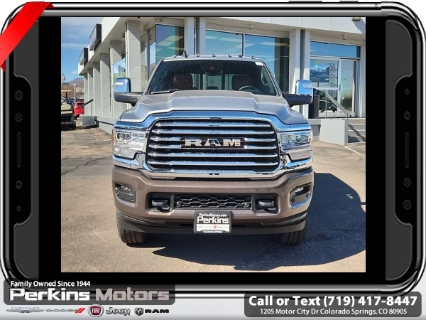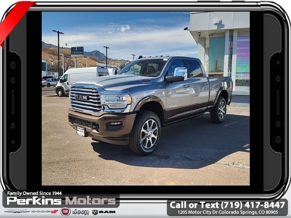 Factory MSRP: $98,825 $15,000 off MSRP! Billet Silver Metallic Clearcoat 2024 Ram 2500 Longhorn 4WD 6-Speed Automatic Cummins 6.7L I6 Turbodiesel<br><br>Check us out at www.perkinsmotors.com to see our specials! Since opening our doors in 1944, we’ve been proud to serve Colorado Springs, CO, and the surrounding areas of Pueblo, Castle Rock and Denver, CO. Throughout this time of being family owned for 80 years, we’ve maintained a firm commitment to our customers: to offer a wide selection of New Chrysler, Dodge, Fiat, Jeep, and Ram vehicles and quality pre-owned vehicles, and provide a quick, no-hassle car-buying process that ensures everyone drives off the lot satisfied with their purchase.<br><br>Longhorn Level 1 Equipment Group (12 Touchscreen Display, 17 Speaker harman/kardon Premium Sound, 4G LTE Wi-Fi Hot Spot, Alexa Built-In, Apple CarPlay, Blind Spot & Cross Path Detection, Connected Travel & Traffic Services, Connectivity - US/Canada, Disassociated Touchscreen Display, For Details, Visit DriveUconnect.com, For More Info, Call 800-643-2112, Global Telematics Box Module (TBM), Google Android Auto, GPS Antenna Input, GPS Navigation, HD Radio, Integrated Voice Command w/Bluetooth, LED Bed Lighting, MOPAR Spray In Bedliner, Off-Road Information Pages, Power Deployable Running Boards, Radio: Uconnect 5 Nav w/12.0 Display, Ramcharger Wireless Charging Pad, Selectable Tire Fill Alert, SiriusXM Radio Service, SiriusXM w/360L, and Trailer Tow Pages), Protection Group, Quick Order Package 2HK Longhorn, Safety Group (Adaptive Cruise Control w/Stop, Adaptive Steering System, Full Speed Forward Collision Warning Plus, and Lane Keep Assist), Snow Chief Group (Anti-Spin Differential Rear Axle, Auxiliary Switches Prep, Clearance Lamps, Dash Pass Thru Wire Circuits, and I/P Mounted Auxiliary Switches), Tow Technology Plus Group (Digital 3.0 Rear View Auto Dimming Mirror and Trailer Reverse Steering Control), Towing Technology Group (CTR Stop Lamp w/Cargo View Camera, Surround View Camera System, and Trailer Reverse Guidance), 10 Speakers, 115V Auxiliary Rear Power Outlet, 2 Way Rear Headrest Seat, 220 Amp Alternator, 3.73 Axle Ratio, 4 Way Front Headrests, 4-Wheel Disc Brakes, 5th Wheel/Gooseneck Towing Prep Group, ABS brakes, Active Noise Control System, Adjustable pedals, Air Conditioning, Alloy wheels, AM/FM radio: SiriusXM with 360L, Apple CarPlay/Android Auto, Audio memory, Auto High-beam Headlights, Auto Level Rear Air Suspension, Auto-dimming door mirrors, Auto-dimming Rear-View mirror, Automatic temperature control, Brake assist, Bucket Seats, Bumpers: body-color, Center Hub, Compass, Cruise Control, Delay-off headlights, Driver door bin, Driver vanity mirror, Dual Alternators Rated At 440 Amps, Dual front impact airbags, Dual front side impact airbags, Electronic Stability Control, Electronically Controlled Throttle, Folding Flat Load Floor Storage, Front anti-roll bar, Front Bucket Seats, Front Center Armrest w/Storage, Front dual zone A/C, Front fog lights, Front License Plate Bracket, Front reading lights, Front Seat Back Map Pockets, Full Length Premium Upgraded Floor Console, Fully automatic headlights, Garage door transmitter, Genuine wood console insert, Genuine wood dashboard insert, Genuine wood door panel insert, Heated door mirrors, Heated Front Seats, Heated front seats, Heated rear seats, Heated Second Row Seats, Heated Steering Wheel, Heated steering wheel, High Back Seats, Illuminated entry, Leather steering wheel, Low tire pressure warning, Manufacturer's Statement of Origin, Memory seat, MOPAR Deployable Bed Step, Navigation System, Occupant sensing airbag, Outside temperature display, Overhead airbag, Overhead console, Panic alarm, ParkView Rea Sale price includes all manufacture's incentives and dealer discounts. Sale price not available on lease or compatible with special APR. $1500 - 2024 National Stellantis Loyalty Bonus Cash . Exp. 04/30/2025 $2500 - 2024 National Truck Month Bonus Cash. Exp. 0