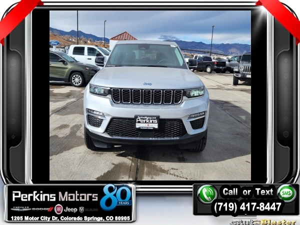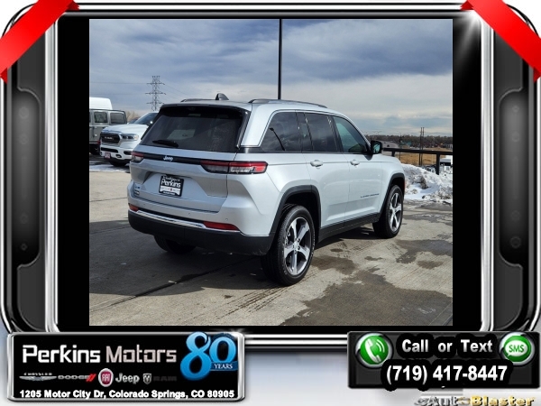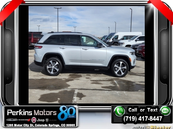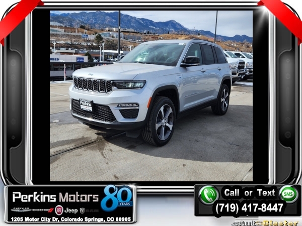 Factory MSRP: $69,425 $15,339 off MSRP! Priced below KBB Fair Purchase Price! Silver Zynith 2024 Jeep Grand Cherokee Base 4xe 4WD 8-Speed Automatic 2.0L I4 DOHC<br>2.0L I4 DOHC, 4WD.<br>Check us out at www.perkinsmotors.com to see our specials! Since opening our doors in 1944, we’ve been proud to serve Colorado Springs, CO, and the surrounding areas of Pueblo, Castle Rock and Denver, CO. Throughout this time of being family owned for 80 years, we’ve maintained a firm commitment to our customers: to offer a wide selection of New Chrysler, Dodge, Fiat, Jeep, and Ram vehicles and quality pre-owned vehicles, and provide a quick, no-hassle car-buying process that ensures everyone drives off the lot satisfied with their purchase.<br><br>Luxury Tech Group II (2nd-Row Manual Window Shades, Auto-Dimming Exterior Driver Mirror, Capri Leatherette w/Axis II Seats, Integrated Off-Road Camera, Intersection Collision Assist System, Memory Steering Column, ParkSense Front/Rear Park Assist w/Stop, Passive Entry - Front/Rear Doors, Liftgate, Power Tilt/Telescope Steering Column, Rain Sensitive Windshield Wipers, Rear Back Up Camera Washer, Rearview Autodim Digital Display Mirror, Surround View Camera System, Ventilated Front Seats, and Wireless Charging Pad), Quick Order Package 27F, Trailer Tow Package (7 & 4 Pin Wiring Harness, Automatic Headlamp Levelling System, Class IV Receiver Hitch, and Rear Load Levelling Suspension), 2.0L I4 DOHC, 4WD, 10 Speakers, 3.70 Rear Axle Ratio, 4-Wheel Disc Brakes, ABS brakes, Air Conditioning, Alloy wheels, AM/FM radio: SiriusXM with 360L, Anti-whiplash front head restraints, Audio memory, Auto High-beam Headlights, Automatic temperature control, Brake assist, Bumpers: body-color, Compass, Cruise Control, Delay-off headlights, Driver door bin, Driver vanity mirror, Dual front impact airbags, Dual front side impact airbags, Electronic Stability Control, Four wheel independent suspension, Front anti-roll bar, Front Bucket Seats, Front Center Armrest w/Storage, Front dual zone A/C, Front fog lights, Front License Plate Bracket, Front reading lights, Fully automatic headlights, Garage door transmitter, Heated door mirrors, Heated front seats, Heated rear seats, Heated steering wheel, Heavy Duty Suspension, Illuminated entry, Knee airbag, Low tire pressure warning, Memory seat, Navigation System, Occupant sensing airbag, Outside temperature display, Overhead airbag, Overhead console, Panic alarm, ParkView Rear Back-Up Camera, Passenger door bin, Passenger vanity mirror, Power door mirrors, Power driver seat, Power Liftgate, Power moonroof, Power passenger seat, Power steering, Power windows, Radio data system, Radio: Uconnect 5 Nav w/10.1 Display, Rear anti-roll bar, Rear reading lights, Rear window defroster, Rear window wiper, Remote keyless entry, Roof rack: rails only, Security system, Speed-Sensitive Wipers, Split folding rear seat, Spoiler, Steering wheel mounted audio controls, Tachometer, Telescoping steering wheel, Tilt steering wheel, Traction control, Trip computer, Turn signal indicator mirrors, Variably intermittent wipers, Voltmeter, Wheels: 18 x 8 Fully Painted Aluminum, and Wheels: 20 x 8.5 Machined Painted Aluminum. Sale price includes all manufacture's incentives and dealer discounts. Sale price not available on lease or compatible with special APR. $2500 - 2024 JR Denver BC Bonus Cash DECRA. Exp. 06/03/2024 $3000 - 2024 DJR National Retail Consumer Cash 24CR1. Exp. 06/03/2024 $3000 - 2024 JEEP Denver BC Retail Bonus Cash DECRA1. Exp. 06/03/2024 $3750 - Federal EV Tax Credit. Exp. 12/31/2024