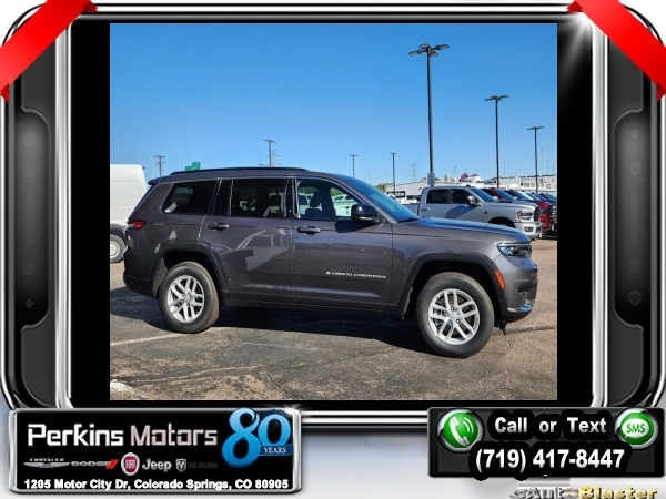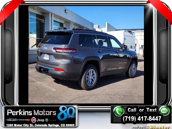 Factory MSRP: $47,215 $9,000 off MSRP! Priced below KBB Fair Purchase Price! Baltic Gray Metallic Clearcoat 2024 Jeep Grand Cherokee L Laredo 4WD 8-Speed Automatic 3.6L V6 24V VVT<br><br>Check us out at www.perkinsmotors.com to see our specials! Since opening our doors in 1944, we’ve been proud to serve Colorado Springs, CO, and the surrounding areas of Pueblo, Castle Rock and Denver, CO. Throughout this time of being family owned for 80 years, we’ve maintained a firm commitment to our customers: to offer a wide selection of New Chrysler, Dodge, Fiat, Jeep, and Ram vehicles and quality pre-owned vehicles, and provide a quick, no-hassle car-buying process that ensures everyone drives off the lot satisfied with their purchase.<br><br>Luxury Tech Group I (3rd Row Charge-Only USB Ports, Power Liftgate, and Rain Sensitive Windshield Wipers), Quick Order Package 23A Laredo, Trailer Tow Package (Dual Exhaust Tips), 3.45 Rear Axle Ratio, 3rd row seats: split-bench, 4-Wheel Disc Brakes, 6 Speakers, ABS brakes, Air Conditioning, Alloy wheels, Anti-whiplash front head restraints, Automatic temperature control, Brake assist, Bumpers: body-color, Cloth Seats, Compass, Cruise Control, Delay-off headlights, Driver door bin, Driver vanity mirror, Dual front impact airbags, Dual front side impact airbags, Electronic Stability Control, Emergency communication system, Four wheel independent suspension, Front anti-roll bar, Front Bucket Seats, Front Center Armrest w/Storage, Front dual zone A/C, Front License Plate Bracket, Front reading lights, Fully automatic headlights, Heated door mirrors, Illuminated entry, Knee airbag, Low tire pressure warning, Manual Fold Seatbacks, Normal Duty Suspension, Occupant sensing airbag, Outside temperature display, Overhead airbag, Overhead console, Panic alarm, ParkView Rear Back-Up Camera, Passenger door bin, Passenger vanity mirror, Power door mirrors, Power driver seat, Power steering, Power windows, Radio data system, Radio: Uconnect 5 w/8.4 Display, Rear air conditioning, Rear anti-roll bar, Rear reading lights, Rear window defroster, Rear window wiper, Reclining 3rd row seat, Remote keyless entry, Roof rack: rails only, Security system, Speed-Sensitive Wipers, Split folding rear seat, Spoiler, Steering wheel mounted audio controls, Tachometer, Telescoping steering wheel, Tilt steering wheel, Traction control, Trip computer, Variably intermittent wipers, Voltmeter, and Wheels: 18 x 8.0 Fully Painted Aluminum. Sale price includes all manufacture's incentives and dealer discounts. Sale price not available on lease or compatible with special APR. $1500 - 2024 West BC Retail Consumer Cash . Exp. 01/02/2025 $2000 - 2024 West BC SFS Bonus Cash . Exp. 01/02/2025 $2500 - 2024 Retail Bonus Cash. Exp. 01/02/2025 $500 - 2024 National Holiday Bonus Cash. Exp. 01/02/2025