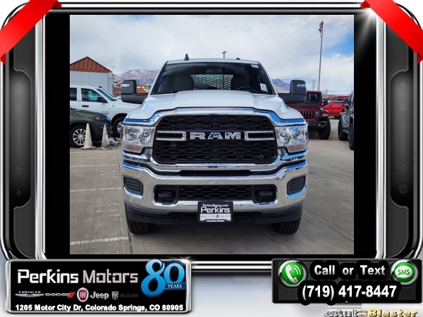 Factory MSRP: $71,440 Bright White Clearcoat 2024 Ram 3500 Tradesman 4WD Aisin 6-Speed Automatic 6.7L I6<br>KNAPHEIDE PGTD.<br>Check us out at www.perkinsmotors.com to see our specials! Since opening our doors in 1944, we’ve been proud to serve Colorado Springs, CO, and the surrounding areas of Pueblo, Castle Rock and Denver, CO. Throughout this time of being family owned for 80 years, we’ve maintained a firm commitment to our customers: to offer a wide selection of New Chrysler, Dodge, Fiat, Jeep, and Ram vehicles and quality pre-owned vehicles, and provide a quick, no-hassle car-buying process that ensures everyone drives off the lot satisfied with their purchase.<br><br>Chrome Appearance Group (Bright Front Bumper, Bright Rear Bumper, Center Hub, Chrome Grille Surround, and Matte Black Mesh w/Chrome Grille), Heavy Duty Snow Plow Prep Group (220 Amp Alternator), Protection Group, Quick Order Package 21A Tradesman, Tradesman Level 1 Equipment Group, 2 Way Rear Headrest Seat, 3.73 Axle Ratio, 4 Way Front Headrests, 4-Wheel Disc Brakes, 40/20/40 Split Bench Seat, 6 Speakers, ABS brakes, Active Noise Control System, Air Conditioning, AM/FM radio, Auto Power-Folding Mirrors, Black Exterior Mirrors, Brake assist, Compass, Cruise Control, Dash Pass Thru Wire Circuits, Delay-off headlights, Driver door bin, Dual front impact airbags, Dual front side impact airbags, Electric Shift-On-The-Fly Transfer Case, Electronic Stability Control, Electronically Controlled Throttle, Emergency communication system: SiriusXM Guardian, Exterior Mirrors Courtesy Lamps, Exterior Mirrors w/Heating Element, Exterior Mirrors w/Supplemental Signals, For Details Visit DriveUconnect.com, Forward & Reverse Utility Lights, Front anti-roll bar, Front Armrest w/Cupholders, Front Center Armrest w/Storage, Front License Plate Bracket, Front reading lights, Fully automatic headlights, Global Telematics Box Module (TBM), GPS Antenna Input, HD Vinyl 40/20/40 Split Bench Seat, I/P Mounted Auxiliary Switches, Illuminated entry, Integrated Center Stack Radio, Integrated Voice Command w/Bluetooth, Low tire pressure warning, Manual Adjust 4-Way Driver Seat, Manual Adjust 4-Way Front Passenger Seat, Manual Folding Exterior Mirrors, Manual Telescoping Mirrors, Manufacturer's Statement of Origin, Mirror Running Lights, Occupant sensing airbag, Outside temperature display, Overhead airbag, Overhead console, ParkView Rear Back-Up Camera, Passenger door bin, Passenger vanity mirror, Power Adjust Mirrors, Power Heated Fold Telescopic Mirrors, Power steering, Power Telescoping Mirrors, Power windows, Power-Adjustable Convex Aux Mirrors, Radio data system, Radio: Uconnect 3 w/5 Display, Radio: Uconnect 5 w/8.4 Display, Rear Folding Seat, Rear step bumper, Remote USB Port - Charge Only, SiriusXM Radio Service, Storage Tray, Tachometer, Tilt steering wheel, Tip Start, Traction control, Trailer Brake Control, Trailer Light Check, Variably intermittent wipers, Voltmeter, Wheels: 18 x 8.0 Steel, and Wheels: 18 x 8.0 Steel Chrome ClaD. Sale price includes all manufacture's incentives and dealer discounts. Sale price not available on lease or compatible with special APR. $1000 - 2024 Bonus Cash . Exp. 02/03/2025 $2000 - 2024 West BC Bonus Cash . Exp. 02/03/2025 Price includes $16,995 in dealer added accessories.