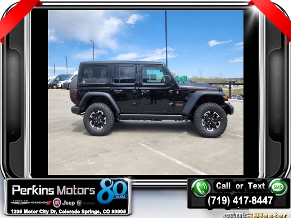 Factory MSRP: $66,730 $14,000 off MSRP! Black Clearcoat 2024 Jeep Wrangler Rubicon 4WD 8-Speed Automatic 3.6L V6 24V VVT<br><br>Check us out at www.perkinsmotors.com to see our specials! Since opening our doors in 1944, we’ve been proud to serve Colorado Springs, CO, and the surrounding areas of Pueblo, Castle Rock and Denver, CO. Throughout this time of being family owned for 80 years, we’ve maintained a firm commitment to our customers: to offer a wide selection of New Chrysler, Dodge, Fiat, Jeep, and Ram vehicles and quality pre-owned vehicles, and provide a quick, no-hassle car-buying process that ensures everyone drives off the lot satisfied with their purchase.<br><br>Convenience Group (Heated Steering Wheel), Quick Order Package 24R Rubicon, 12.3 Touchscreen Display, 4-Wheel Disc Brakes, 4.10 Rear Axle Ratio, 8 Speakers, 97 MPH Vehicle Max Speed Calibration, ABS brakes, Air Conditioning, Alloy wheels, AM/FM radio: SiriusXM, Apple CarPlay, Apple CarPlay/Android Auto, Automatic temperature control, Aux Battery, Brake assist, Cloth Low-Back Bucket Seats, Compass, Connectivity - US/Canada, Cruise Control, Delay-off headlights, Disassociated Touchscreen Display, Driver door bin, Driver vanity mirror, Dual front impact airbags, Dual front side impact airbags, Electronic Stability Control, Emergency communication system: Jeep Connect, Front anti-roll bar, Front Bucket Seats, Front Center Armrest w/Storage, Front dual zone A/C, Front fog lights, Front License Plate Bracket, Front reading lights, Fully automatic headlights, Google Android Auto, Heated door mirrors, Illuminated entry, Integrated Center Stack Radio, Integrated roll-over protection, Integrated Voice Command w/Bluetooth, Jeep Trail Rated Kit, Low tire pressure warning, MOPAR All-Weather Floor Mats, Non-Lock Fuel Cap w/o Discriminator, Occupant sensing airbag, Outside temperature display, Overhead airbag, Panic alarm, ParkView Rear Back-Up Camera, Passenger door bin, Passenger vanity mirror, Performance Suspension, Power door mirrors, Power steering, Power windows, Radio data system, Radio: Uconnect 5 w/12.3 Display, Rear anti-roll bar, Rear reading lights, Remote keyless entry, Security system, Sky 1-Touch Power Top, Split folding rear seat, Steering wheel mounted audio controls, Stop-Start Dual Battery System, Tachometer, Telescoping steering wheel, Tilt steering wheel, Traction control, Trip computer, Variably intermittent wipers, Voltmeter, Wheels: 17 x 7.5 Machined w/Black Pockets, and Wheels: 17 x 7.5 Machined/Painted Black. Sale price includes all manufacture's incentives and dealer discounts. Sale price not available on lease or compatible with special APR. $3000 - 2024 Bonus Cash . Exp. 10/31/2024