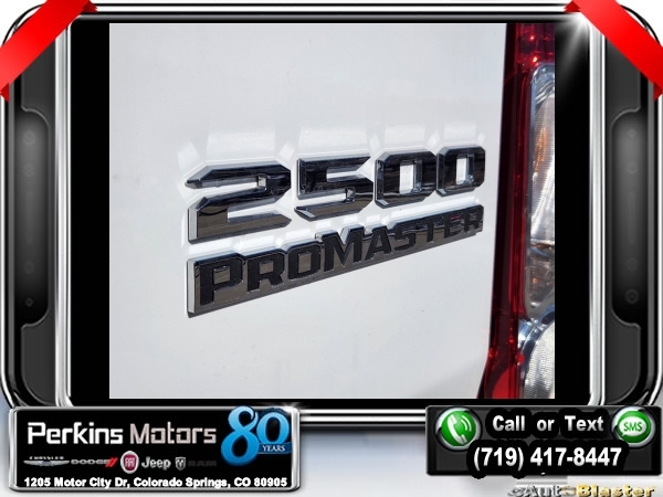 Factory MSRP: $54,340 $3,005 off MSRP! Bright White Clearcoat 2024 Ram ProMaster 2500 High Roof FWD 9-Speed 948TE Automatic 3.6L V6 24V VVT<br>MOBILE SERVICE & PLUMBING VAN SHELVING PACKAGE WITH STABILIGRIP FLOORING.<br>Check us out at www.perkinsmotors.com to see our specials! Since opening our doors in 1944, we’ve been proud to serve Colorado Springs, CO, and the surrounding areas of Pueblo, Castle Rock and Denver, CO. Throughout this time of being family owned for 80 years, we’ve maintained a firm commitment to our customers: to offer a wide selection of New Chrysler, Dodge, Fiat, Jeep, and Ram vehicles and quality pre-owned vehicles, and provide a quick, no-hassle car-buying process that ensures everyone drives off the lot satisfied with their purchase.<br><br>Quick Order Package 22B Tradesman w/Pass Seat (4-Way Manual Adjust Front Passenger Seat and Passenger Bucket Seat), Upfitter's Prep Package (Auxiliary Switches and Upfitter Electronic Module (VSIM)), 4 Speakers, 4-Wheel Disc Brakes, 4.08 Axle Ratio, ABS brakes, Air Conditioning, AM/FM radio: SiriusXM, Apple CarPlay/Android Auto, Black/Gray Seats, Bodyside moldings, Brake assist, Cloth Bucket Seats, Driver door bin, Driver Seat Armrest, Driver's Seat Mounted Armrest, Electronic Stability Control, Exterior Mirrors w/Supplemental Signals, Front anti-roll bar, Front Bucket Seats, Front License Plate Bracket, Front reading lights, Front wheel independent suspension, Heavy Duty Suspension, Illuminated entry, Low tire pressure warning, Manufacturer's Statement of Origin, Outside temperature display, Overhead airbag, Overhead console, ParkView Rear Back-Up Camera, Passenger door bin, Passenger Double Seat, Power steering, Power windows, Radio: Uconnect 5 w/7 Display, Remote keyless entry, Steering wheel mounted audio controls, Tachometer, Telescoping steering wheel, Traction control, Trip computer, Turn signal indicator mirrors, Variably intermittent wipers, Wheel Center Cap, and Wheels: 16 x 6.0 Steel. Sale price includes all manufacture's incentives and dealer discounts. Sale price not available on lease or compatible with special APR. $5000 - 2024 Bonus Cash . Exp. 01/02/2025 $1,000 - Exp. 01/02/2025 Price includes $7,995 in dealer added accessories.