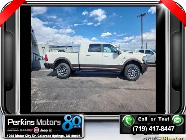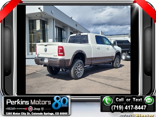 Factory MSRP: $99,925 $8,000 off MSRP! Pearl White 2024 Ram 3500 Laramie Longhorn 4WD Aisin 6-Speed Automatic I6<br><br>Check us out at www.perkinsmotors.com to see our specials! Since opening our doors in 1944, we’ve been proud to serve Colorado Springs, CO, and the surrounding areas of Pueblo, Castle Rock and Denver, CO. Throughout this time of being family owned for 80 years, we’ve maintained a firm commitment to our customers: to offer a wide selection of New Chrysler, Dodge, Fiat, Jeep, and Ram vehicles and quality pre-owned vehicles, and provide a quick, no-hassle car-buying process that ensures everyone drives off the lot satisfied with their purchase.<br><br>Longhorn Level 1 Equipment Group (12 Touchscreen Display, 4G LTE Wi-Fi Hot Spot, Alexa Built-In, Apple CarPlay, Blind Spot & Cross Path Detection, Connected Travel & Traffic Services, Connectivity - US/Canada, Disassociated Touchscreen Display, For Details Visit DriveUconnect.com, For More Info, Call 800-643-2112, Global Telematics Box Module (TBM), Google Android Auto, GPS Antenna Input, GPS Navigation, HD Radio, Integrated Voice Command w/Bluetooth, LED Bed Lighting, MOPAR Spray In Bedliner, Off-Road Information Pages, Power Deployable Running Boards, Ramcharger Wireless Charging Pad, Selectable Tire Fill Alert, SiriusXM Radio Service, SiriusXM w/360L, and Trailer Tow Pages), Protection Group, Quick Order Package 21K Longhorn, Safety Group (Adaptive Cruise Control w/Stop, Adaptive Steering System, Full Speed Forward Collision Warning Plus, and Lane Keep Assist), Snow Chief Group (Auxiliary Switches Prep, Clearance Lamps, Dash Pass Thru Wire Circuits, and I/P Mounted Auxiliary Switches), Towing Technology Group (Center Stop Lamp w/Cargo View Camera, Surround View Camera System, and Trailer Reverse Guidance), 10 Speakers, 115V Auxiliary Rear Power Outlet, 2 Way Rear Headrest Seat, 220 Amp Alternator, 3.73 Axle Ratio, 4 Way Front Headrests, 4-Wheel Disc Brakes, 5th Wheel/Gooseneck Towing Prep Group, ABS brakes, Active Noise Control System, Adjustable pedals, Air Conditioning, Alloy wheels, AM/FM radio: SiriusXM with 360L, Apple CarPlay/Android Auto, Audio memory, Auto High-beam Headlights, Auto Level Rear Air Suspension, Auto-dimming door mirrors, Auto-dimming Rear-View mirror, Automatic temperature control, Brake assist, Bucket Seats, Bumpers: body-color, Center Hub, Compass, Cruise Control, Delay-off headlights, Driver door bin, Driver vanity mirror, Dual Alternators Rated At 440 Amps, Dual front impact airbags, Dual front side impact airbags, Electronic Stability Control, Electronically Controlled Throttle, Front anti-roll bar, Front Bucket Seats, Front Center Armrest w/Storage, Front dual zone A/C, Front fog lights, Front License Plate Bracket, Front reading lights, Front Seat Back Map Pockets, Full Length Premium Upgraded Floor Console, Fully automatic headlights, Garage door transmitter, Genuine wood console insert, Genuine wood dashboard insert, Genuine wood door panel insert, Heated door mirrors, Heated Front Seats, Heated front seats, Heated rear seats, Heated Second Row Seats, Heated Steering Wheel, Heated steering wheel, High Back Seats, Illuminated entry, Leather steering wheel, Low tire pressure warning, Manufacturer's Statement of Origin, Memory seat, MOPAR Deployable Bed Step, MOPAR Front & Rear Rubber Floor Mats, Navigation System, Occupant sensing airbag, Outside temperature display, Overhead airbag, Overhead console, Panic alarm, ParkView Rear Back-Up Camera, Passenger door bin, Passenger vanity mirror, Pedal memory, Power 2-Way Driver Lumbar Adjust, Power 2-Way Passenger Lumbar Adjust, Power 8-Way Adjustable Passenger Seat, Power Adjust 8-Way Driver Seat, Power door mirrors, Power driver seat, Power passenger seat, Power steering, Power Sunroof, Power windows, Premium Filigree Leather Seats, Radio data system, Radio/Driver Seat/Mirrors/Pedals Memory, Rain sensing wipers, Rear 60/40 Folding Seat, Rear reading lights, Rear seat center armrest,