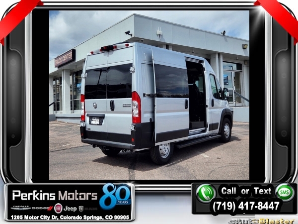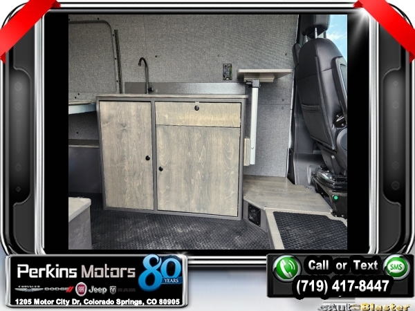 Factory MSRP: $53,385 Bright Silver Metallic Clearcoat 2023 Ram ProMaster 1500 Aerie FWD 9-Speed 948TE Automatic 3.6L V6 24V VVT<br>Aerie Camper Van Conversion.<br>Check us out at www.perkinsmotors.com to see our specials! Since opening our doors in 1944, we’ve been proud to serve Colorado Springs, CO, and the surrounding areas of Pueblo, Castle Rock and Denver, CO. Throughout this time of being family owned for 80 years, we’ve maintained a firm commitment to our customers: to offer a wide selection of New Chrysler, Dodge, Fiat, Jeep, and Ram vehicles and quality pre-owned vehicles, and provide a quick, no-hassle car-buying process that ensures everyone drives off the lot satisfied with their purchase.<br><br>Driver Convenience Group (A) (DISC) (Blind Spot & Cross Path Detection, Front Fog Lamps, Power Folding/Heated Mirrors, Remote Start System, and Surround View Camera System), Premium Convenience Group (B) (Auto High Beam Headlamp Control, Automatic Headlamps, Cluster 7.0 TFT Color Display, Global Telematics Box Module (TBM), Radio: Uconnect 5 Nav w/10.1 Display, Rain Sensitive Windshield Wipers, Traffic Sign Information, and Wireless Charging Pad), Quick Order Package 22A, 12V Rear Auxiliary Power Outlet, 220 Amp Alternator, 4 Speakers, 4-Wheel Disc Brakes, 4.08 Axle Ratio, 6-Way Manual Adjust Driver Seat, 6-Way Manual Adjust Front Passenger Seat, ABS brakes, Air Conditioning, AM/FM radio: SiriusXM, Apple CarPlay/Android Auto, Black/Gray Seats, Bodyside moldings, Brake assist, Center Wheel Cap, Class IV Receiver Hitch, Cloth Bucket Seats, Deep Tint Sunscreen Glass, Driver door bin, Driver Seat Armrest, Driver Swivel Seat, Driver's Seat Mounted Armrest, Electronic Stability Control, Front anti-roll bar, Front Bucket Seats, Front License Plate Bracket, Front reading lights, Front wheel independent suspension, Illuminated entry, Low tire pressure warning, Manual 2-Way Driver Lumbar Adjust, Manual 2-Way Passenger Lumbar Adjust, Manual Folding Exterior Mirrors, Manufacturer's Statement of Origin, Medium Duty Suspension, Outside temperature display, Overhead airbag, ParkView Rear Back-Up Camera, Passenger Bucket Seat, Passenger door bin, Passenger Seat Armrest, Passenger Sliding Door w/Window (Polycarb), Passenger Swivel Seat, Power steering, Power windows, Radio: Uconnect 5 w/7 Display, Rear Hinged Doors w/Fixed Glass, Rear View Day/Night Mirror, Rear Window Defroster, Remote keyless entry, Speed Control, Steering wheel mounted audio controls, Tachometer, Telescoping steering wheel, Traction control, Trip computer, Turn signal indicator mirrors, Variably intermittent wipers, and Wheels: 16 x 6.0 Steel. Price includes $25,995 in dealer added accessories.