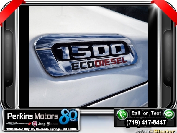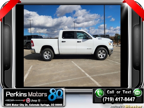 Factory MSRP: $61,630 $15,000 off MSRP! Priced below KBB Fair Purchase Price! Bright White Clearcoat 2023 Ram 1500 Big Horn/Lone Star 4WD 8-Speed Automatic EcoDiesel 3.0L V6<br><br>Check us out at www.perkinsmotors.com to see our specials! Since opening our doors in 1944, we’ve been proud to serve Colorado Springs, CO, and the surrounding areas of Pueblo, Castle Rock and Denver, CO. Throughout this time of being family owned for 80 years, we’ve maintained a firm commitment to our customers: to offer a wide selection of New Chrysler, Dodge, Fiat, Jeep, and Ram vehicles and quality pre-owned vehicles, and provide a quick, no-hassle car-buying process that ensures everyone drives off the lot satisfied with their purchase.<br><br>Big Horn Level B Equipment Group (115V Auxiliary Power Outlet, 12 Touchscreen Display, 2nd Row In Floor Storage Bins, 400W Inverter, 4G LTE Wi-Fi Hot Spot, 9 Amplified Speakers w/Subwoofer, Air Conditioning ATC w/Dual Zone Control, All R1 High Radios, All Radio Equipped Vehicles, Apple CarPlay, Auto-Dimming Exterior Driver Mirror, Auto-Dimming Rear-View Mirror, Black Exterior Mirrors, Black Premium Power Mirrors, Class IV Receiver Hitch, Cluster 7.0 TFT Color Display, Connected Travel & Traffic Services, Connectivity - US/Canada, Convex Wide-Angle Exterior Mirror Insert, Disassociated Touchscreen Display, Exterior Mirrors Courtesy Lamps, Exterior Mirrors w/Heating Element, Exterior Mirrors w/Supplemental Signals, For Details, Visit DriveUconnect.com, For More Info, Call 800-643-2112, Front Fog Lamps, Global Telematics Box Module (TBM), Glove Box Lamp, Google Android Auto, GPS Antenna Input, GPS Navigation, HD Radio, Heated Front Seats, Heated Steering Wheel, Integrated Center Stack Radio, Integrated Voice Command w/Bluetooth, LED Footwell Lighting, Media Hub w/2 Charge Only USBs, ParkSense Front/Rear Park Assist w/Stop, Power 2-Way Driver Lumbar Adjust, Power 8-Way Driver Seat, Power Adjustable Pedals, Power-Folding Mirrors, Radio: Uconnect 5 Nav w/12.0 Display, Rear Dome w/On/Off Switch Lamp, Rear Power Sliding Window, Rear Window Defroster, Remote Start System, Security Alarm, SiriusXM Radio Service, SiriusXM Satellite Radio, SiriusXM w/360L, Sun Visors w/Illuminated Vanity Mirrors, Universal Garage Door Opener, and USB Host Flip), 3 Rear Seat Head Restraints, 3.21 Rear Axle Ratio, 4 Way Front Headrests, 4-Wheel Disc Brakes, 48V Belt Starter Generator, 6 Speakers, ABS brakes, Air Conditioning, Alloy wheels, AM/FM radio, Big Horn Badge, Brake assist, Bumpers: chrome, Cloth Bench Seat, Compass, Cruise Control, Delay-off headlights, Driver door bin, Dual front impact airbags, Dual front side impact airbags, Electronic Stability Control, Emergency communication system: SiriusXM Guardian, Front anti-roll bar, Front Center Armrest w/Storage, Front License Plate Bracket, Front reading lights, Front Seat Back Map Pockets, Front wheel independent suspension, Fully automatic headlights, Heated door mirrors, Illuminated entry, Leather steering wheel, Low tire pressure warning, Manufacturer's Statement of Origin, MOPAR Front & Rear Rubber Floor Mats, Occupant sensing airbag, Outside temperature display, Overhead airbag, Overhead console, Panic alarm, ParkView Rear Back-Up Camera, Passenger door bin, Passenger vanity mirror, Power door mirrors, Power steering, Power windows, Radio data system, Radio: Uconnect 3 w/5 Display, RAM Grille Badge - Chrome, Rear 60/40 Folding Seat, Rear anti-roll bar, Rear seat center armrest, Rear step bumper, Rear Wheelhouse Liners, Remote keyless entry, Split folding rear seat, Steering wheel mounted audio controls, Tachometer, Telescoping steering wheel, Tilt steering wheel, Traction control, Trailer Brake Control, Trip computer, Variably intermittent wipers, Voltmeter, and Wheels: 18 x 8 Cast-Aluminum PainteD.<br><br>21/29 City/Highway MPG