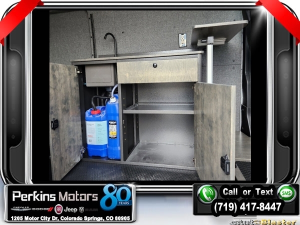 Factory MSRP: $53,385 Bright Silver Metallic Clearcoat 2023 Ram ProMaster 1500 FWD 9-Speed 948TE Automatic 3.6L V6 24V VVT<br>Aerie Camper Van Kit.<br>Check us out at www.perkinsmotors.com to see our specials! Since opening our doors in 1944, we’ve been proud to serve Colorado Springs, CO, and the surrounding areas of Pueblo, Castle Rock and Denver, CO. Throughout this time of being family owned for 80 years, we’ve maintained a firm commitment to our customers: to offer a wide selection of New Chrysler, Dodge, Fiat, Jeep, and Ram vehicles and quality pre-owned vehicles, and provide a quick, no-hassle car-buying process that ensures everyone drives off the lot satisfied with their purchase.<br><br>Driver Convenience Group (A) (DISC) (Blind Spot & Cross Path Detection, Front Fog Lamps, Power Folding/Heated Mirrors, Remote Start System, and Surround View Camera System), Premium Convenience Group (B) (Auto High Beam Headlamp Control, Automatic Headlamps, Cluster 7.0 TFT Color Display, Global Telematics Box Module (TBM), Radio: Uconnect 5 Nav w/10.1 Display, Rain Sensitive Windshield Wipers, Traffic Sign Information, and Wireless Charging Pad), Quick Order Package 22A, 12V Rear Auxiliary Power Outlet, 220 Amp Alternator, 4 Speakers, 4-Wheel Disc Brakes, 4.08 Axle Ratio, 6-Way Manual Adjust Driver Seat, 6-Way Manual Adjust Front Passenger Seat, ABS brakes, Air Conditioning, AM/FM radio: SiriusXM, Apple CarPlay/Android Auto, Black/Gray Seats, Bodyside moldings, Brake assist, Center Wheel Cap, Class IV Receiver Hitch, Cloth Bucket Seats, Deep Tint Sunscreen Glass, Driver door bin, Driver Seat Armrest, Driver Swivel Seat, Driver's Seat Mounted Armrest, Electronic Stability Control, Front anti-roll bar, Front Bucket Seats, Front License Plate Bracket, Front reading lights, Front wheel independent suspension, Illuminated entry, Low tire pressure warning, Manual 2-Way Driver Lumbar Adjust, Manual 2-Way Passenger Lumbar Adjust, Manual Folding Exterior Mirrors, Manufacturer's Statement of Origin, Medium Duty Suspension, Outside temperature display, Overhead airbag, ParkView Rear Back-Up Camera, Passenger Bucket Seat, Passenger door bin, Passenger Seat Armrest, Passenger Sliding Door w/Window (Polycarb), Passenger Swivel Seat, Power steering, Power windows, Radio: Uconnect 5 w/7 Display, Rear Hinged Doors w/Fixed Glass, Rear View Day/Night Mirror, Rear Window Defroster, Remote keyless entry, Speed Control, Steering wheel mounted audio controls, Tachometer, Telescoping steering wheel, Traction control, Trip computer, Turn signal indicator mirrors, Variably intermittent wipers, and Wheels: 16 x 6.0 Steel. Price includes $25,995 in dealer added accessories.