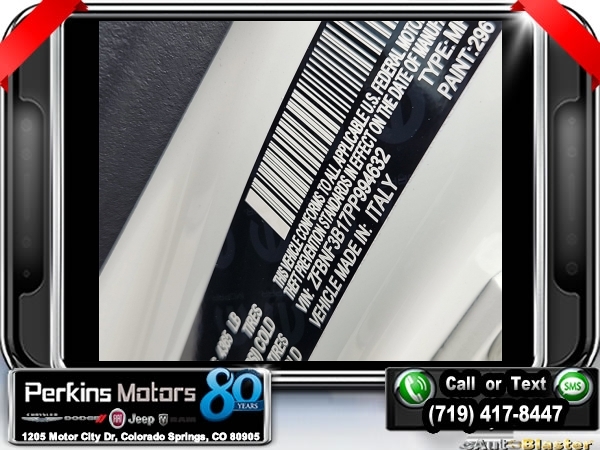 Factory MSRP: $36,290 $11,000 off MSRP! Priced below KBB Fair Purchase Price! Bianco Gelato (White Clearcoat) 2023 Fiat 500X Sport AWD 9-Speed 948TE Automatic 1.3L I4<br><br>Check us out at www.perkinsmotors.com to see our specials! Since opening our doors in 1944, we’ve been proud to serve Colorado Springs, CO, and the surrounding areas of Pueblo, Castle Rock and Denver, CO. Throughout this time of being family owned for 80 years, we’ve maintained a firm commitment to our customers: to offer a wide selection of New Chrysler, Dodge, Fiat, Jeep, and Ram vehicles and quality pre-owned vehicles, and provide a quick, no-hassle car-buying process that ensures everyone drives off the lot satisfied with their purchase.<br><br>MOPAR All Weather Package - Plus (MOPAR Cargo Area Slush Mat, MOPAR Front & Rear Slush Mats, MOPAR Front Splash Guards w/o Logo, MOPAR Rear Splash Guards w/Logo, and MOPAR Wheel Locks), 3.734 Final Drive Ratio, 4-Wheel Disc Brakes, 6 Speakers, ABS brakes, Air Conditioning, Al Fresco Top, Alloy wheels, AM/FM radio: SiriusXM, Anti-whiplash front head restraints, Auto-dimming Rear-View mirror, Black SoftTop, Brake assist, Bumpers: body-color, Compass, Cruise Control, Delay-off headlights, Driver door bin, Driver vanity mirror, Dual front impact airbags, Dual front side impact airbags, Electronic Stability Control, Four wheel independent suspension, Front anti-roll bar, Front Bucket Seats, Front Center Armrest, Front fog lights, Front reading lights, Fully automatic headlights, Heated door mirrors, Heated front seats, Illuminated entry, Knee airbag, Leather steering wheel, Low tire pressure warning, Manufacturer's Statement of Origin, Monogrammed Cloth Bucket Seats, Occupant sensing airbag, Outside temperature display, Overhead airbag, Overhead console, Panic alarm, ParkSense Front Park Assist System, ParkView Rear Back-Up Camera, Passenger door bin, Passenger vanity mirror, Power door mirrors, Power steering, Power windows, Premium audio system: Uconnect 4, Radio data system, Radio: Uconnect 4 w/7 Display, Rain sensing wipers, Rear anti-roll bar, Rear window defroster, Rear window wiper, Remote keyless entry, Security system, Speed-sensing steering, Split folding rear seat, Spoiler, Steering wheel mounted audio controls, Tachometer, Telescoping steering wheel, Tilt steering wheel, Traction control, Trip computer, Turn signal indicator mirrors, Variably intermittent wipers, and Wheels: 17 x 7.0 Silver Aluminum.<br><br>24/30 City/Highway MPG Sale price includes all manufacture's incentives and dealer discounts. Sale price not available on lease or compatible with special APR. 20% Msrp - 2023 National Standalone 20% Below MSRP (1/B) . Exp. 09/30/2024