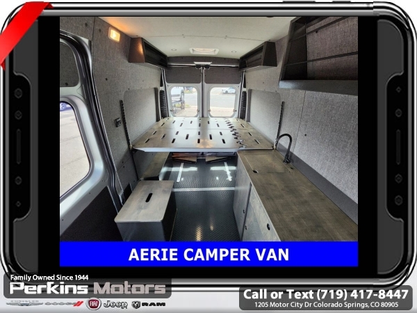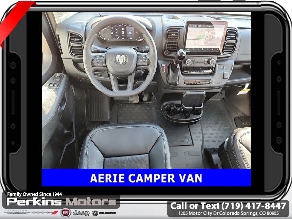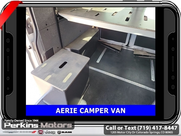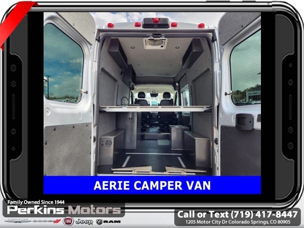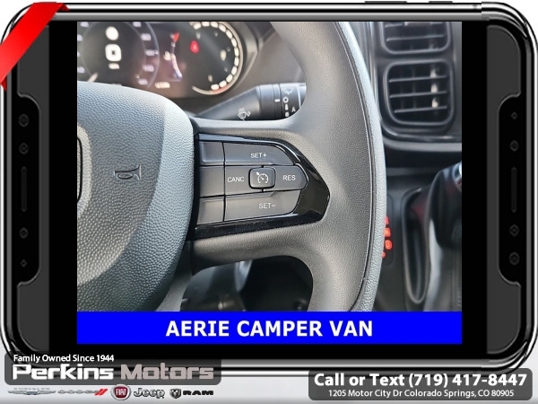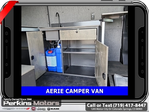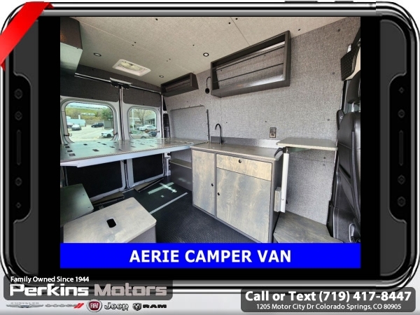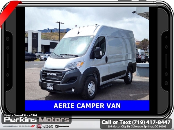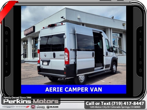 Factory MSRP: $59,295 Bright Silver Metallic Clearcoat 2023 Ram ProMaster 2500 Camper Van FWD 9-Speed 948TE Automatic 3.6L V6 24V VVT<br><br>Check us out at www.perkinsmotors.com to see our specials! Since opening our doors in 1944, we’ve been proud to serve Colorado Springs, CO, and the surrounding areas of Pueblo, Castle Rock and Denver, CO. Throughout this time of being family owned for 80 years, we’ve maintained a firm commitment to our customers: to offer a wide selection of New Chrysler, Dodge, Fiat, Jeep, and Ram vehicles and quality pre-owned vehicles, and provide a quick, no-hassle car-buying process that ensures everyone drives off the lot satisfied with their purchase.<br><br>Premium Convenience Group (B) (Auto High Beam Headlamp Control, Automatic Headlamps, Cluster 7.0 TFT Color Display, Global Telematics Box Module (TBM), Radio: Uconnect 5 Nav w/10.1 Display, Rain Sensitive Windshield Wipers, Traffic Sign Information, and Wireless Charging Pad), Quick Order Package 22A, Safety Group (A) (Blind Spot & Cross Path Detection, Daytime Running Headlamps, Front Fog Lamps, and Power Folding/Heated Mirrors), 12V Rear Auxiliary Power Outlet, 220 Amp Alternator, 4 Speakers, 4-Wheel Disc Brakes, 4.08 Axle Ratio, 6-Way Manual Adjust Driver Seat, 6-Way Manual Adjust Front Passenger Seat, ABS brakes, Air Conditioning, AM/FM radio: SiriusXM, Apple CarPlay/Android Auto, Black Seats, Black/Gray Seats, Bodyside moldings, Brake assist, Center Wheel Cap, Class IV Receiver Hitch, Cloth Bucket Seats, Deep Tint Sunscreen Glass, Driver door bin, Driver Seat Armrest, Driver Swivel Seat, Driver's Seat Mounted Armrest, Electronic Stability Control, Front anti-roll bar, Front Bucket Seats, Front License Plate Bracket, Front reading lights, Front wheel independent suspension, Heavy Duty Suspension, Illuminated entry, Low tire pressure warning, Manual 2-Way Driver Lumbar Adjust, Manual 2-Way Passenger Lumbar Adjust, Manual Folding Exterior Mirrors, Manufacturer's Statement of Origin, Outside temperature display, Overhead airbag, Overhead console, ParkView Rear Back-Up Camera, Passenger Bucket Seat, Passenger door bin, Passenger Seat Armrest, Passenger Sliding Door w/Window (Polycarb), Passenger Swivel Seat, Power steering, Power windows, Radio: Uconnect 5 w/7 Display, Rear Hinged Doors w/Fixed Glass, Rear View Day/Night Mirror, Rear Window Defroster, Remote keyless entry, Remote Start System, Speed Control, Steering wheel mounted audio controls, Tachometer, Telescoping steering wheel, Traction control, Trip computer, Turn signal indicator mirrors, Variably intermittent wipers, and Wheels: 16 x 6.0 Steel. Price includes $25,995 in dealer added accessories.