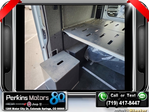 Factory MSRP: $53,185 Bright White Clearcoat 2023 Ram ProMaster 1500 AERIE VAN FWD 9-Speed 948TE Automatic 3.6L V6 24V VVT<br>Aerie Camper Van Conversion.<br>Check us out at www.perkinsmotors.com to see our specials! Since opening our doors in 1944, we’ve been proud to serve Colorado Springs, CO, and the surrounding areas of Pueblo, Castle Rock and Denver, CO. Throughout this time of being family owned for 80 years, we’ve maintained a firm commitment to our customers: to offer a wide selection of New Chrysler, Dodge, Fiat, Jeep, and Ram vehicles and quality pre-owned vehicles, and provide a quick, no-hassle car-buying process that ensures everyone drives off the lot satisfied with their purchase.<br><br>Driver Convenience Group (A) (DISC) (Blind Spot & Cross Path Detection, Front Fog Lamps, Power Folding/Heated Mirrors, Remote Start System, and Surround View Camera System), Premium Convenience Group (B) (Auto High Beam Headlamp Control, Automatic Headlamps, Cluster 7.0 TFT Color Display, Global Telematics Box Module (TBM), Radio: Uconnect 5 Nav w/10.1 Display, Rain Sensitive Windshield Wipers, Traffic Sign Information, and Wireless Charging Pad), Quick Order Package 22A, 12V Rear Auxiliary Power Outlet, 220 Amp Alternator, 4 Speakers, 4-Wheel Disc Brakes, 4.08 Axle Ratio, 6-Way Manual Adjust Driver Seat, 6-Way Manual Adjust Front Passenger Seat, ABS brakes, Air Conditioning, AM/FM radio: SiriusXM, Apple CarPlay/Android Auto, Black/Gray Seats, Bodyside moldings, Brake assist, Center Wheel Cap, Class IV Receiver Hitch, Cloth Bucket Seats, Deep Tint Sunscreen Glass, Driver door bin, Driver Seat Armrest, Driver Swivel Seat, Driver's Seat Mounted Armrest, Electronic Stability Control, Front anti-roll bar, Front Bucket Seats, Front License Plate Bracket, Front reading lights, Front wheel independent suspension, Illuminated entry, Low tire pressure warning, Manual 2-Way Driver Lumbar Adjust, Manual 2-Way Passenger Lumbar Adjust, Manual Folding Exterior Mirrors, Manufacturer's Statement of Origin, Medium Duty Suspension, Outside temperature display, Overhead airbag, ParkView Rear Back-Up Camera, Passenger Bucket Seat, Passenger door bin, Passenger Seat Armrest, Passenger Sliding Door w/Window (Polycarb), Passenger Swivel Seat, Power steering, Power windows, Radio: Uconnect 5 w/7 Display, Rear Hinged Doors w/Fixed Glass, Rear View Day/Night Mirror, Rear Window Defroster, Remote keyless entry, Steering wheel mounted audio controls, Tachometer, Telescoping steering wheel, Traction control, Trip computer, Turn signal indicator mirrors, Variably intermittent wipers, and Wheels: 16 x 6.0 Steel. Sale price includes all manufacture's incentives and dealer discounts. Sale price not available on lease or compatible with special APR. $2000 - 2023 Bonus Cash. Exp. 09/30/2024 $5,000 - Exp. 09/30/2024 Price includes $25,995 in dealer added accessories.