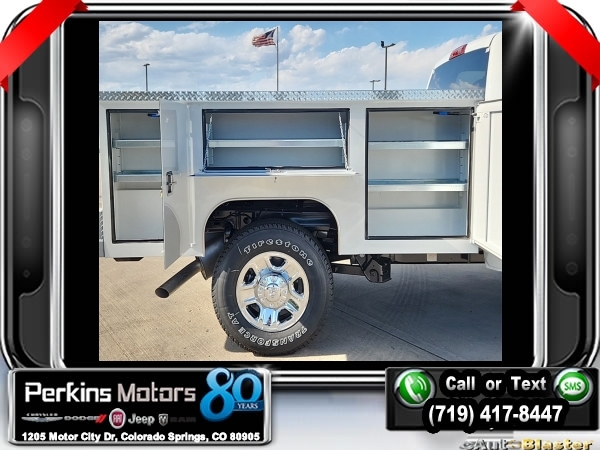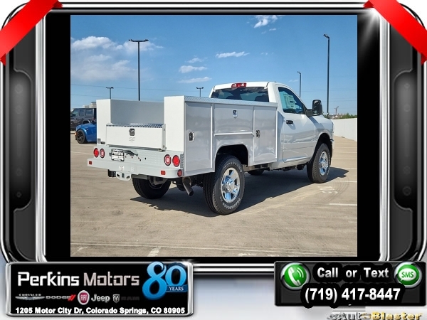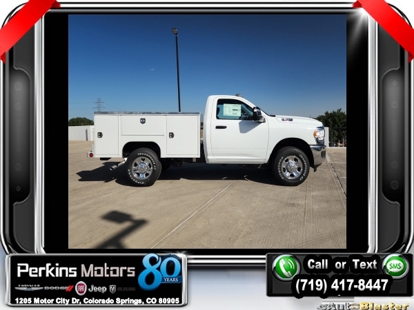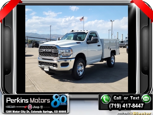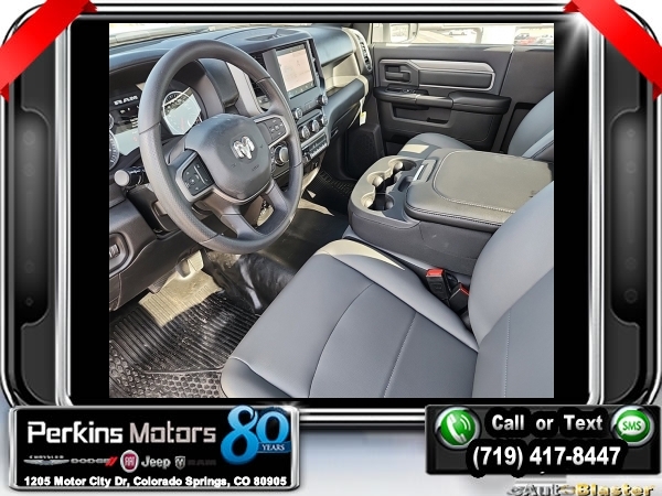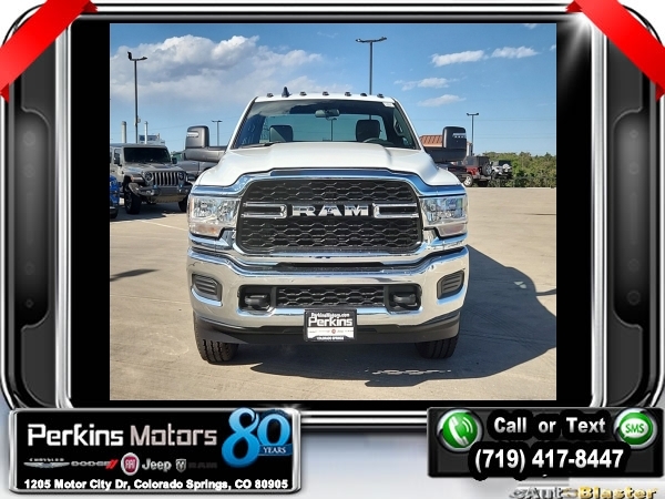 Factory MSRP: $57,760 Bright White Clearcoat 2023 Ram 2500 Tradesman 4WD 8-Speed Automatic 6.4L V8<br>Scelzi Servicve Body.<br>Check us out at www.perkinsmotors.com to see our specials! Since opening our doors in 1944, we’ve been proud to serve Colorado Springs, CO, and the surrounding areas of Pueblo, Castle Rock and Denver, CO. Throughout this time of being family owned for 80 years, we’ve maintained a firm commitment to our customers: to offer a wide selection of New Chrysler, Dodge, Fiat, Jeep, and Ram vehicles and quality pre-owned vehicles, and provide a quick, no-hassle car-buying process that ensures everyone drives off the lot satisfied with their purchase.<br><br>Chrome Appearance Group (Bright Front Bumper, Bright Rear Bumper, Center Hub, Chrome Grille Surround, Chrome Headlamp Bezels, Matte Black Mesh w/Chrome Grille, and Wheels: 18 x 8.0 Steel Chrome Clad), Protection Group, Quick Order Package 2GA Tradesman, Snow Chief Group (Anti-Spin Differential Rear Axle and Clearance Lamps), Tradesman Level 1 Equipment Group (Black Exterior Mirrors, Exterior Mirrors Courtesy Lamps, Exterior Mirrors w/Heating Element, Exterior Mirrors w/Supplemental Signals, Front 1-Touch Down Power Windows, Manual Folding Exterior Mirrors, Manual Telescoping Mirrors, Mirror Running Lights, Overhead Console, Overhead Cupholder Lamp, Power Adjust Mirrors, Power Heated Folding Telescopic Mirrors, Power-Adjustable Convex Aux Mirrors, Remote Keyless Entry, Speed Sensitive Power Locks, and Upgraded Door Trim Panel), 115V Auxiliary Front Power Outlet, 17 x 7.5 Steel Styled Wheels, 2-Way Front Head Restraints, 220 Amp Alternator, 3.73 Axle Ratio, 4 Speakers, 4-Wheel Disc Brakes, 4.10 Axle Ratio, 40/20/40 Split Bench Seat, 400W Inverter, 4G LTE Wi-Fi Hot Spot, 8.4 Touchscreen Display, ABS brakes, Air Conditioning, Alexa Built-In, All R1 Low Radios, All Radio Equipped Vehicles, AM/FM radio, Apple CarPlay, Auto Power-Folding Mirrors, Bluetooth Handsfree Phone & Audio, Brake assist, Compass, Connectivity - US/Canada, Cruise Control, Dash Pass Thru Wire Circuits, Delay-off headlights, Driver door bin, Dual Alternators Rated At 380 Amps, Dual front impact airbags, Dual front side impact airbags, Electronic Shift-On-The-Fly Transfer Case, Electronic Stability Control, Electronically Controlled Throttle, Emergency communication system: SiriusXM Guardian, Exterior 115V AC Outlet, For Details, Visit DriveUconnect.com, For More Info, Call 800-643-2112, Forward & Reverse Utility Lights, Front anti-roll bar, Front Armrest w/Cupholders, Front Center Armrest w/Storage, Front License Plate Bracket, Front reading lights, Fully automatic headlights, Global Telematics Box Module (TBM), Google Android Auto, GPS Antenna Input, Heavy Duty Vinyl 40/20/40 Split Bench Seat, I/P Mounted Auxiliary Switches, Illuminated entry, Integrated Center Stack Radio, Integrated Voice Command w/Bluetooth, Low tire pressure warning, Manual Adjust 4-Way Driver Seat, Manual Adjust 4-Way Front Passenger Seat, Manufacturer's Statement of Origin, MOPAR Front Rubber Floor Mats, Occupant sensing airbag, Outside temperature display, Overhead airbag, ParkView Rear Back-Up Camera, Passenger door bin, Passenger vanity mirror, Power Heated Fold Telescopic Mirrors, Power steering, Power Telescoping Mirrors, Radio data system, Radio: Uconnect 3 w/5 Display, Radio: Uconnect 5 w/8.4 Display, Rear anti-roll bar, Rear step bumper, SiriusXM Radio Service, SiriusXM Satellite Radio, Tachometer, Tilt steering wheel, Tip Start, Tow Hooks, Traction control, Trailer Brake Control, Trailer Light Check, Variably intermittent wipers, and VoltmeteR. Price includes $12,995 in dealer added accessories.
