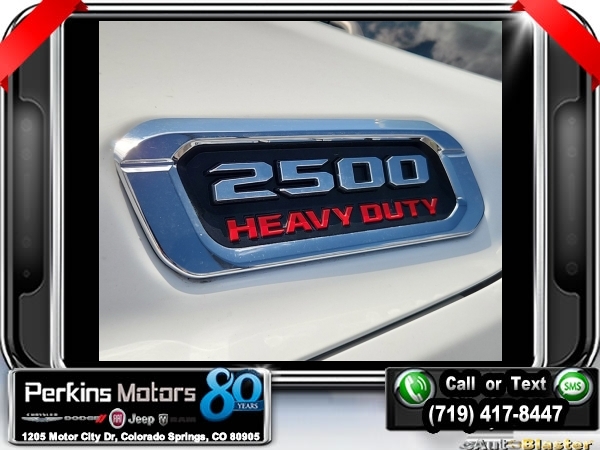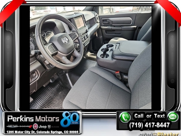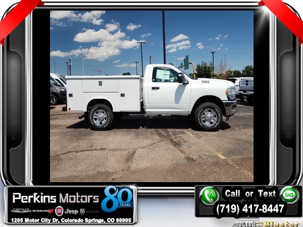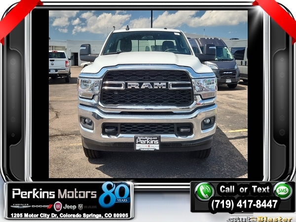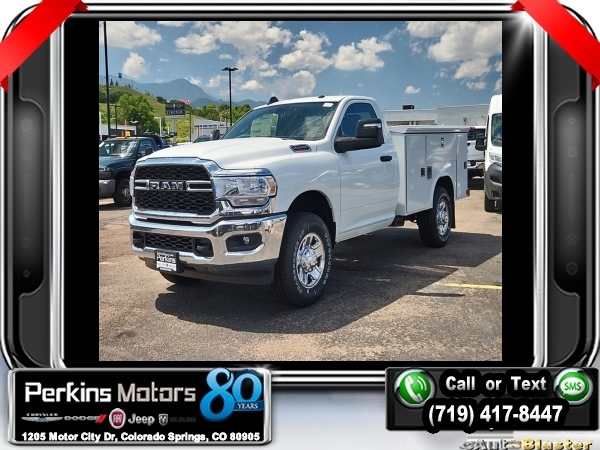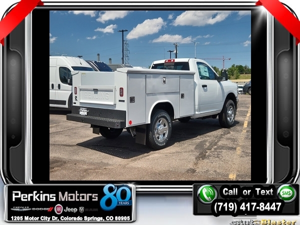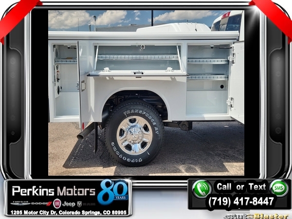 Factory MSRP: $58,035 $2,040 off MSRP! Bright White Clearcoat 2023 Ram 2500 Tradesman 4WD 8-Speed Automatic 6.4L V8<br>Service Body.<br>Check us out at www.perkinsmotors.com to see our specials! Since opening our doors in 1944, we’ve been proud to serve Colorado Springs, CO, and the surrounding areas of Pueblo, Castle Rock and Denver, CO. Throughout this time of being family owned for 80 years, we’ve maintained a firm commitment to our customers: to offer a wide selection of New Chrysler, Dodge, Fiat, Jeep, and Ram vehicles and quality pre-owned vehicles, and provide a quick, no-hassle car-buying process that ensures everyone drives off the lot satisfied with their purchase.<br><br>Chrome Appearance Group (Bright Front Bumper, Bright Rear Bumper, Center Hub, Chrome Grille Surround, Chrome Headlamp Bezels, Matte Black Mesh w/Chrome Grille, and Wheels: 18 x 8.0 Steel Chrome Clad), Heavy Duty Snow Plow Prep Group, Protection Group, Quick Order Package 2GA Tradesman, Tradesman Level 2 Equipment Group (4 Way Front Headrests, 40/20/40 Split Bench Seat, Black Exterior Mirrors, Carpet Floor Covering, Cloth 40/20/40 Bench Seat, Exterior Mirrors Courtesy Lamps, Exterior Mirrors w/Heating Element, Exterior Mirrors w/Supplemental Signals, For More Info, Call 800-643-2112, Front 1-Touch Down Power Windows, Front Armrest w/Cupholders, Front Floor Mats, Manual Adjust 4-Way Driver Seat, Manual Adjust 4-Way Front Passenger Seat, Manual Folding Exterior Mirrors, Manual Telescoping Mirrors, Mirror Running Lights, Overhead Console, Overhead Cupholder Lamp, Power Adjust Mirrors, Power Heated Folding Telescopic Mirrors, Power-Adjustable Convex Aux Mirrors, Rear Sliding Window, Remote Keyless Entry, SiriusXM Radio Service, SiriusXM Satellite Radio, Speed Sensitive Power Locks, Storage Tray, and Upgraded Door Trim Panel), 115V Auxiliary Front Power Outlet, 17 x 7.5 Steel Styled Wheels, 2-Way Front Head Restraints, 220 Amp Alternator, 3.73 Axle Ratio, 4 Speakers, 4-Wheel Disc Brakes, 400W Inverter, 4G LTE Wi-Fi Hot Spot, 8.4 Touchscreen Display, ABS brakes, Air Conditioning, Alexa Built-In, All R1 Low Radios, All Radio Equipped Vehicles, AM/FM radio, Apple CarPlay, Bluetooth Handsfree Phone & Audio, Brake assist, Compass, Connectivity - US/Canada, Cruise Control, Dash Pass Thru Wire Circuits, Delay-off headlights, Driver door bin, Dual front impact airbags, Dual front side impact airbags, Electronic Shift-On-The-Fly Transfer Case, Electronic Stability Control, Electronically Controlled Throttle, Emergency communication system: SiriusXM Guardian, Exterior 115V AC Outlet, For Details, Visit DriveUconnect.com, Front anti-roll bar, Front Center Armrest w/Storage, Front License Plate Bracket, Front reading lights, Fully automatic headlights, Global Telematics Box Module (TBM), Google Android Auto, GPS Antenna Input, Heavy Duty Vinyl 40/20/40 Split Bench Seat, I/P Mounted Auxiliary Switches, Illuminated entry, Integrated Center Stack Radio, Integrated Voice Command w/Bluetooth, Low tire pressure warning, MOPAR Front Rubber Floor Mats, Occupant sensing airbag, Outside temperature display, Overhead airbag, ParkView Rear Back-Up Camera, Passenger door bin, Passenger vanity mirror, Power steering, Radio data system, Radio: Uconnect 3 w/5 Display, Radio: Uconnect 5 w/8.4 Display, Rear anti-roll bar, Rear step bumper, Tachometer, Tilt steering wheel, Tip Start, Tow Hooks, Traction control, Trailer Brake Control, Trailer Light Check, Upfitter Electronic Module (VSIM), Variably intermittent wipers, and VoltmeteR. Price includes $15,995 in dealer added accessories.