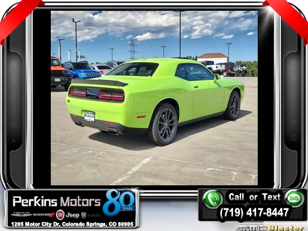 Factory MSRP: $47,600 $10,030 off MSRP! Sublime Metallic Clearcoat 2023 Dodge Challenger SXT AWD 8-Speed Automatic 3.6L V6 24V VVT<br><br>Check us out at www.perkinsmotors.com to see our specials! Since opening our doors in 1944, we’ve been proud to serve Colorado Springs, CO, and the surrounding areas of Pueblo, Castle Rock and Denver, CO. Throughout this time of being family owned for 80 years, we’ve maintained a firm commitment to our customers: to offer a wide selection of New Chrysler, Dodge, Fiat, Jeep, and Ram vehicles and quality pre-owned vehicles, and provide a quick, no-hassle car-buying process that ensures everyone drives off the lot satisfied with their purchase.<br><br>Alpine Audio Group w/Subwoofer (506 Watt Amplifier, 9 Amplified Speakers w/Subwoofer, and Surround Sound), Blacktop Special Edition (AWD Rhombi Black Badge, Black Exhaust Tips, Black Fuel Filler Door, Black Grille w/Bezel, Blacktop Special Edition IP Badge, Challenger Blacktop Grille Badge, Front Fog Lamps, Gloss Black I/P Cluster Trim Rings, Leather Performance Steering Wheel, Real Carbon Fiber Interior Accents, Rhombi 2-Pc Wheel Center Cap, Satin Black Dodge Tail Lamp Badge, and Wheels: 20 x 8 Black Noise AWD), Plus Package (1-Yr SiriusXM Guardian Trial, 276 Watt Amplifier, 4G LTE Wi-Fi Hot Spot, 8.4 Touchscreen Display, Apple CarPlay, Blind Spot & Cross Path Detection, Body Color Exterior Mirrors, Bright Pedals, Compass Gauge, Deluxe Security Alarm, Door Trim Panel w/Ambient Lighting, Exterior Mirrors w/Heating Element, For Details, Visit DriveUconnect.com, For More Info, Call 800-643-2112, Google Android Auto, GPS Antenna Input, HD Radio, Heated Front Seats, Heated Steering Wheel, High-Intensity Discharge Headlamps, Integrated Center Stack Radio, Integrated Voice Command w/Bluetooth, Media Hub (2 USB, AUX), Nappa Leather Sport Seat, ParkSense Rear Park Assist System, Power Multi-Function Foldaway Mirrors, Power Tilt/Telescope Steering Column, Premium-Stitched Dash Panel, Radio: Uconnect 4C w/8.4 Display, Radio/Driver Seat/Mirrors Memory, Remote Start System, Shark Fin Antenna, SiriusXM Radio Service, SiriusXM Satellite Radio, Universal Garage Door Opener, USB Host Flip, Ventilated Front Seats, and Wheels: 20 x 8 Satin Carbon AWD), Quick Order Package 21B, Technology Group (Adaptive Speed Control, Auto High Beam Headlamp Control, Forward Collision Warning, and Rain Sensitive Windshield Wipers), 4-Wheel Disc Brakes, 5-Year SiriusXM Traffic Service, 5-Year SiriusXM Travel Link Service, 6 Speakers, ABS brakes, Air Conditioning, All Radio Equipped Vehicles, All VP4R Radios, Alloy wheels, AM/FM radio, Anti-whiplash front head restraints, Apple CarPlay/Android Auto, Auto-dimming Rear-View mirror, Automatic temperature control, Brake assist, Bumpers: body-color, Cruise Control, Delay-off headlights, Driver door bin, Driver vanity mirror, Dual front impact airbags, Dual front side impact airbags, Electronic Stability Control, Four wheel independent suspension, Front anti-roll bar, Front Bucket Seats, Front Center Armrest, Front dual zone A/C, Front License Plate Bracket, Front reading lights, Fully automatic headlights, GPS Navigation, Heated door mirrors, Houndstooth Cloth Sport Seat, Illuminated entry, Leather Shift Knob, Low tire pressure warning, Manuf Statement of Origin, Outside temperature display, Overhead airbag, Overhead console, Panic alarm, ParkView Rear Back-Up Camera, Passenger door bin, Passenger vanity mirror, Power door mirrors, Power driver seat, Power steering, Power Sunroof, Power windows, Radio data system, Radio: Uconnect 4 w/7 Display, Radio: Uconnect 4C Nav w/8.4 Display, Rear anti-roll bar, Rear reading lights, Rear seat center armrest, Rear window defroster, Remote keyless entry, Security system, SiriusXM Traffic P Sale price includes all manufacture's incentives and dealer discounts. Sale price not available on lease or compatible with special APR. $3030 - 2023 National Power Dollars Retail Bonus Cash . Exp. 0