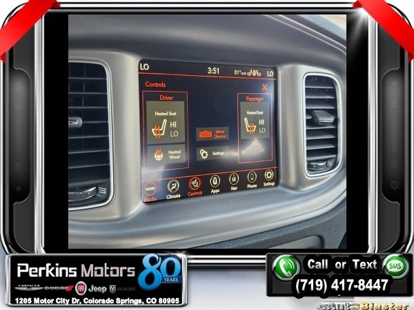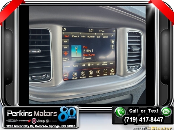 Factory MSRP: $44,095 $10,000 off MSRP! Priced below KBB Fair Purchase Price! Destroyer Gray Clearcoat 2023 Dodge Charger SXT AWD 8-Speed Automatic 3.6L V6 24V VVT<br>AWD, Black Cloth.<br>Check us out at www.perkinsmotors.com to see our specials! Since opening our doors in 1944, we’ve been proud to serve Colorado Springs, CO, and the surrounding areas of Pueblo, Castle Rock and Denver, CO. Throughout this time of being family owned for 80 years, we’ve maintained a firm commitment to our customers: to offer a wide selection of New Chrysler, Dodge, Fiat, Jeep, and Ram vehicles and quality pre-owned vehicles, and provide a quick, no-hassle car-buying process that ensures everyone drives off the lot satisfied with their purchase.<br><br>Alpine Audio Group w/Subwoofer (506 Watt Amplifier, 9 Premium Alpine Speakers, Surround Sound, and Trunk Mounted Subwoofer), Cold Weather Package (Heated Front Seats and Heated Steering Wheel), Navigation & Travel Group (1-Yr SiriusXM Guardian Trial, 2-Piece Shark Fin Antenna, 4G LTE Wi-Fi Hot Spot, 5-Year SiriusXM Traffic Service, 5-Year SiriusXM Travel Link Service, 8.4 Touchscreen Display, Apple CarPlay, Compass Gauge, For Details, Visit DriveUconnect.com, Google Android Auto, GPS Antenna Input, GPS Navigation, HD Radio, Integrated Center Stack Radio, Integrated Voice Command w/Bluetooth, Media Hub (2 USB, AUX), Radio: Uconnect 4C Nav w/8.4 Display, SiriusXM Traffic Plus, SiriusXM Travel Link, and USB Host Flip), Quick Order Package 29G, AWD, Black Cloth, 4-Wheel Disc Brakes, 6 Speakers, ABS brakes, Air Conditioning, Alloy wheels, AM/FM radio: SiriusXM, Anti-whiplash front head restraints, Apple CarPlay/Android Auto, Auto-dimming Rear-View mirror, Automatic temperature control, Brake assist, Bumpers: body-color, Compass, Cruise Control, Delay-off headlights, Driver & Passenger Lower LED Lamps, Driver door bin, Driver vanity mirror, Dual front impact airbags, Dual front side impact airbags, Electronic Stability Control, Emergency communication system: SiriusXM Guardian, Four wheel independent suspension, Front anti-roll bar, Front Bucket Seats, Front Center Armrest, Front dual zone A/C, Front License Plate Bracket, Front reading lights, Fully automatic headlights, Heated door mirrors, Houndstooth Cloth Sport Seat, Illuminated entry, Knee airbag, Leather Shift Knob, Low tire pressure warning, Manufacturer's Statement of Origin, Occupant sensing airbag, Outside temperature display, Overhead airbag, Overhead console, Panic alarm, ParkView Rear Back-Up Camera, Passenger door bin, Passenger vanity mirror, Power 2-Way Driver Lumbar Adjust, Power door mirrors, Power driver seat, Power steering, Power Sunroof, Power windows, Radio: Uconnect 4C w/8.4 Display, Rear anti-roll bar, Rear Armrest w/Cupholder Seat, Rear reading lights, Rear seat center armrest, Rear window defroster, Remote keyless entry, Speed-Sensitive Wipers, Split folding rear seat, Spoiler, Steering wheel mounted audio controls, Tachometer, Telescoping steering wheel, Tilt steering wheel, Traction control, Trip computer, Variably intermittent wipers, and Wheels: 19 x 7.5 Satin CarboN.<br><br>18/27 City/Highway MPG Sale price includes all manufacture's incentives and dealer discounts. Sale price not available on lease or compatible with special APR. $2920 - 2023 National Power Dollars Retail Bonus Cash . Exp. 09/30/2024 $2,000 - Exp. 09/30/2024