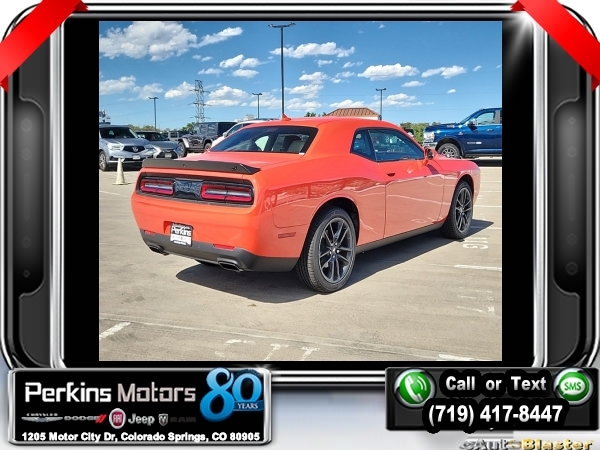 Factory MSRP: $47,600 $11,900 off MSRP! Go Mango 2023 Dodge Challenger SXT AWD 8-Speed Automatic 3.6L V6 24V VVT<br><br>Check us out at www.perkinsmotors.com to see our specials! Since opening our doors in 1944, we’ve been proud to serve Colorado Springs, CO, and the surrounding areas of Pueblo, Castle Rock and Denver, CO. Throughout this time of being family owned for 80 years, we’ve maintained a firm commitment to our customers: to offer a wide selection of New Chrysler, Dodge, Fiat, Jeep, and Ram vehicles and quality pre-owned vehicles, and provide a quick, no-hassle car-buying process that ensures everyone drives off the lot satisfied with their purchase.<br><br>Alpine Audio Group w/Subwoofer (506 Watt Amplifier, 9 Amplified Speakers w/Subwoofer, and Surround Sound), Blacktop Special Edition (AWD Rhombi Black Badge, Black Exhaust Tips, Black Fuel Filler Door, Black Grille w/Bezel, Blacktop Special Edition IP Badge, Challenger Blacktop Grille Badge, Front Fog Lamps, Gloss Black I/P Cluster Trim Rings, Leather Performance Steering Wheel, Real Carbon Fiber Interior Accents, Rhombi 2-Pc Wheel Center Cap, Satin Black Dodge Tail Lamp Badge, and Wheels: 20 x 8 Black Noise AWD), Plus Package (1-Yr SiriusXM Guardian Trial, 276 Watt Amplifier, 4G LTE Wi-Fi Hot Spot, 8.4 Touchscreen Display, Apple CarPlay, Blind Spot & Cross Path Detection, Body Color Exterior Mirrors, Bright Pedals, Compass Gauge, Deluxe Security Alarm, Door Trim Panel w/Ambient Lighting, Exterior Mirrors w/Heating Element, For Details, Visit DriveUconnect.com, For More Info, Call 800-643-2112, Google Android Auto, GPS Antenna Input, HD Radio, Heated Front Seats, Heated Steering Wheel, High-Intensity Discharge Headlamps, Integrated Center Stack Radio, Integrated Voice Command w/Bluetooth, Media Hub (2 USB, AUX), Nappa Leather Sport Seat, ParkSense Rear Park Assist System, Power Multi-Function Foldaway Mirrors, Power Tilt/Telescope Steering Column, Premium-Stitched Dash Panel, Radio: Uconnect 4C w/8.4 Display, Radio/Driver Seat/Mirrors Memory, Remote Start System, Shark Fin Antenna, SiriusXM Radio Service, SiriusXM Satellite Radio, Universal Garage Door Opener, USB Host Flip, Ventilated Front Seats, and Wheels: 20 x 8 Satin Carbon AWD), Quick Order Package 21B, Technology Group (Adaptive Speed Control, Auto High Beam Headlamp Control, Forward Collision Warning, and Rain Sensitive Windshield Wipers), 4-Wheel Disc Brakes, 5-Year SiriusXM Traffic Service, 5-Year SiriusXM Travel Link Service, 6 Speakers, ABS brakes, Air Conditioning, All Radio Equipped Vehicles, All VP4R Radios, Alloy wheels, AM/FM radio, Anti-whiplash front head restraints, Apple CarPlay/Android Auto, Auto-dimming Rear-View mirror, Automatic temperature control, Brake assist, Bumpers: body-color, Cruise Control, Delay-off headlights, Driver door bin, Driver vanity mirror, Dual front impact airbags, Dual front side impact airbags, Electronic Stability Control, Four wheel independent suspension, Front anti-roll bar, Front Bucket Seats, Front Center Armrest, Front dual zone A/C, Front License Plate Bracket, Front reading lights, Fully automatic headlights, GPS Navigation, Heated door mirrors, Houndstooth Cloth Sport Seat, Illuminated entry, Leather Shift Knob, Low tire pressure warning, Manuf Statement of Origin, Outside temperature display, Overhead airbag, Overhead console, Panic alarm, ParkView Rear Back-Up Camera, Passenger door bin, Passenger vanity mirror, Power door mirrors, Power driver seat, Power steering, Power Sunroof, Power windows, Radio data system, Radio: Uconnect 4 w/7 Display, Radio: Uconnect 4C Nav w/8.4 Display, Rear anti-roll bar, Rear reading lights, Rear seat center armrest, Rear window defroster, Remote keyless entry, Security system, SiriusXM Traf Sale price includes all manufacture's incentives and dealer discounts. Sale price not available on lease or compatible with special APR. $3030 - 2023 National Power Dollars Retail Bonus Cash. Exp. 09/03/2024 $2,000 - Exp.