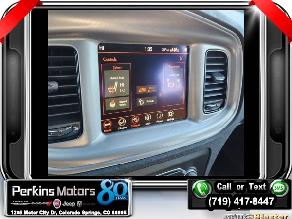 Factory MSRP: $45,025 $10,000 off MSRP! Priced below KBB Fair Purchase Price! Go Mango 2023 Dodge Charger SXT AWD 8-Speed Automatic 3.6L V6 24V VVT<br>AWD, Black Cloth.<br>Check us out at www.perkinsmotors.com to see our specials! Since opening our doors in 1944, we’ve been proud to serve Colorado Springs, CO, and the surrounding areas of Pueblo, Castle Rock and Denver, CO. Throughout this time of being family owned for 80 years, we’ve maintained a firm commitment to our customers: to offer a wide selection of New Chrysler, Dodge, Fiat, Jeep, and Ram vehicles and quality pre-owned vehicles, and provide a quick, no-hassle car-buying process that ensures everyone drives off the lot satisfied with their purchase.<br><br>Alpine Audio Group w/Subwoofer (506 Watt Amplifier, 9 Premium Alpine Speakers, Surround Sound, and Trunk Mounted Subwoofer), Blacktop Package (AWD Rhombi Black Badge, Black 1-Piece Performance Spoiler, Dodge Grille Badge, Gloss Black I/P Cluster Trim Rings, Satin Black Charger Decklid Badge, and Satin Black Dodge Tail Lamp Badge), Cold Weather Package (Heated Front Seats and Heated Steering Wheel), Quick Order Package 29G, AWD, Black Cloth, 1-Yr SiriusXM Guardian Trial, 2-Piece Shark Fin Antenna, 4-Wheel Disc Brakes, 4G LTE Wi-Fi Hot Spot, 6 Speakers, 8.4 Touchscreen Display, ABS brakes, Air Conditioning, Alloy wheels, AM/FM radio: SiriusXM, Anti-whiplash front head restraints, Apple CarPlay, Apple CarPlay/Android Auto, Auto-dimming Rear-View mirror, Automatic temperature control, Brake assist, Bumpers: body-color, Cargo Net, Compass, Cruise Control, Delay-off headlights, Driver & Passenger Lower LED Lamps, Driver door bin, Driver vanity mirror, Dual front impact airbags, Dual front side impact airbags, Electronic Stability Control, Emergency communication system: SiriusXM Guardian, For Details, Visit DriveUconnect.com, Four wheel independent suspension, Front anti-roll bar, Front Bucket Seats, Front Center Armrest, Front dual zone A/C, Front License Plate Bracket, Front reading lights, Fully automatic headlights, Google Android Auto, GPS Antenna Input, HD Radio, Heated door mirrors, Houndstooth Cloth Sport Seat, Illuminated entry, Integrated Center Stack Radio, Integrated Voice Command w/Bluetooth, Knee airbag, Leather Shift Knob, Low tire pressure warning, Manufacturer's Statement of Origin, Media Hub (2 USB, AUX), Occupant sensing airbag, Outside temperature display, Overhead airbag, Overhead console, Panic alarm, ParkView Rear Back-Up Camera, Passenger door bin, Passenger vanity mirror, Power 2-Way Driver Lumbar Adjust, Power door mirrors, Power driver seat, Power steering, Power Sunroof, Power windows, Radio: Uconnect 4C w/8.4 Display, Rear anti-roll bar, Rear Armrest w/Cupholder Seat, Rear reading lights, Rear seat center armrest, Rear window defroster, Remote keyless entry, Speed-Sensitive Wipers, Split folding rear seat, Spoiler, Steering wheel mounted audio controls, Tachometer, Telescoping steering wheel, Tilt steering wheel, Traction control, Trip computer, USB Host Flip, Variably intermittent wipers, Wheels: 19 x 7.5 Black Noise Painted, and Wheels: 19 x 7.5 Satin CarboN.<br><br>18/27 City/Highway MPG Sale price includes all manufacture's incentives and dealer discounts. Sale price not available on lease or compatible with special APR. $2920 - 2023 National Power Dollars Retail Bonus Cash . Exp. 09/30/2024 $2,000 - Exp. 09/30/2024