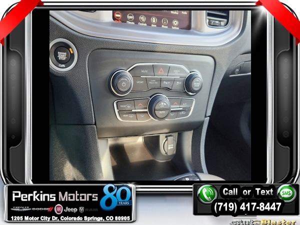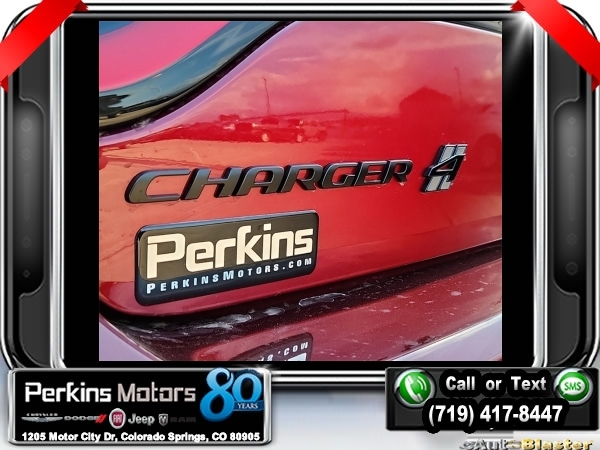 Factory MSRP: $45,025 $10,000 off MSRP! Priced below KBB Fair Purchase Price! Octane Red Pearlcoat 2023 Dodge Charger SXT AWD 8-Speed Automatic 3.6L V6 24V VVT<br>AWD, Black Cloth.<br>Check us out at www.perkinsmotors.com to see our specials! Since opening our doors in 1944, we’ve been proud to serve Colorado Springs, CO, and the surrounding areas of Pueblo, Castle Rock and Denver, CO. Throughout this time of being family owned for 80 years, we’ve maintained a firm commitment to our customers: to offer a wide selection of New Chrysler, Dodge, Fiat, Jeep, and Ram vehicles and quality pre-owned vehicles, and provide a quick, no-hassle car-buying process that ensures everyone drives off the lot satisfied with their purchase.<br><br>Alpine Audio Group w/Subwoofer (506 Watt Amplifier, 9 Premium Alpine Speakers, Surround Sound, and Trunk Mounted Subwoofer), Blacktop Package (AWD Rhombi Black Badge, Black 1-Piece Performance Spoiler, Dodge Grille Badge, Gloss Black I/P Cluster Trim Rings, Satin Black Charger Decklid Badge, and Satin Black Dodge Tail Lamp Badge), Cold Weather Package (Heated Front Seats and Heated Steering Wheel), Quick Order Package 29G, AWD, Black Cloth, 1-Yr SiriusXM Guardian Trial, 2-Piece Shark Fin Antenna, 4-Wheel Disc Brakes, 4G LTE Wi-Fi Hot Spot, 6 Speakers, 8.4 Touchscreen Display, ABS brakes, Air Conditioning, Alloy wheels, AM/FM radio: SiriusXM, Anti-whiplash front head restraints, Apple CarPlay, Apple CarPlay/Android Auto, Auto-dimming Rear-View mirror, Automatic temperature control, Brake assist, Bumpers: body-color, Cargo Net, Compass, Cruise Control, Delay-off headlights, Driver & Passenger Lower LED Lamps, Driver door bin, Driver vanity mirror, Dual front impact airbags, Dual front side impact airbags, Electronic Stability Control, Emergency communication system: SiriusXM Guardian, For Details, Visit DriveUconnect.com, Four wheel independent suspension, Front anti-roll bar, Front Bucket Seats, Front Center Armrest, Front dual zone A/C, Front License Plate Bracket, Front reading lights, Fully automatic headlights, Google Android Auto, GPS Antenna Input, HD Radio, Heated door mirrors, Houndstooth Cloth Sport Seat, Illuminated entry, Integrated Center Stack Radio, Integrated Voice Command w/Bluetooth, Knee airbag, Leather Shift Knob, Low tire pressure warning, Manufacturer's Statement of Origin, Media Hub (2 USB, AUX), Occupant sensing airbag, Outside temperature display, Overhead airbag, Overhead console, Panic alarm, ParkView Rear Back-Up Camera, Passenger door bin, Passenger vanity mirror, Power 2-Way Driver Lumbar Adjust, Power door mirrors, Power driver seat, Power steering, Power Sunroof, Power windows, Radio: Uconnect 4C w/8.4 Display, Rear anti-roll bar, Rear Armrest w/Cupholder Seat, Rear reading lights, Rear seat center armrest, Rear window defroster, Remote keyless entry, Speed-Sensitive Wipers, Split folding rear seat, Spoiler, Steering wheel mounted audio controls, Tachometer, Telescoping steering wheel, Tilt steering wheel, Traction control, Trip computer, USB Host Flip, Variably intermittent wipers, Wheels: 19 x 7.5 Black Noise Painted, and Wheels: 19 x 7.5 Satin CarboN.<br><br>18/27 City/Highway MPG Sale price includes all manufacture's incentives and dealer discounts. Sale price not available on lease or compatible with special APR. $2920 - 2023 National Power Dollars Retail Bonus Cash . Exp. 09/30/2024 $2,000 - Exp. 09/30/2024