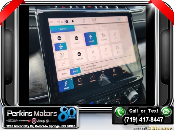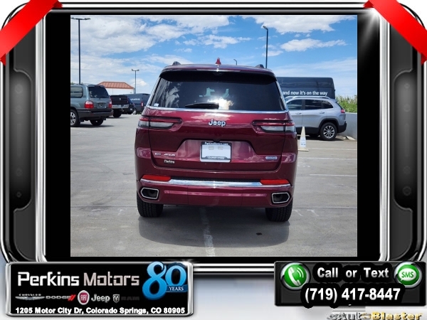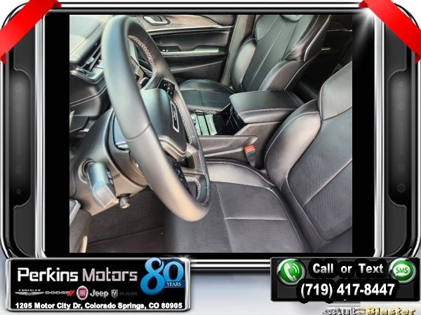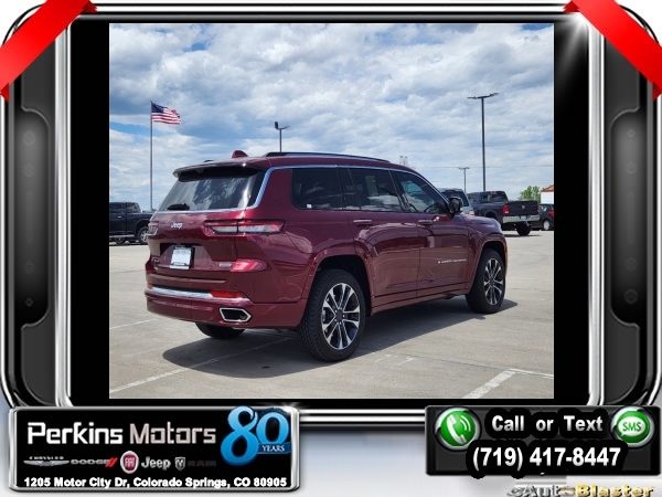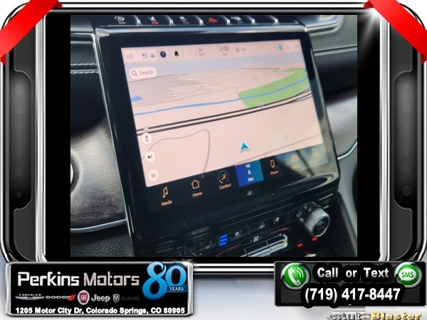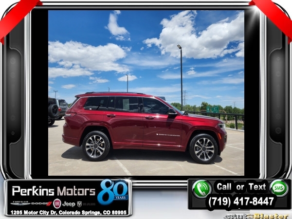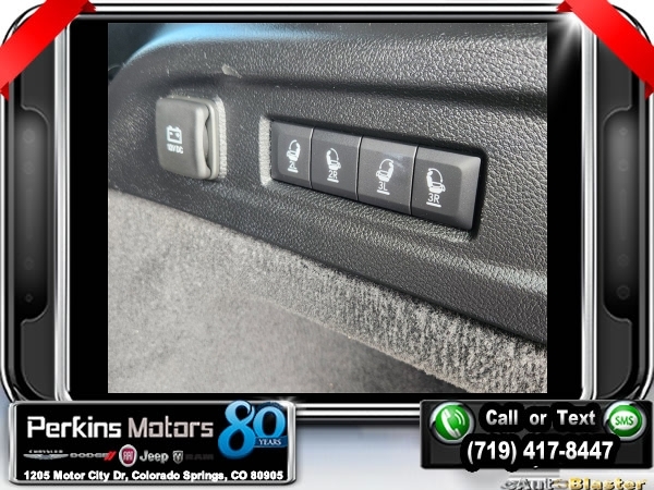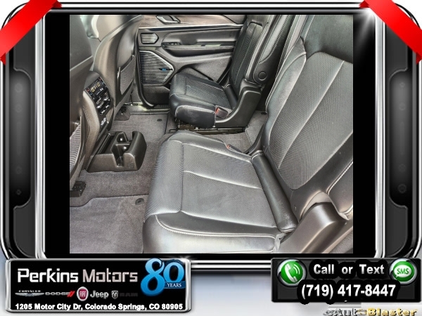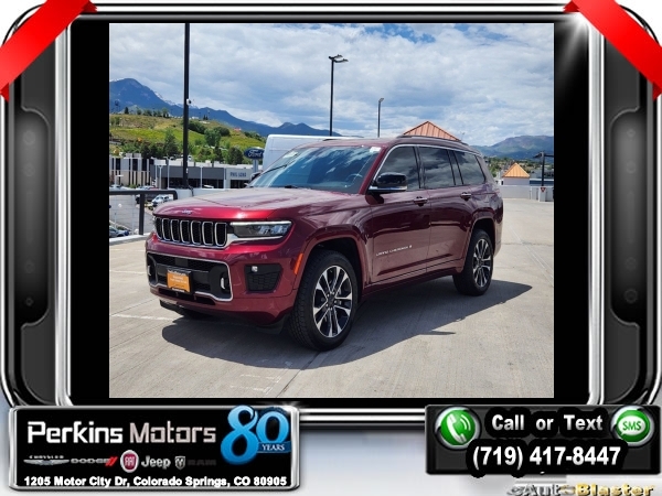 Velvet Red Pearlcoat 4WD 3.6L V6 24V VVT 8-Speed Automatic<br><br><br>Clean CARFAX.<br><br>Check us out at www.perkinsmotors.com to see our specials! Since opening our doors in 1944, we’ve been proud to serve Colorado Springs, CO, and the surrounding areas of Pueblo, Castle Rock and Denver, CO. Throughout this time of being family owned for 80 years, we’ve maintained a firm commitment to our customers: to offer a wide selection of New Chrysler, Dodge, Fiat, Jeep, and Ram vehicles and quality pre-owned vehicles, and provide a quick, no-hassle car-buying process that ensures everyone drives off the lot satisfied with their purchase.<br><br><br>Luxury Tech Group IV (2nd Row Manual Window Shades, ATC w/4 Zone Temp Control, Driver Power Seat Back Massage, Front Passenger Power Seat Back Massage, Nappa Leather Seats (TL), Passenger Seat Memory, Power Adjust 12-Way Driver Seat, Power Adjust 12-Way Front Passenger Seat, Rearview Autodim Digital Display Mirror, and Wireless Charging Pad), Quick Order Package 22N, Trailer Tow Group (B) (Trailer Hitch Zoom), 10 Speakers, 10.1 Touchscreen Display, 19 Speakers High Performance Audio, 3.45 Rear Axle Ratio, 3rd row seats: split-bench, 4-Wheel Disc Brakes, 950 Watt Amplifier, ABS brakes, Adaptive suspension, Air Conditioning, Air Susp/Activ Damping Delete Credit, Alloy wheels, AM/FM radio: SiriusXM w/360L, Anti-whiplash front head restraints, Apple CarPlay, Apple CarPlay/Android Auto, Audio memory, Auto High-beam Headlights, Auto-dimming door mirrors, Auto-dimming Rear-View mirror, Auto-leveling suspension, Automatic temperature control, Aux Battery, Brake assist, Bumpers: body-color, Compass, Connected Travel & Traffic Services, Connectivity - US/Canada, Cruise Control, Delay-off headlights, Disassociated Touchscreen Display, Driver door bin, Driver vanity mirror, Dual front impact airbags, Dual front side impact airbags, Electronic Stability Control, Emergency communication system, Four wheel independent suspension, Front anti-roll bar, Front Bucket Seats, Front Center Armrest w/Storage, Front dual zone A/C, Front fog lights, Front License Plate Bracket (DISC), Front reading lights, Fully automatic headlights, Garage door transmitter, Google Android Auto, GPS Antenna Input, GPS Navigation, HD Radio, Heated door mirrors, Heated front seats, Heated rear seats, Heated steering wheel, Illuminated entry, Integrated Center Stack Radio, Integrated Voice Command w/Bluetooth, Knee airbag, Leather steering wheel, Low tire pressure warning, Memory seat, Nappa Leather Seats, Navigation System, Normal Duty Suspension, Occupant sensing airbag, Outside temperature display, Overhead airbag, Overhead console, Panic alarm, ParkView Rear Back-Up Camera, Passenger door bin, Passenger vanity mirror, Power door mirrors, Power driver seat, Power Fold Seatbacks, Power Liftgate, Power moonroof: CommandView, Power passenger seat, Power steering, Power windows, Radio data system, Radio: Uconnect 5 Nav w/10.1 Display, Radio: Uconnect 5 Nav w/8.4 Display, Rain sensing wipers, Rear air conditioning, Rear anti-roll bar, Rear reading lights, Rear window defroster, Rear window wiper, Reclining 3rd row seat, Remote keyless entry, Roof rack: rails only, Security system, SiriusXM Satellite Radio, SiriusXM w/360L, Speed-Sensitive Wipers, Split folding rear seat, Spoiler, Steering wheel memory, Steering wheel mounted audio controls, Tachometer, Telescoping steering wheel, Tilt steering wheel, Traction control, Trip computer, Turn signal indicator mirrors, USB Host Flip, Variably intermittent wipers, Ventilated front seats, Voltmeter, and Wheels: 20 x 8.5 Machined Face Aluminum.