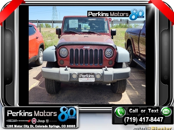 Red Rock Crystal Pearlcoat 4WD 3.8L V6 SMPI 4-Speed Automatic VLP<br><br>4WD.<br><br><br>Check us out at www.perkinsmotors.com to see our specials! Since opening our doors in 1944, we’ve been proud to serve Colorado Springs, CO, and the surrounding areas of Pueblo, Castle Rock and Denver, CO. Throughout this time of being family owned for 80 years, we’ve maintained a firm commitment to our customers: to offer a wide selection of New Chrysler, Dodge, Fiat, Jeep, and Ram vehicles and quality pre-owned vehicles, and provide a quick, no-hassle car-buying process that ensures everyone drives off the lot satisfied with their purchase.<br><br>Reviews:<br> * Whether you’re an off-road enthusiast, an occasional camper or just a city slicker with a back-country mindset, the rugged yet refined 2008 Jeep Wrangler is sure to please. Source: KBB.com<br><br><br>Quick Order Package 24S (17 x 7.5 Aluminum Wheels, Air Conditioning, Fog Lamps, Front Floor Mats, Full Length Floor Console, Leather Wrapped Steering Wheel, Sunrider Soft Top, and Temperature & Compass Gauge), Trailer Tow Group (Class I Receiver Hitch), 4WD, 16 x 7.0 Luxury Styled Steel Wheels, 3.21 Axle Ratio, 3.73 Axle Ratio, 4-Wheel Disc Brakes, 6 Speakers, ABS brakes, AM/FM CD/MP3 Radio, AM/FM radio, Brake assist, CD player, Driver door bin, Dual front impact airbags, Easy Folding SoftTop, Electronic Stability Control, Front anti-roll bar, Front Bucket Seats, Integrated roll-over protection, Low tire pressure warning, Normal Duty Suspension, Occupant sensing airbag, Passenger door bin, Power steering, Radio data system, Rear anti-roll bar, Tachometer, Tilt steering wheel, Traction control, Trip computer, Variably intermittent wipers, and Vinyl Bucket Seats.