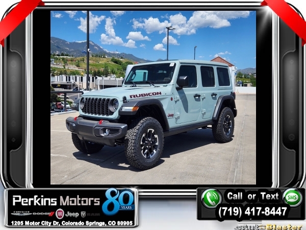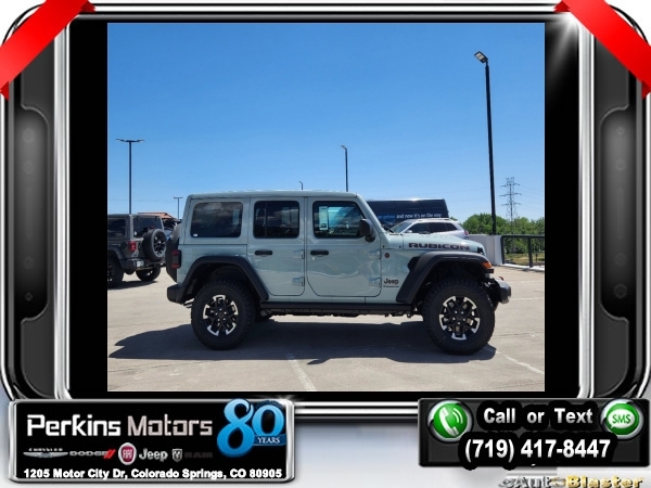 Factory MSRP: $68,025 $13,000 off MSRP! Earl Clearcoat 2024 Jeep Wrangler Rubicon 4WD 8-Speed Automatic 3.6L V6 24V VVT<br><br>Check us out at www.perkinsmotors.com to see our specials! Since opening our doors in 1944, we’ve been proud to serve Colorado Springs, CO, and the surrounding areas of Pueblo, Castle Rock and Denver, CO. Throughout this time of being family owned for 80 years, we’ve maintained a firm commitment to our customers: to offer a wide selection of New Chrysler, Dodge, Fiat, Jeep, and Ram vehicles and quality pre-owned vehicles, and provide a quick, no-hassle car-buying process that ensures everyone drives off the lot satisfied with their purchase.<br><br>Convenience Group (Heated Steering Wheel), Quick Order Package 24R Rubicon, Safety Group (Blind Spot & Cross Path Detection), 12.3 Touchscreen Display, 4-Wheel Disc Brakes, 4.10 Rear Axle Ratio, 8 Speakers, 97 MPH Vehicle Max Speed Calibration, ABS brakes, Air Conditioning, Alloy wheels, AM/FM radio: SiriusXM, Apple CarPlay, Apple CarPlay/Android Auto, Automatic temperature control, Aux Battery, Brake assist, Cloth Low-Back Bucket Seats, Compass, Connectivity - US/Canada, Cruise Control, Delay-off headlights, Disassociated Touchscreen Display, Driver door bin, Driver vanity mirror, Dual front impact airbags, Dual front side impact airbags, Electronic Stability Control, Emergency communication system: Jeep Connect, Front anti-roll bar, Front Bucket Seats, Front Center Armrest w/Storage, Front dual zone A/C, Front fog lights, Front License Plate Bracket, Front reading lights, Fully automatic headlights, Google Android Auto, Heated door mirrors, Illuminated entry, Integrated Center Stack Radio, Integrated roll-over protection, Integrated Voice Command w/Bluetooth, Jeep Trail Rated Kit, Low tire pressure warning, MOPAR All-Weather Floor Mats, Non-Lock Fuel Cap w/o Discriminator, Occupant sensing airbag, Outside temperature display, Overhead airbag, Panic alarm, ParkView Rear Back-Up Camera, Passenger door bin, Passenger vanity mirror, Performance Suspension, Power door mirrors, Power steering, Power windows, Radio data system, Radio: Uconnect 5 w/12.3 Display, Rear anti-roll bar, Rear reading lights, Rear Window Defroster, Remote keyless entry, Removable Rear Quarter Windows, Security system, Sky 1-Touch Power Top, Split folding rear seat, Steering wheel mounted audio controls, Stop-Start Dual Battery System, Tachometer, Telescoping steering wheel, Tilt steering wheel, Traction control, Trip computer, Variably intermittent wipers, Voltmeter, Wheels: 17 x 7.5 Machined w/Black Pockets, and Wheels: 17 x 7.5 Machined/Painted Black. Sale price includes all manufacture's incentives and dealer discounts. Sale price not available on lease or compatible with special APR. $2000 - 2024 Bonus Cash . Exp. 09/30/2024 $6,000 - Exp. 09/30/2024