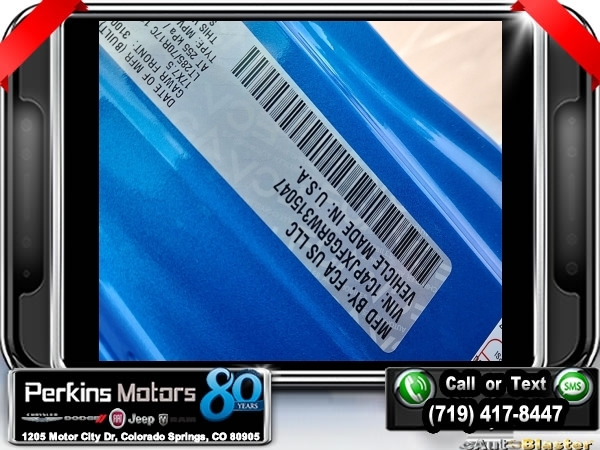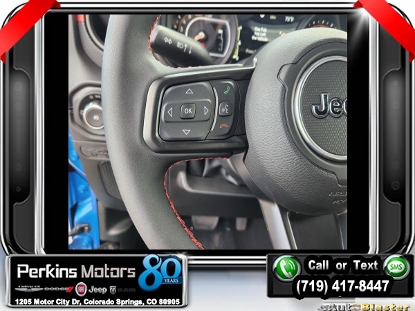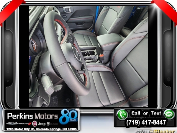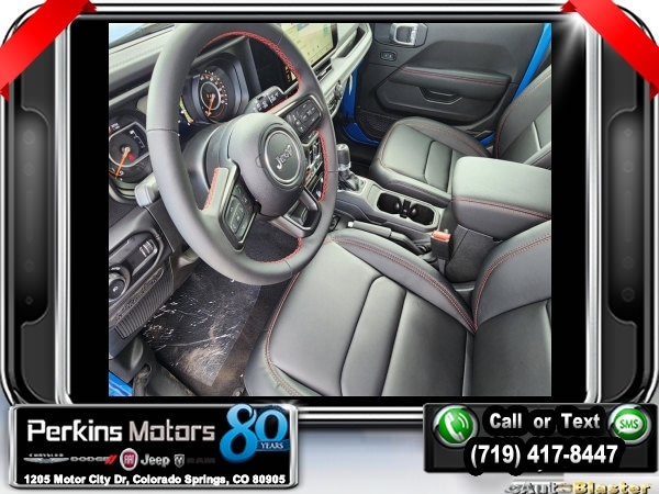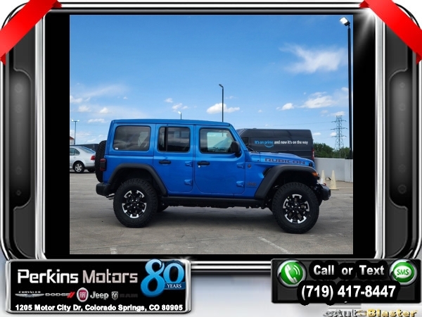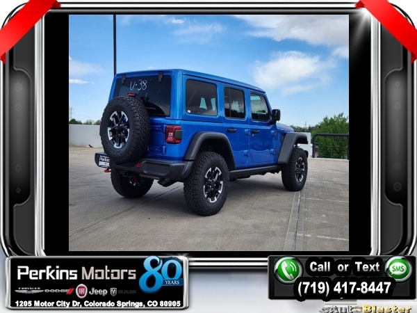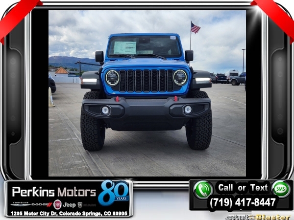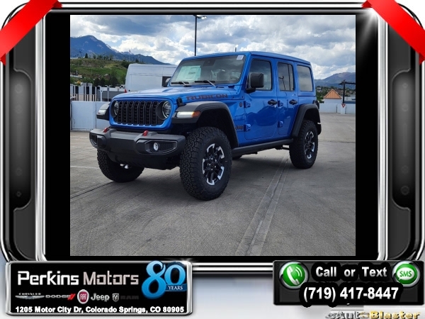 New Price! Factory MSRP: $68,025 $8,000 off MSRP! Hydro Blue Pearl Coat 2024 Jeep Wrangler Rubicon 4WD 8-Speed Automatic 3.6L V6 24V VVT<br><br>Check us out at www.perkinsmotors.com to see our specials! Since opening our doors in 1944, we’ve been proud to serve Colorado Springs, CO, and the surrounding areas of Pueblo, Castle Rock and Denver, CO. Throughout this time of being family owned for 80 years, we’ve maintained a firm commitment to our customers: to offer a wide selection of New Chrysler, Dodge, Fiat, Jeep, and Ram vehicles and quality pre-owned vehicles, and provide a quick, no-hassle car-buying process that ensures everyone drives off the lot satisfied with their purchase.<br><br>Convenience Group (Remote Start System), Quick Order Package 24R Rubicon, Safety Group, 12.3 Touchscreen Display, 4-Wheel Disc Brakes, 4.10 Rear Axle Ratio, 8 Speakers, 97 MPH Vehicle Max Speed Calibration, ABS brakes, Air Conditioning, Alloy wheels, AM/FM radio: SiriusXM, Apple CarPlay, Apple CarPlay/Android Auto, Automatic temperature control, Aux Battery, Brake assist, Cloth Low-Back Bucket Seats, Compass, Connectivity - US/Canada, Cruise Control, Delay-off headlights, Disassociated Touchscreen Display, Driver door bin, Driver vanity mirror, Dual front impact airbags, Dual front side impact airbags, Electronic Stability Control, Front anti-roll bar, Front Bucket Seats, Front Center Armrest w/Storage, Front dual zone A/C, Front fog lights, Front License Plate Bracket, Front reading lights, Fully automatic headlights, Google Android Auto, Heated door mirrors, Illuminated entry, Integrated Center Stack Radio, Integrated roll-over protection, Integrated Voice Command w/Bluetooth, Jeep Trail Rated Kit, Low tire pressure warning, MOPAR All-Weather Floor Mats, Non-Lock Fuel Cap w/o Discriminator, Occupant sensing airbag, Outside temperature display, Overhead airbag, Panic alarm, ParkView Rear Back-Up Camera, Passenger door bin, Passenger vanity mirror, Performance Suspension, Power door mirrors, Power steering, Power Top Quarter Window Storage Bag, Power windows, Radio data system, Radio: Uconnect 5 w/12.3 Display, Rear anti-roll bar, Rear reading lights, Rear Window Defroster, Rear Window Wiper/Washer, Remote keyless entry, Security system, Sky 1-Touch Power Top, Split folding rear seat, Steering wheel mounted audio controls, Stop-Start Dual Battery System, Tachometer, Telescoping steering wheel, Tilt steering wheel, Traction control, Trip computer, Variably intermittent wipers, Voltmeter, Wheels: 17 x 7.5 Machined w/Black Pockets, and Wheels: 17 x 7.5 Machined/Painted Black. Sale price includes all manufacture's incentives and dealer discounts. Sale price not available on lease or compatible with special APR. $2000 - 2024 National Summer Select Inventory Bonus Cash. Exp. 07/31/2024