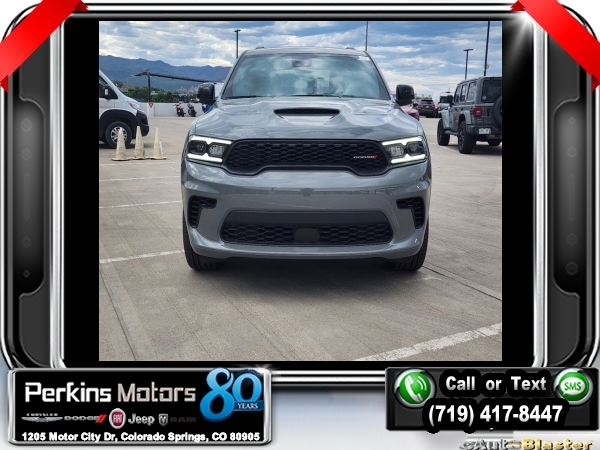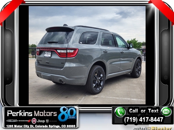 Factory MSRP: $52,900 $8,086 off MSRP! Priced below KBB Fair Purchase Price! Destroyer Gray Clearcoat 2024 Dodge Durango GT AWD 8-Speed Automatic 3.6L V6 24V VVT<br>AWD.<br>Check us out at www.perkinsmotors.com to see our specials! Since opening our doors in 1944, we’ve been proud to serve Colorado Springs, CO, and the surrounding areas of Pueblo, Castle Rock and Denver, CO. Throughout this time of being family owned for 80 years, we’ve maintained a firm commitment to our customers: to offer a wide selection of New Chrysler, Dodge, Fiat, Jeep, and Ram vehicles and quality pre-owned vehicles, and provide a quick, no-hassle car-buying process that ensures everyone drives off the lot satisfied with their purchase.<br><br>Blacktop Package (Black Roof Rails, Gloss Black Badges, GT Gloss Black Badging, Integrated Roof Rail Crossbars, Satin Black Dodge Tail Lamp Badge, and Wheels: 20 x 8.0 Black Noise Aluminum), Quick Order Package 2BG GT Plus (1-Year Trial (Registration Required), 10.1 Touchscreen Display, 115V Auxiliary Power Outlet, 180 Amp Alternator, 4G LTE Wi-Fi Hot Spot, 7 & 4 Pin Wiring Harness, Adaptive Cruise Control w/Stop, Apple CarPlay, Auto-Dimming Exterior Driver Mirror, Blind Spot w/Trailer Detection, Class IV Receiver Hitch, Connected Travel & Traffic Services, Disassociated Touchscreen Display, Dual Remote USB Port - Charge Only, Exterior Mirrors w/Heating Element, Exterior Mirrors w/Memory, Exterior Mirrors w/Supplemental Signals, Floor Console w/Leather Armrest, For Details Visit DriveUconnect.com, Full Speed Forward Collision Warning Plus, Global Telematics Box Module (TBM), Gloss Black Exterior Mirrors, Google Android Auto, GPS Antenna Input, GPS Navigation, HD Radio, Heated Second Row Seats, Heavy-Duty Engine Cooling, Integrated Center Stack Radio, Integrated Voice Command w/Bluetooth, Leather Trimmed Bucket Seats, Leather Wrapped Door Panels, LED Auxiliary Low Beam & Turn Signal, Power 6x9 Multi-Function Foldaway Mirrors, Power 8-Way Driver Memory 8-Way Passenger Seats, Power Driver/Passenger 4-Way Lumbar Adjust, Power Sunroof, Power Tilt & Telescopic Steering Column, Radio: Uconnect 5 Nav w/10.1 Display, Radio/Driver Seat/Mirrors Memory, Rear Load Leveling Suspension, Red Accent Stitching, SiriusXM Guardian - Included Trial (B), SiriusXM w/360L, Trailer Brake Control, USB Host Flip, and Ventilated Front Seats), AWD, 2nd Row Fold/Tumble Captain Chairs, 2nd Row Mini Console w/Cupholders, 2nd Row Seat Mounted Inboard Armrests, 3.45 Rear Axle Ratio, 3rd Row Floor Mat & Mini Console, 3rd row seats: split-bench, 4-Wheel Disc Brakes, 6 Speakers, 6-Passenger Seating, ABS brakes, Air Conditioning, Alloy wheels, AM/FM radio: SiriusXM, Anti-whiplash front head restraints, Apple CarPlay/Android Auto, Auto-dimming Rear-View mirror, Automatic temperature control, Brake assist, Bumpers: body-color, Cloth Bucket Seats w/Shift Insert, Compass, Cruise Control, Delay-off headlights, Driver door bin, Driver vanity mirror, Dual front impact airbags, Dual front side impact airbags, Electronic Stability Control, Four wheel independent suspension, Front anti-roll bar, Front Bucket Seats, Front Center Armrest w/Storage, Front dual zone A/C, Front License Plate Bracket, Front reading lights, Fully automatic headlights, Garage door transmitter, Heated door mirrors, Heated front seats, Heated steering wheel, Illuminated entry, Knee airbag, Leather steering wheel, Low tire pressure warning, Occupant sensing airbag, Outside temperature display, Overhead airbag, Overhead console, Panic alarm, ParkView Rear Back-Up Camera, Passenger door bin, Passenger vanity mirror, Power door mirrors, Power driver seat, Power Liftgate, Power steering, Power windows, Radio data system, Radio: Uconnect 4 w/8.4 Display, Rear Sale price includes all manufacture's incentives and dealer discounts. Sale price not available on lease or compatible with special APR. $2950 - 2024 National Power Dollars Retail Bonus Cash . Exp. 09/03/2024 $2,000 - Exp.
