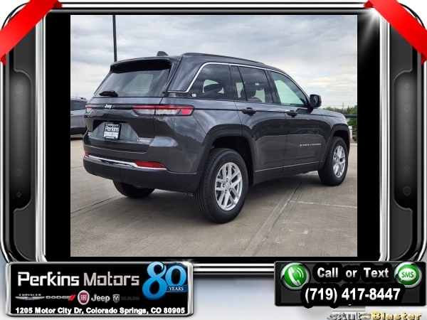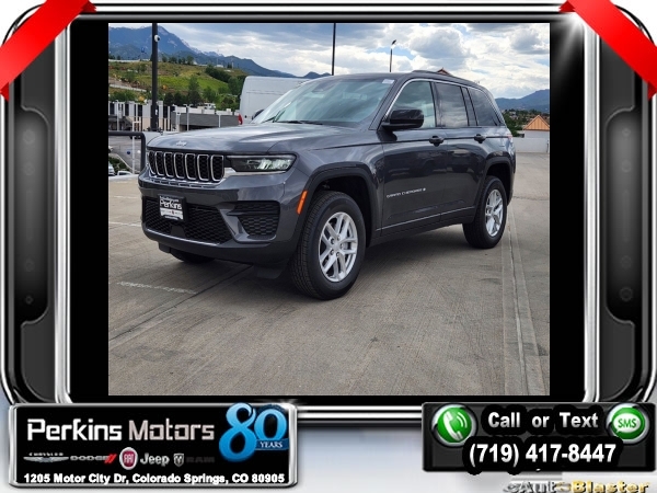 Factory MSRP: $44,970 $9,800 off MSRP! Priced below KBB Fair Purchase Price! Baltic Gray Metallic Clearcoat 2024 Jeep Grand Cherokee Laredo 4WD 8-Speed Automatic 3.6L V6 24V VVT<br>4WD.<br>Check us out at www.perkinsmotors.com to see our specials! Since opening our doors in 1944, we’ve been proud to serve Colorado Springs, CO, and the surrounding areas of Pueblo, Castle Rock and Denver, CO. Throughout this time of being family owned for 80 years, we’ve maintained a firm commitment to our customers: to offer a wide selection of New Chrysler, Dodge, Fiat, Jeep, and Ram vehicles and quality pre-owned vehicles, and provide a quick, no-hassle car-buying process that ensures everyone drives off the lot satisfied with their purchase.<br><br>Luxury Tech Group I (Heated Front Seats and Remote Start System), Quick Order Package 23D Laredo X (Power Sunroof), 4WD, 3.45 Rear Axle Ratio, 4-Wheel Disc Brakes, 6 Speakers, ABS brakes, Air Conditioning, Alloy wheels, Anti-whiplash front head restraints, Automatic temperature control, Brake assist, Bumpers: body-color, Cloth Seats, Compass, Cruise Control, Delay-off headlights, Driver door bin, Driver vanity mirror, Dual front impact airbags, Dual front side impact airbags, Electronic Stability Control, Emergency communication system, Four wheel independent suspension, Front anti-roll bar, Front Bucket Seats, Front Center Armrest w/Storage, Front dual zone A/C, Front License Plate Bracket, Front reading lights, Fully automatic headlights, Heated door mirrors, Illuminated entry, Knee airbag, Low tire pressure warning, Normal Duty Suspension, Occupant sensing airbag, Outside temperature display, Overhead airbag, Overhead console, Panic alarm, ParkView Rear Back-Up Camera, Passenger door bin, Passenger vanity mirror, Power door mirrors, Power driver seat, Power steering, Power windows, Radio data system, Radio: Uconnect 5 w/8.4 Display, Rear anti-roll bar, Rear reading lights, Rear window defroster, Rear window wiper, Remote keyless entry, Roof rack: rails only, Security system, Speed-Sensitive Wipers, Split folding rear seat, Spoiler, Steering wheel mounted audio controls, Tachometer, Telescoping steering wheel, Tilt steering wheel, Traction control, Trip computer, Variably intermittent wipers, Voltmeter, and Wheels: 17 x 6.5 Fully Painted Aluminum.<br><br>19/26 City/Highway MPG Sale price includes all manufacture's incentives and dealer discounts. Sale price not available on lease or compatible with special APR. $1000 - 2024 Denver BC Retail Consumer Cash. Exp. 07/31/2024 $2000 - 2024 National Summer Select Inventory Bonus Cash . Exp. 07/31/2024 $500 - 2024 Retail Bonus Cash. Exp. 07/31/2024