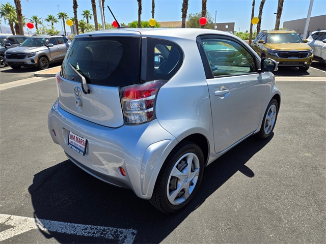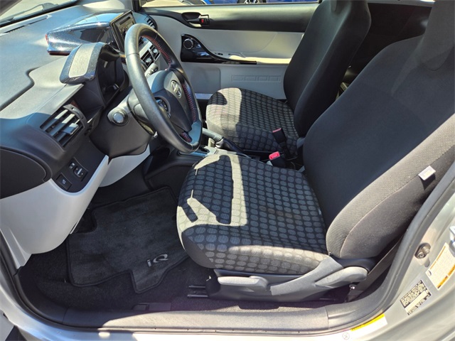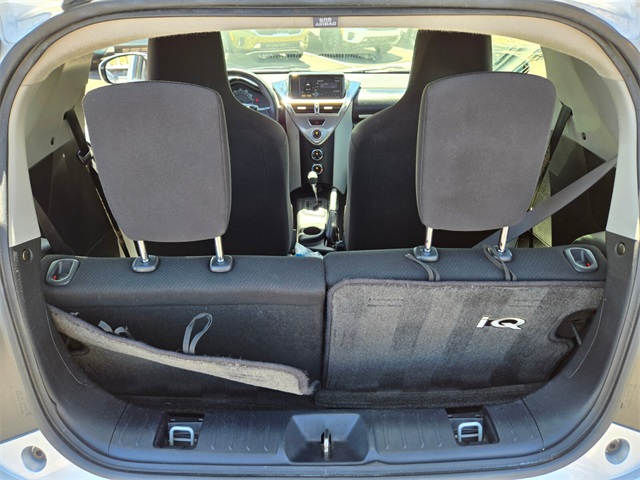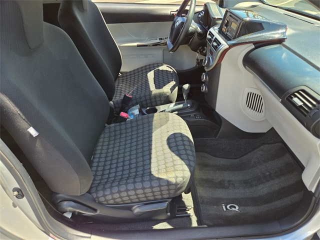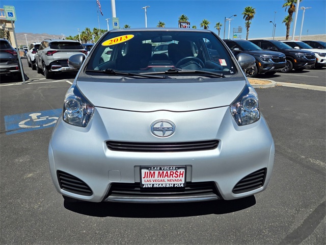Odometer is 25769 miles below market average!36/37 City/Highway MPGSilver 2013 Scion iQ FWD Continuously Variable (CVT-F) 1.3L 4-Cylinder DOHC Dual VVT-iIf you don't drive here, you can't save here!Awards: * 2013 KBB.com 5-Year Cost to Own AwardsPrice may not include recon fee. 5J x 16" Steel Disc Wheels, 6 Speakers, ABS brakes, Air Conditioning, AM/FM radio, Brake assist, Bumpers: body-color, CD player, Driver door bin, Driver vanity mirror, Dual front impact airbags, Dual front side impact airbags, Electronic Stability Control, Fabric Upholstery, Front anti-roll bar, Front Bucket Seats, Front reading lights, Front wheel independent suspension, Illuminated entry, Knee airbag, Leather steering wheel, Low tire pressure warning, Occupant sensing airbag, Outside temperature display, Overhead airbag, Panic alarm, Passenger door bin, Passenger vanity mirror, Pioneer AM/FM/CD Head Unit, Power door mirrors, Power steering, Power windows, Premium audio system: Pioneer, Rear window defroster, Rear window wiper, Remote keyless entry, Split folding rear seat, Steering wheel mounted audio controls, Tachometer, Tilt steering wheel, Traction control, Trip computer, and Turn signal indicator mirrors.