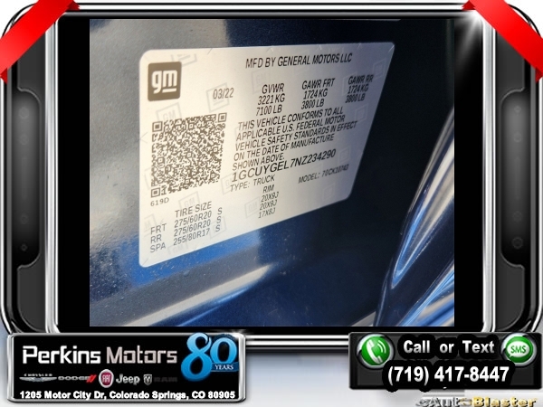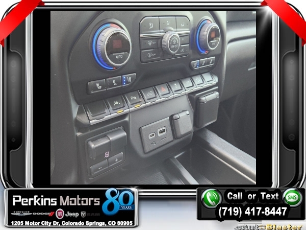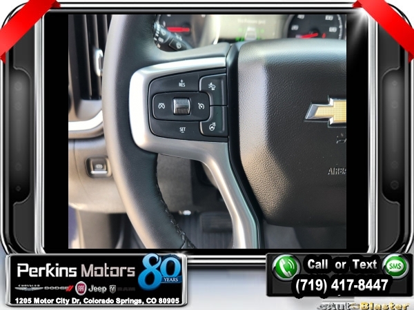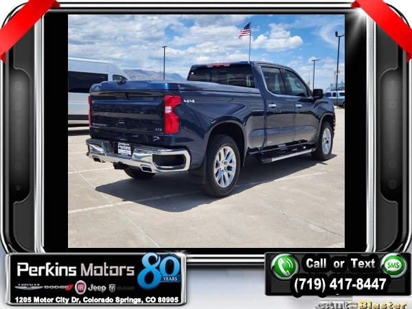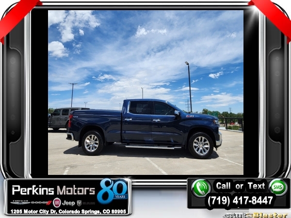 Northsky Blue Metallic 4WD EcoTec3 6.2L V8 10-Speed Automatic<br><br>10-Way Power Driver Seat w/Lumbar, 10-Way Power Passenger Seat Adjuster w/Lumbar, 12-Volt Rear Auxiliary Power Outlet, 120-Volt Bed Mounted Power Outlet, 120-Volt Instrument Panel Power Outlet, 2 USB Ports, 2 USB Ports (First Row), 4.2 Diagonal Color Display Driver Info Center, Adaptive Cruise Control, Advanced Trailering System, All-Weather Floor Liner (LPO) (AAK), Auto-Dimming Inside Rear-View Mirror, Auto-Locking Rear Differential, Auxiliary External Transmission Oil Cooler, Bluetooth® For Phone, Chevytec Spray-On Black Bedliner, Chrome Grille, Chrome Mirror Caps, Color-Keyed Carpeting Floor Covering, Compass, Deep-Tinted Glass, Driver Memory, Electric Rear-Window Defogger, Electronic Cruise Control, Floor Mounted Center Console, Front Frame-Mounted Black Recovery Hooks, Front LED Fog Lamps, Front Rubberized Vinyl Floor Mats, HD Rear Vision Camera, Heated Driver & Front Outboard Passenger Seats, Heated Steering Wheel, Heavy Duty Suspension, Hitch Guidance w/Hitch View, Integrated Trailer Brake Controller, Keyless Open & Start, Leather Wrapped Steering Wheel, LED Cargo Area Lighting, LTZ Convenience Package, LTZ Convenience Package II, LTZ Plus Package, LTZ Premium Package, Manual Tilt/Telescoping Steering Column, OnStar & Chevrolet Connected Services Capable, Outside Heated Power-Adjustable Mirrors, Power Door Locks, Power Front Passenger Windows w/Express Up/Down, Power Front Windows w/Driver Express Up/Down, Power Rear Windows w/Express Down, Power Sliding Rear Window w/Rear Defogger, Power Sunroof, Power Tailgate, Preferred Equipment Group 1LZ, Premium Bose 7-Speaker Sound System, Radio: Chevrolet Infotainment 3 Premium System, Rear Dual USB Charging-Only Ports, Rear Rubberized-Vinyl Floor Mats, Rear Wheelhouse Liners, Remote Vehicle Starter System, Safety Package, Safety Package II, Standard Tailgate, Steering Wheel Audio Controls, Theft Deterrent System (Unauthorized Entry), Trailering Package, Universal Home Remote, Up-Level Rear Seat w/Storage Package, Ventilated Driver & Front Passenger Seats, Wireless Charging, Wireless Phone Projection, Z71 Off-Road & Protection Package, Z71 Off-Road Package.<br><br><br>CARFAX One-Owner.<br><br>Check us out at www.perkinsmotors.com to see our specials! Since opening our doors in 1944, we’ve been proud to serve Colorado Springs, CO, and the surrounding areas of Pueblo, Castle Rock and Denver, CO. Throughout this time of being family owned for 80 years, we’ve maintained a firm commitment to our customers: to offer a wide selection of New Chrysler, Dodge, Fiat, Jeep, and Ram vehicles and quality pre-owned vehicles, and provide a quick, no-hassle car-buying process that ensures everyone drives off the lot satisfied with their purchase.<br><br><br>LTZ Convenience Package (2 USB Ports (First Row), Floor Mounted Center Console, Power Sliding Rear Window w/Rear Defogger, and Universal Home Remote), LTZ Convenience Package II (Premium Bose 7-Speaker Sound System, Radio: Chevrolet Infotainment 3 Premium System, and Wireless Charging), LTZ Plus Package, LTZ Premium Package (Power Sunroof), Preferred Equipment Group 1LZ (10-Way Power Driver Seat w/Lumbar, 10-Way Power Passenger Seat Adjuster w/Lumbar, 12-Volt Rear Auxiliary Power Outlet, 120-Volt Bed Mounted Power Outlet, 120-Volt Instrument Panel Power Outlet, 2 USB Ports, 4.2 Diagonal Color Display Driver Info Center, Advanced Trailering System, Auto-Dimming Inside Rear-View Mirror, Auto-Locking Rear Differential, Auxiliary External Transmission Oil Cooler, Bluetooth® For Phone, Chrome Grille, Chrome Mirror Caps, Color-Keyed Carpeting Floor Covering, Compass, Deep-Tinted Glass, Driver Memory, Electric Rear-Window Defogger, Electronic Cruise Control, Front Frame-Mounted Black Recovery Hooks, Front LED Fog Lamps, Front Rubberized Vinyl Floor Mats, HD Rear Vision Camera, Heated Driver & Front Outboard Passenger Seats, Heated Steering Wheel, Hitch Guidance w/Hitch View