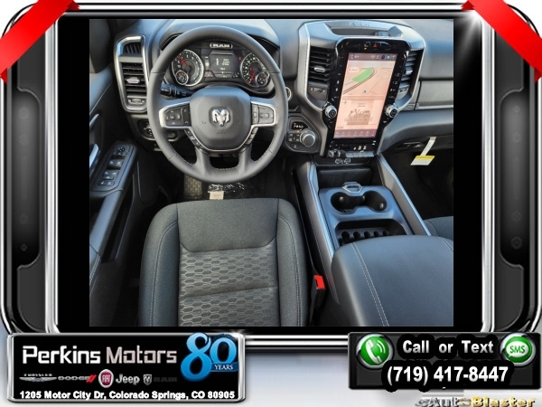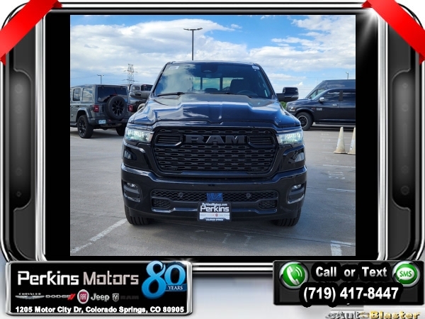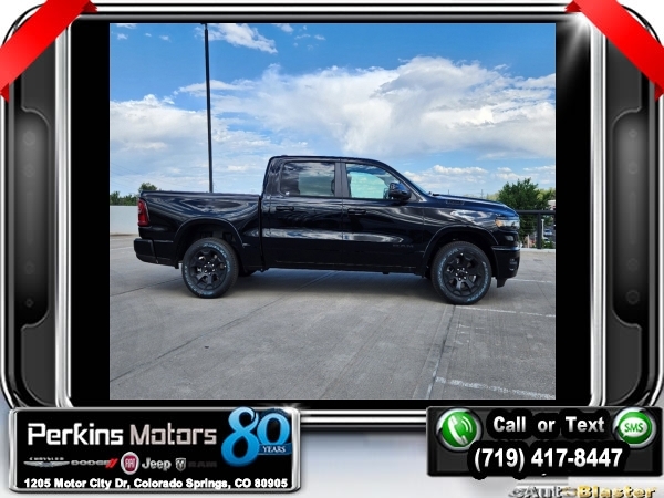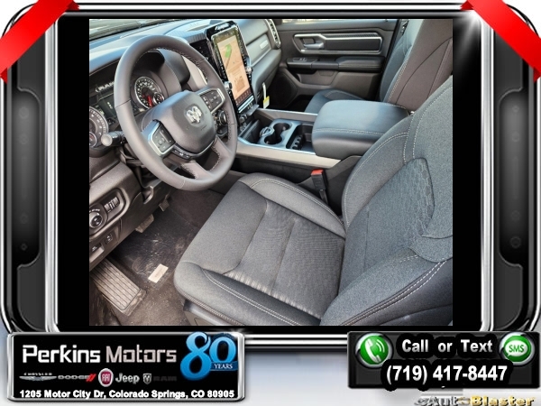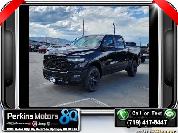 New Price! Factory MSRP: $62,515 $14,205 off MSRP! Diamond Black Crystal Pearlcoat 2025 Ram 1500 Big Horn/Lone Star 4WD 8-Speed Automatic 3.0L I6<br>SPRAY BED LINER.<br>Check us out at www.perkinsmotors.com to see our specials! Since opening our doors in 1944, we’ve been proud to serve Colorado Springs, CO, and the surrounding areas of Pueblo, Castle Rock and Denver, CO. Throughout this time of being family owned for 80 years, we’ve maintained a firm commitment to our customers: to offer a wide selection of New Chrysler, Dodge, Fiat, Jeep, and Ram vehicles and quality pre-owned vehicles, and provide a quick, no-hassle car-buying process that ensures everyone drives off the lot satisfied with their purchase.<br><br>Big Horn Level 2 Equipment Group (115V Auxiliary Power Outlet, 115V Auxiliary Rear Power Outlet, 12 Touchscreen Display, 2nd Row In Floor Storage Bins, 400W Inverter, 4G LTE Wi-Fi Hot Spot, 9 Amplified Speakers w/Subwoofer, Air Conditioning ATC w/Dual Zone Control, Apple CarPlay, Auto Power-Folding Mirrors, Auto-Dimming Exterior Driver Mirror, Auto-Dimming Rear-View Mirror, Black Exterior Mirrors, Black Premium Power Mirrors, Cluster 7.0 TFT Color Display, Configurable Drive Mode, Connected Travel & Traffic Services, Connectivity - US/Canada, Convex Wide-Angle Exterior Mirror Insert, Exterior Mirrors Courtesy Lamps, Exterior Mirrors w/Heating Element, Exterior Mirrors w/Supplemental Signals, Glove Box Lamp, Google Android Auto, GPS Antenna Input, GPS Navigation, HD Radio, Heated Front Seats, Heated Steering Wheel, Integrated Voice Command w/Bluetooth, Leather Wrapped Steering Wheel, LED Dome Lamp w/On/Off Switch, LED Footwell Lighting, Media Hub w/2 Charge Only USBs, Overhead LED Lamps, Power 2-Way Driver Lumbar Adjust, Power Adjust 8-Way Driver Seat, Power Adjustable Pedals, Premium Overhead Console, Radio: Uconnect 5 Nav w/12.0 Display, Rear Power Sliding Window, Rear Window Defroster, Remote Tailgate Release, Security Alarm, SiriusXM w/360L, Sun Visors w/Illuminated Vanity Mirrors, Universal Garage Door Opener, and USB Host Flip), Night Edition (3 Rear Seat Head Restraints, 4 Way Front Headrests, Accent Color Door Handles, Accent Color Premium Power Mirrors, Anti-Spin Differential Rear Axle, Black Exterior Truck Badging, Black Headlamp Bezels, Black Interior Accents, Black Painted Exterior Mirrors Caps, Black Tail Lamp Bezels, Body Color Front Bumper, Body Color Rear Bumper w/Step Pads, Bucket Seats, Deluxe Cloth Bucket Seats, Front Seat Back Map Pockets, Full Length Floor Console, Grille Black Surround Black Mesh, Manual Adjust 4-Way Front Passenger Seat, RAM Grille Badge - Black, Rear 60/40 Folding Seat, Rear Center Armrest, and Wheels: 20 x 9.0 Aluminum Painted Clad), Quick Order Package 21Z Big Horn, 3.21 Rear Axle Ratio, 3.55 Rear Axle Ratio, 4-Wheel Disc Brakes, 6 Speakers, ABS brakes, Air Conditioning, Alloy wheels, AM/FM radio, Apple CarPlay/Android Auto, Auto High-beam Headlights, Brake assist, Bumpers: chrome, Cloth Bench Seat, Compass, Cruise Control, Delay-off headlights, Driver door bin, Dual front impact airbags, Dual front side impact airbags, Electronic Stability Control, Engine Block Heater, Front anti-roll bar, Front Center Armrest w/Storage, Front fog lights, Front License Plate Bracket, Front reading lights, Front wheel independent suspension, Fully automatic headlights, Heated door mirrors, Illuminated entry, Low tire pressure warning, Manual Folding Exterior Mirrors, MOPAR Front & Rear Rubber Floor Mats, Occupant sensing airbag, Outside temperature display, Overhead airbag, Overhead console, Panic alarm, ParkView Rear Back-Up Camera, Passenger door bin, Passenger vanity Sale price includes all manufacture's incentives and dealer discounts. Sale price not available on lease or compatible with special APR. $2000 - 2025 Denver BC SFS Bonus Cash . Exp. 09/03/2024 $3000 - 2025 National Retail Consumer Cash. Exp. 09/03/2024 $5,000 - Exp. 09/03/2024 Price includes $795 in dealer added a
