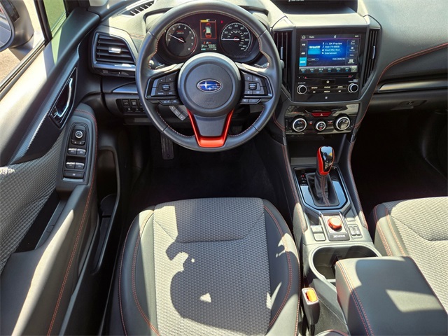 26/33 City/Highway MPGGrey 2022 Subaru Forester Sport AWD Lineartronic CVT 2.5L 4-Cylinder DOHC 16VIf you don't drive here, you can't save here!Price may not include recon fee. 3.70 Axle Ratio, 4-Wheel Disc Brakes, 6 Speakers, ABS brakes, Air Conditioning, Alloy wheels, AM/FM radio: SiriusXM, Anti-whiplash front head restraints, Auto High-beam Headlights, Automatic temperature control, Brake assist, Bumpers: body-color, CD player, Driver door bin, Driver vanity mirror, Dual front impact airbags, Dual front side impact airbags, Electronic Stability Control, Emergency communication system: STARLINK Safety and Security (Subscription Required), Exterior Parking Camera Rear, Four wheel independent suspension, Front anti-roll bar, Front Bucket Seats, Front Center Armrest, Front fog lights, Front reading lights, Fully automatic headlights, Heated door mirrors, Heated Front Bucket Seats, Heated front seats, Illuminated entry, Knee airbag, Leather Shift Knob, Low tire pressure warning, Occupant sensing airbag, Outside temperature display, Overhead airbag, Overhead console, Panic alarm, Passenger door bin, Passenger vanity mirror, Power door mirrors, Power driver seat, Power moonroof: Panoramic, Power steering, Power windows, Radio data system, Radio: Subaru Starlink 6.5" Multimedia Plus System, Rear anti-roll bar, Rear seat center armrest, Rear window defroster, Rear window wiper, Remote keyless entry, Roof rack: rails only, Security system, Speed control, Speed-sensing steering, Split folding rear seat, Spoiler, Sport Cloth Upholstery, STARLINK/Apple CarPlay/Android Auto, Steering wheel mounted audio controls, Tachometer, Telescoping steering wheel, Tilt steering wheel, Traction control, Trip computer, Turn signal indicator mirrors, Variably intermittent wipers, and Wheels: 18" x 7.0J Black Finish Aluminum Alloy.