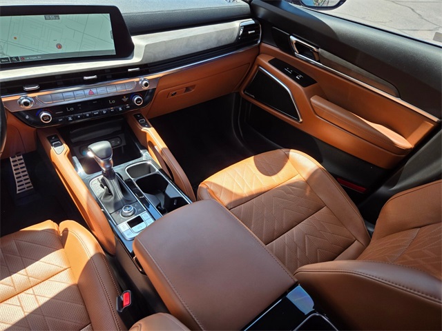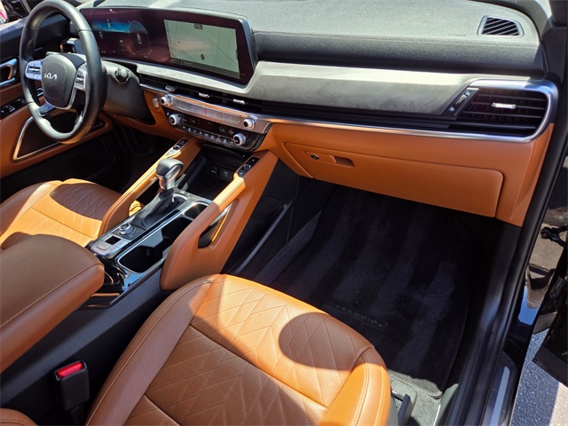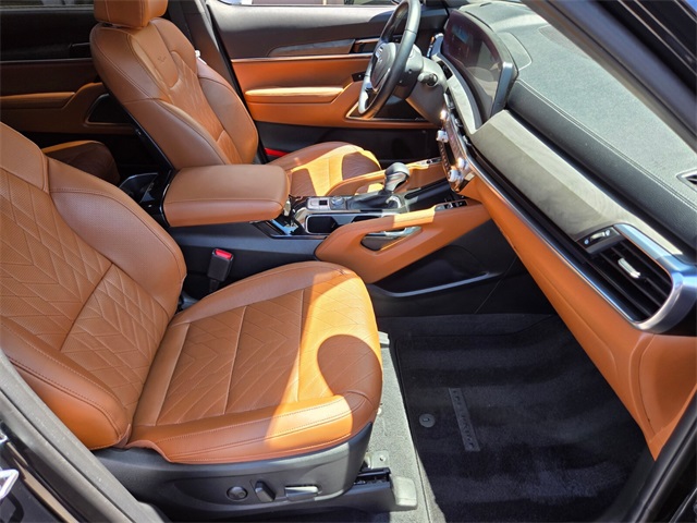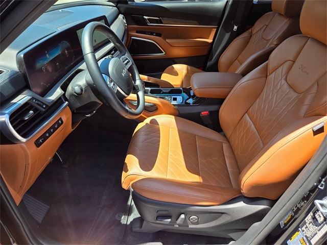 Ebony Black 2024 Kia Telluride SX-Prestige X-Pro AWD 8-Speed Automatic 3.8L V6 DOHCIf you don't drive here, you can't save here!Price may not include recon fee. Terracotta Interior Color Package, 10 Speakers, 3.648 Axle Ratio, 3rd row seats: split-bench, 4-Wheel Disc Brakes, ABS brakes, Air Conditioning, Alloy wheels, AM/FM radio: SiriusXM, Apple CarPlay & Android Auto, Auto High-beam Headlights, Auto-dimming Rear-View mirror, Automatic temperature control, Brake assist, Bumpers: body-color, Cargo Cover, Carpet Floor Mats, Compass, Cross Bars X-Line, Delay-off headlights, Driver door bin, Driver vanity mirror, Dual front impact airbags, Dual front side impact airbags, Electronic Stability Control, Emergency communication system: 911 Connect, Exterior Parking Camera Rear, Four wheel independent suspension, Front anti-roll bar, Front Bucket Seats, Front Center Armrest, Front dual zone A/C, Front fog lights, Front reading lights, Fully automatic headlights, Garage door transmitter: HomeLink, harman/kardon® Speakers, Heated & Ventilated Front Bucket Seats, Heated door mirrors, Heated front seats, Heated steering wheel, Hybrid Cargo Net, Illuminated entry, Knee airbag, Leather Shift Knob, Leather steering wheel, Low tire pressure warning, Memory seat, Mud Guard Kit, Navigation System, Occupant sensing airbag, Outside temperature display, Overhead airbag, Overhead console, Panic alarm, Passenger door bin, Passenger vanity mirror, Power door mirrors, Power driver seat, Power Liftgate, Power moonroof, Power passenger seat, Power steering, Power windows, Radio data system, Radio: AM/FM Harman Kardon Audio System, Rear air conditioning, Rear anti-roll bar, Rear audio controls, Rear reading lights, Rear side impact airbag, Rear window defroster, Rear window wiper, Reclining 3rd row seat, Remote keyless entry, Roof rack: rails only, Security system, Smart Key w/ Push Button and Remote Start, Speed control, Speed-sensing steering, Split folding rear seat, Spoiler, Steering wheel mounted audio controls, Tachometer, Telescoping steering wheel, Tilt steering wheel, Traction control, Trip computer, Turn signal indicator mirrors, Variably intermittent wipers, and Ventilated front seats.
