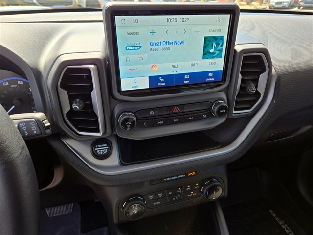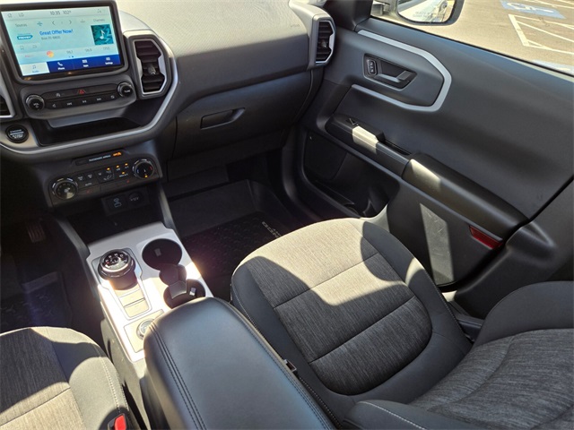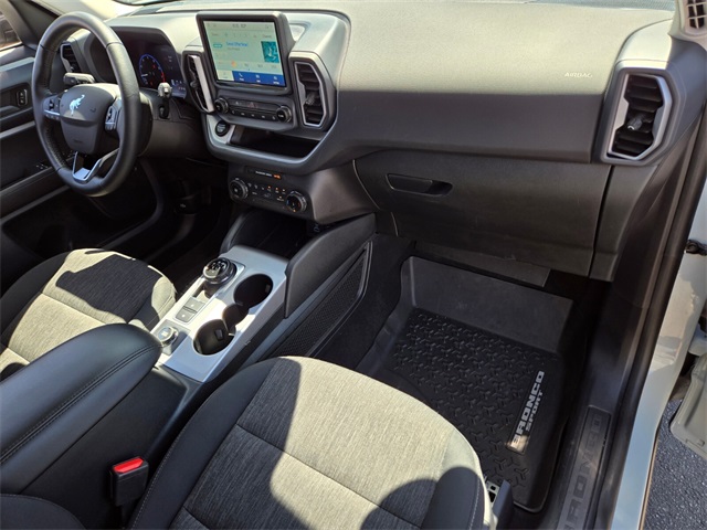 25/28 City/Highway MPGCactus 2022 Ford Bronco Sport Big Bend 4WD 8-Speed Automatic 1.5L EcoBoostIf you don't drive here, you can't save here!Price may not include recon fee. Class II Trailer Tow Package w/Trailer Sway Control, Convenience Package (Front Driver & Passenger Seatback Zipper Pockets, Heated Front Bucket Seats, Intelligent Access (Lock/Unlock), Leather-Wrapped Steering Wheel, LED Fog Lamps, Rear Parking Sensors, Universal Garage Door Opener (UGDO), and Wireless Charging Pad), Equipment Group 200A, 3.80 Axle Ratio, 4-Wheel Disc Brakes, 6 Speakers, ABS brakes, Air Conditioning, Alloy wheels, AM/FM radio: SiriusXM, AM/FM Stereo, Auto High-beam Headlights, Automatic temperature control, Brake assist, Compass, Delay-off headlights, Driver door bin, Driver vanity mirror, Dual front impact airbags, Dual front side impact airbags, Electronic Stability Control, Emergency communication system: SYNC 3 911 Assist, Four wheel independent suspension, Front & Rear Floor Liners, Front anti-roll bar, Front Bucket Seats, Front Center Armrest, Front reading lights, Fully automatic headlights, Heated door mirrors, Illuminated entry, Knee airbag, Low tire pressure warning, Occupant sensing airbag, Outside temperature display, Overhead airbag, Overhead console, Panic alarm, Passenger door bin, Passenger vanity mirror, Power door mirrors, Power steering, Power windows, Radio data system, Rear anti-roll bar, Rear reading lights, Rear seat center armrest, Rear window defroster, Rear window wiper, Remote keyless entry, Roof rack: rails only, Rubberized Second Row Seat Backs, Security system, SiriusXM Radio, Speed control, Speed-sensing steering, Speed-Sensitive Wipers, Split folding rear seat, Steering wheel mounted audio controls, SYNC 3 Communications & Entertainment System, SYNC 3/Apple CarPlay/Android Auto, Tachometer, Telescoping steering wheel, Tilt steering wheel, Traction control, Trip computer, Unique Cloth Front Bucket Seats, Variably intermittent wipers, and Wheels: 17" Carbonized Gray-Painted Aluminum.