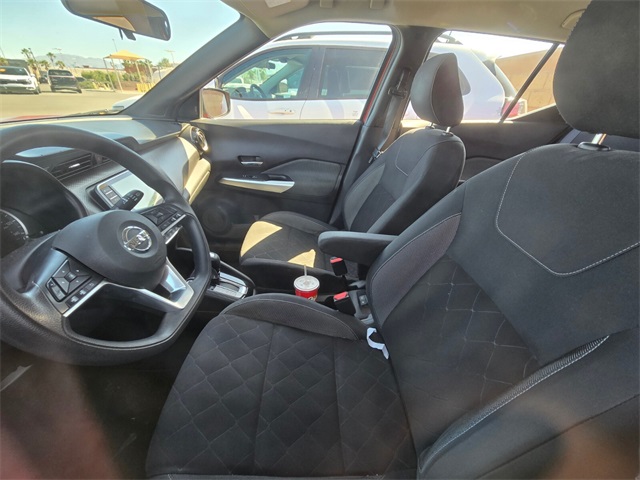 31/36 City/Highway MPGCayenne Red Metallic 2019 Nissan Kicks SV FWD CVT with Xtronic 1.6L 4-Cylinder DOHC 16VIf you don't drive here, you can't save here!Awards: * 2019 KBB.com 10 Coolest New Cars Under $20,000Price may not include recon fee. 3.927 Axle Ratio, 6 Speakers, ABS brakes, Air Conditioning, Brake assist, Bumpers: body-color, Carpeted Floor Mats w/Cargo Mat, Cloth Seat Trim, Driver door bin, Driver vanity mirror, Driver's Seat Mounted Armrest, Dual front impact airbags, Dual front side impact airbags, Electronic Stability Control, Front anti-roll bar, Front Bucket Seats, Front reading lights, Front wheel independent suspension, Fully automatic headlights, Illuminated entry, Knee airbag, Low tire pressure warning, Occupant sensing airbag, Overhead airbag, Panic alarm, Passenger door bin, Passenger vanity mirror, Power door mirrors, Power steering, Power windows, Radio data system, Radio: AM/FM Audio System, Rear reading lights, Rear window defroster, Rear window wiper, Remote keyless entry, Roof rack: rails only, Speed control, Split folding rear seat, Sport steering wheel, Steering wheel mounted audio controls, Tachometer, Telescoping steering wheel, Tilt steering wheel, Traction control, Trip computer, and Variably intermittent wipers.