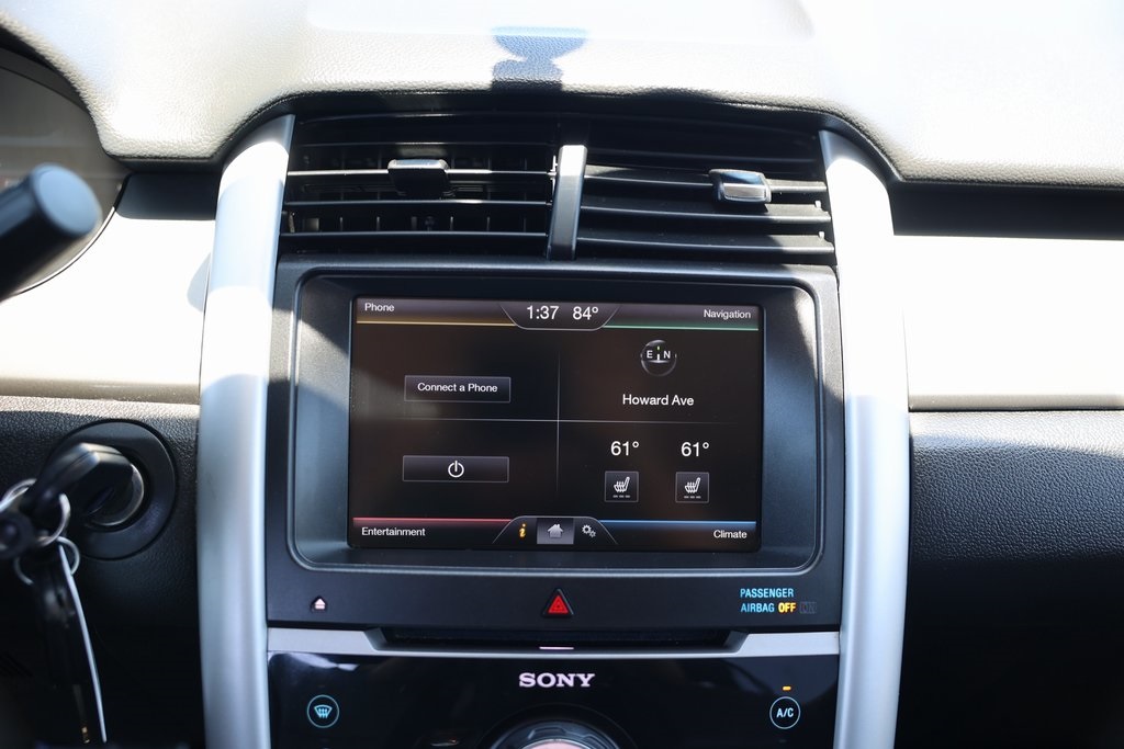 Ingot Silver Metallic 2014 Ford Edge Sport FWD 6-Speed Automatic with Select-Shift 3.7L V6 Ti-VCT 24V 12 Speakers, 22" Polished Aluminum Wheels, Air Conditioning, Equipment Group 400A, Exterior Parking Camera Rear, Front Bucket Seats, Fully automatic headlights, Leather-Trimmed Heated Bucket Seats, Memory seat, Navigation System, Radio: Sony AM/FM Stereo w/HD Radio/MyFord Touch, SYNC w/MyFord Touch & SYNC Services.Recent Arrival! 18/26 City/Highway MPGAwards: * JD Power Initial Quality Study (IQS) * 2014 KBB.com Brand Image AwardsReviews: * If you’re looking for all the amenities of a high-end luxury car in a vehicle that is more versatile and practical than a sedan, the 2014 Ford Edge deserves a long test drive. A smooth ride, quiet cabin and manageable proportions make it as easy to live with as any midsize car. Source: KBB.com * Quiet and comfortable cabin; abundant features; comfortable ride; composed handling; higher fuel economy from available turbocharged four-cylinder engine. Source: Edmunds * Driven by your choice of 3 smart engines, the Ford Edge is one amazingly capable crossover. Its standard 3.5L Ti-VCT V6 delivers unsurpassed V6 hwy mileage of up to 27 mpg. The remarkable 2.0L EcoBoost engine gives you plenty of low-end torque for acceleration and passing, plus fuel efficiency. And the 305-horsepower 3.7L Ti-VCT V6 on Edge Sport is the most powerful V6 in its class. Edge makes it easy for you to stay connected to calls, music and more with both hands on the wheel. A new SEL Appearance Package adds flair including eye-catching 20 inch wheels. Available in all-wheel drive or front-wheel drive, the Edge can help you maintain your cruising distance, change lanes and back out of parking spaces. The turbocharged, direct-injection 2.0L EcoBoost I-4 engine with 6-speed automatic transmission, helps the Edge deliver up to 30 mpg hwy and travel over 500 miles per tank. The Edge's new active grille shutters, included with the EcoBoost engine, help make itself even more aerodynamic and fuel efficient. The 3.7L Ti-VCT V6 engine inside Edge Sport provides the driver with 305 horsepower, 280 lb.-ft of torque, plus 26 mpg hwy. Racing-style paddle shifters give you ultimate control of its 6-speed SelectShift Automatic transmission. Outside, aggressive front and rear fascias combine with a bold black grille, unique headlamp treatments, oval-shaped chrome exhaust tips and jaw-dropping 22 inch aluminum wheels to give Edge Sport the look that backs it all up. The Limited model is just one example of the interior luxury experienced in the new Edge. The Edge Limited has luxurious leather-trimmed and heated front seats featuring 10-way power adjustments. With your seat just the way you like it, you can adjust the standard title/telescoping steering column to match your driving style too. Graceful lines effortlessly guide your eyes along the dash and down the flow-through center console, merging into a singularly inviting interface. Source: The Manufacturer Summary