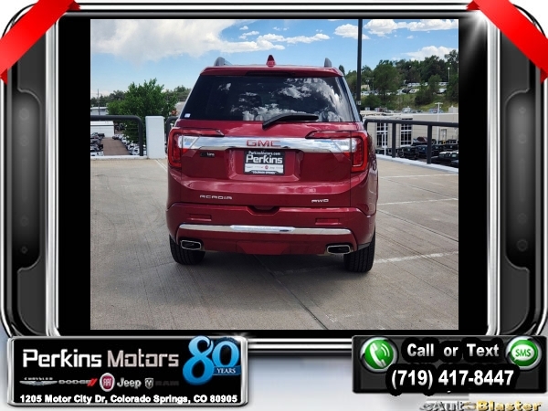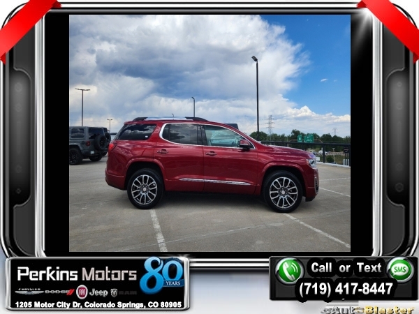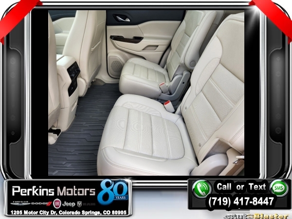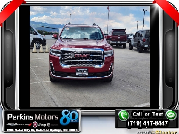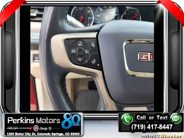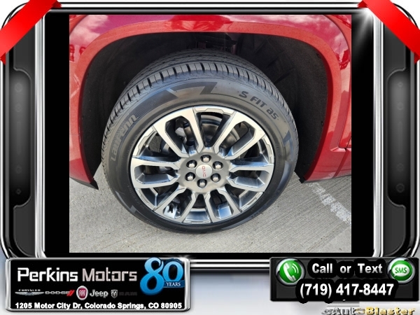 Red Quartz Tintcoat AWD 3.6L V6 SIDI 9-Speed Automatic<br><br>AWD, Dark Galvanized/Light Shale Leather, 170 Amp Alternator, 1st & 2nd Row All-Weather Floor Mats, 20 Ultra Bright Machined Aluminum Wheels, 3rd Row All-Weather Floor Mats, 8 Speakers, All-Weather Rear Cargo Mat (LPO), Bose Premium 8-Speaker Audio System Feature, Dual SkyScape 2-Panel Power Sunroof, Electronic Cruise Control w/Set & Resume Speed, HD Radio, Heavy-Duty Cooling System, Hitch Guidance, Interior Protection Package (LPO), Navigation System, Power Liftgate, Preferred Equipment Group 5SA, Premium audio system: GMC Infotainment System, Radio: AM/FM 8 Diagonal Multi-Touch Navigation, SiriusXM w/360L, Trailering Assist Guidelines, Trailering Package.<br><br><br>CARFAX One-Owner. Clean CARFAX.<br><br>Check us out at www.perkinsmotors.com to see our specials! Since opening our doors in 1944, we’ve been proud to serve Colorado Springs, CO, and the surrounding areas of Pueblo, Castle Rock and Denver, CO. Throughout this time of being family owned for 80 years, we’ve maintained a firm commitment to our customers: to offer a wide selection of New Chrysler, Dodge, Fiat, Jeep, and Ram vehicles and quality pre-owned vehicles, and provide a quick, no-hassle car-buying process that ensures everyone drives off the lot satisfied with their purchase.<br><br><br>Interior Protection Package (LPO) (1st & 2nd Row All-Weather Floor Mats, 3rd Row All-Weather Floor Mats, and All-Weather Rear Cargo Mat (LPO)), Preferred Equipment Group 5SA (Electronic Cruise Control w/Set & Resume Speed), Trailering Package (170 Amp Alternator, Heavy-Duty Cooling System, Hitch Guidance, and Trailering Assist Guidelines), AWD, Dark Galvanized/Light Shale Leather, 20 Ultra Bright Machined Aluminum Wheels, 8 Speakers, Bose Premium 8-Speaker Audio System Feature, Dual SkyScape 2-Panel Power Sunroof, HD Radio, Navigation System, Power Liftgate, Premium audio system: GMC Infotainment System, Radio: AM/FM 8 Diagonal Multi-Touch Navigation, SiriusXM w/360L, 3.49 Final Drive Axle Ratio, 3rd row seats: split-bench, 4-Wheel Disc Brakes, 6-Passenger (2-2-2 Seating Configuration), 8-Way Power Driver Seat Adjuster, 8-Way Power Passenger Seat Adjuster, ABS brakes, Air Conditioning, Alloy wheels, AM/FM radio: SiriusXM, Apple CarPlay/Android Auto, Auto High-beam Headlights, Auto-dimming door mirrors, Auto-dimming Rear-View mirror, Automatic temperature control, Brake assist, Bumpers: body-color, Compass, Cruise Control, Delay-off headlights, Driver door bin, Driver vanity mirror, Dual front impact airbags, Dual front side impact airbags, Electronic Stability Control, Emergency communication system: OnStar and GMC connected services capable, Four wheel independent suspension, Front anti-roll bar, Front Bucket Seats, Front Center Armrest, Front dual zone A/C, Front fog lights, Front License Plate Bracket, Front reading lights, Fully automatic headlights, Garage door transmitter, Heated & Ventilated Driver & Front Passenger Seats, Heated door mirrors, Heated Driver & Front Passenger Seats, Heated front seats, Heated rear seats, Heated steering wheel, Illuminated entry, Knee airbag, Low tire pressure warning, Memory seat, Occupant sensing airbag, Outside temperature display, Overhead airbag, Overhead console, Panic alarm, Passenger door bin, Passenger vanity mirror, Perforated Leather-Appointed Seat Trim, Power door mirrors, Power Driver Lumbar Control Seat Adjuster, Power driver seat, Power Passenger Lumbar Control Seat Adjuster, Power passenger seat, Power steering, Power windows, Radio data system, Rear air conditioning, Rear anti-roll bar, Rear reading lights, Rear window defroster, Rear window wiper, Remote keyless entry, Roof rack: rails only, Security system, Speed-sensing steering, Spoiler, Steering wheel memory, Steering wheel mounted audio controls, Tachometer, Telescoping steering wheel, Tilt steering wheel, Traction control, Trip computer, Turn signal indicator mirrors, Variably intermittent wipers